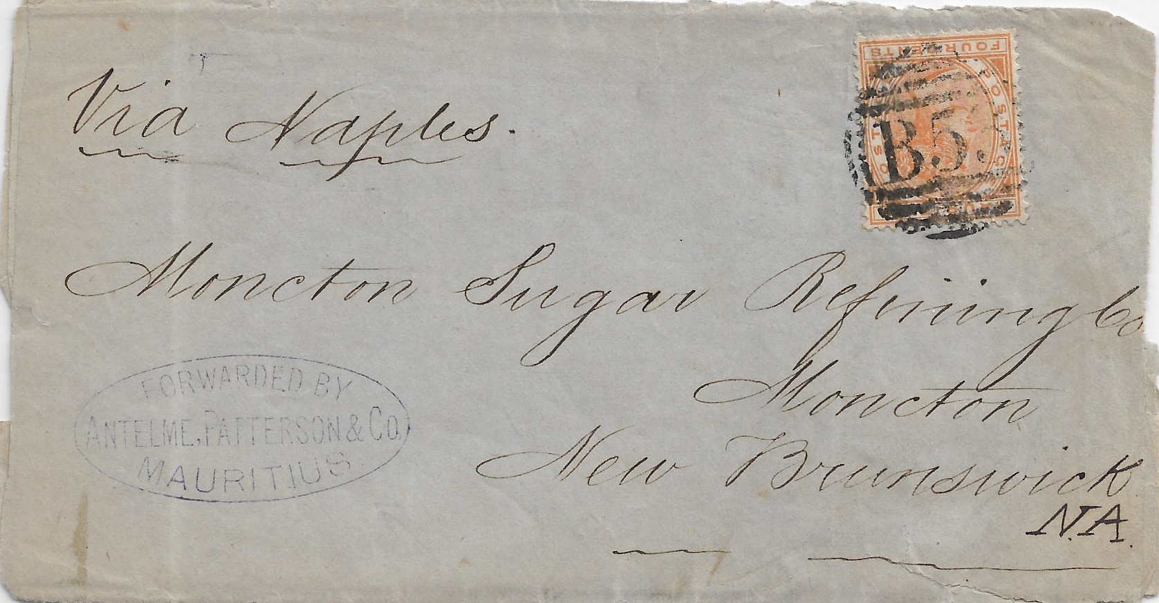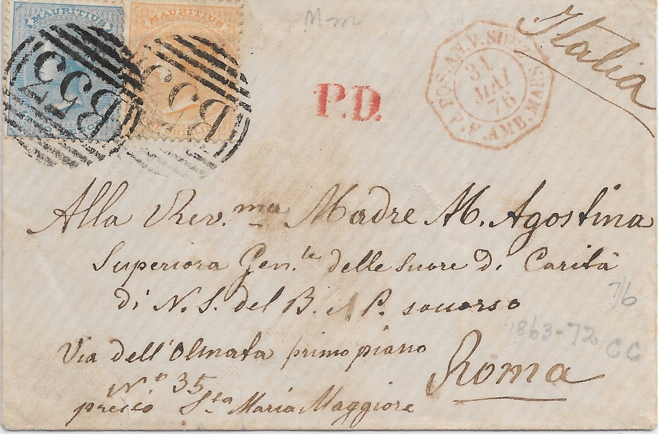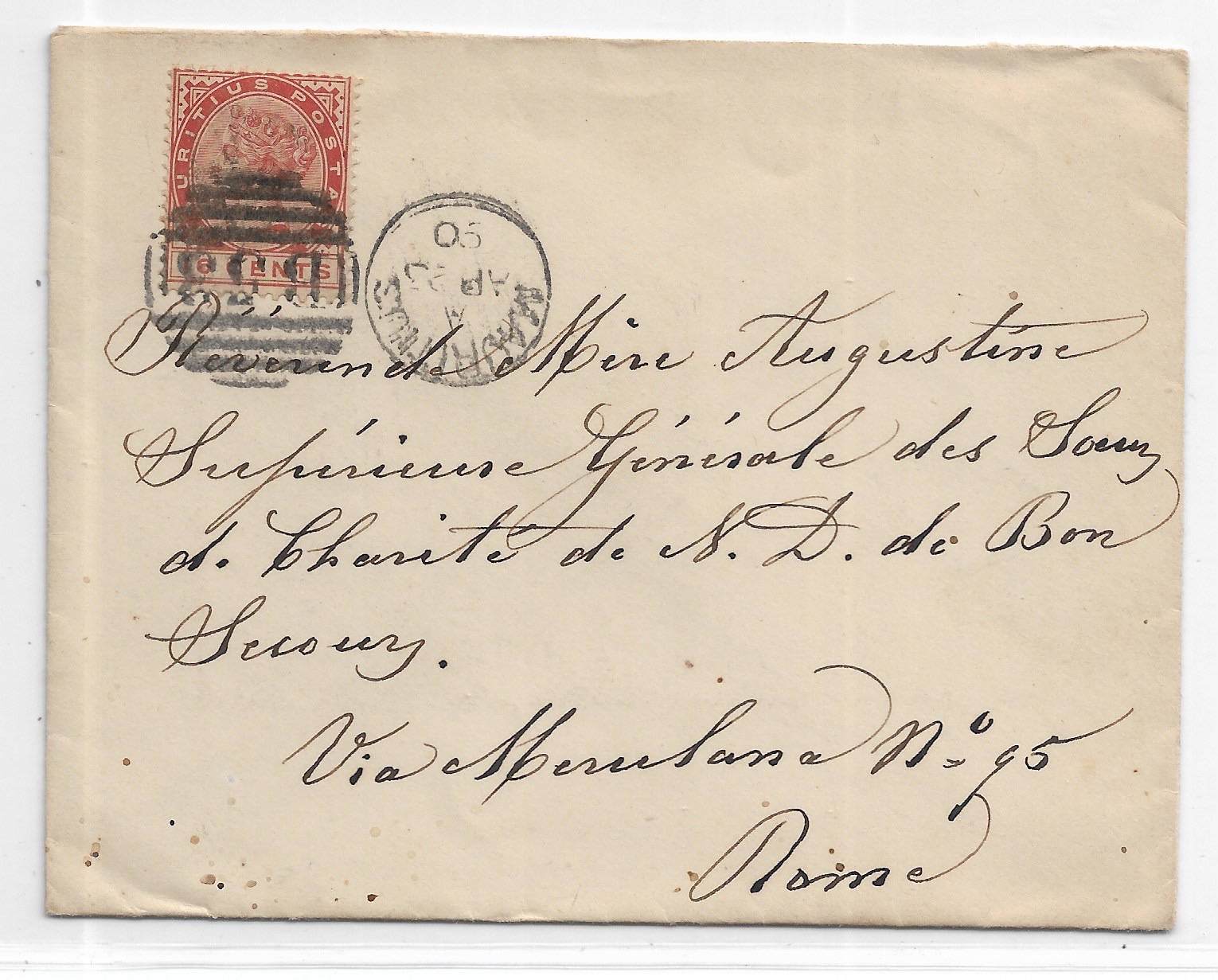1880 Mauritius to Rome, Italy. back stamped Rome. Added Sunday, October 12, 2025