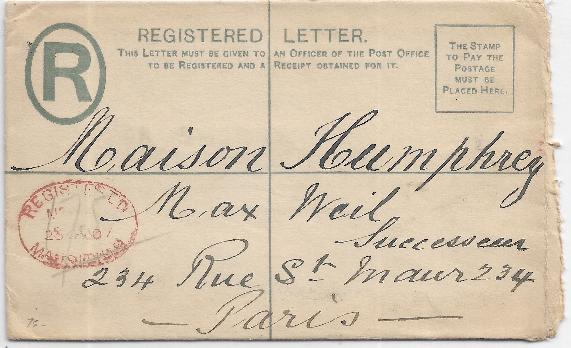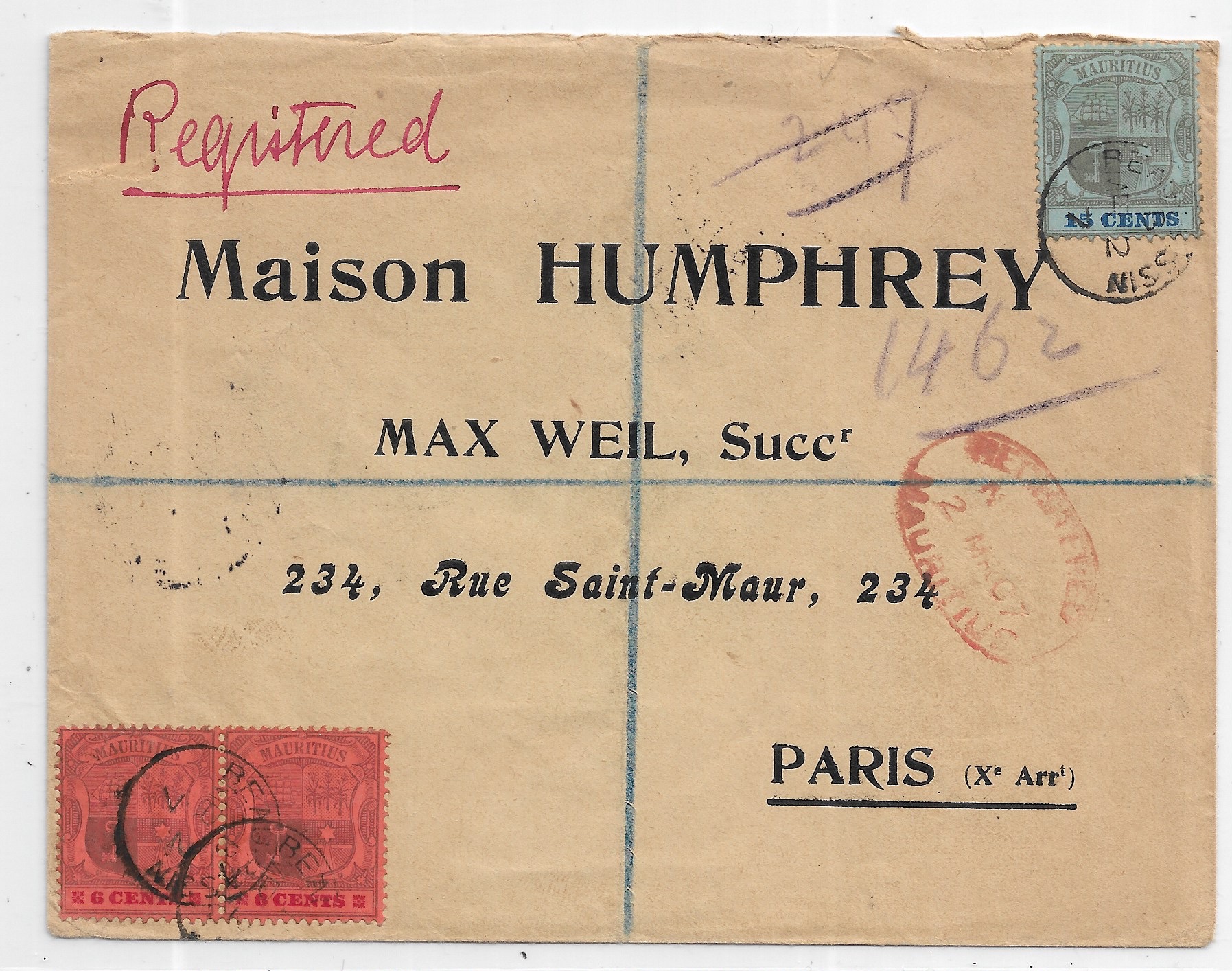 1907 Mauritius to Paris, France Registered. back stamped Paris. Added Sunday, October 12, 2025