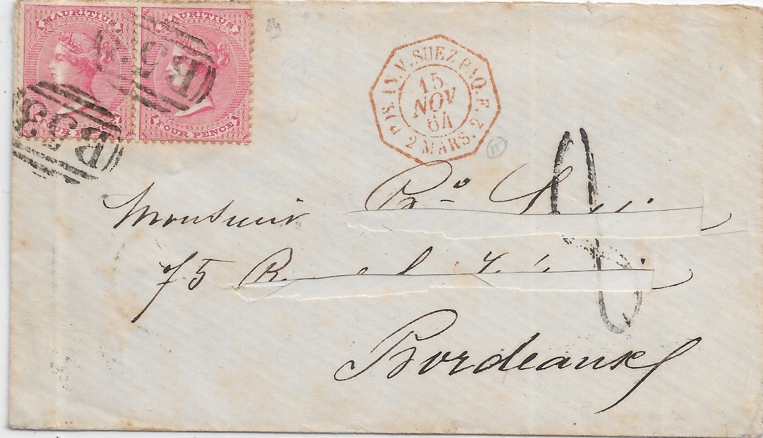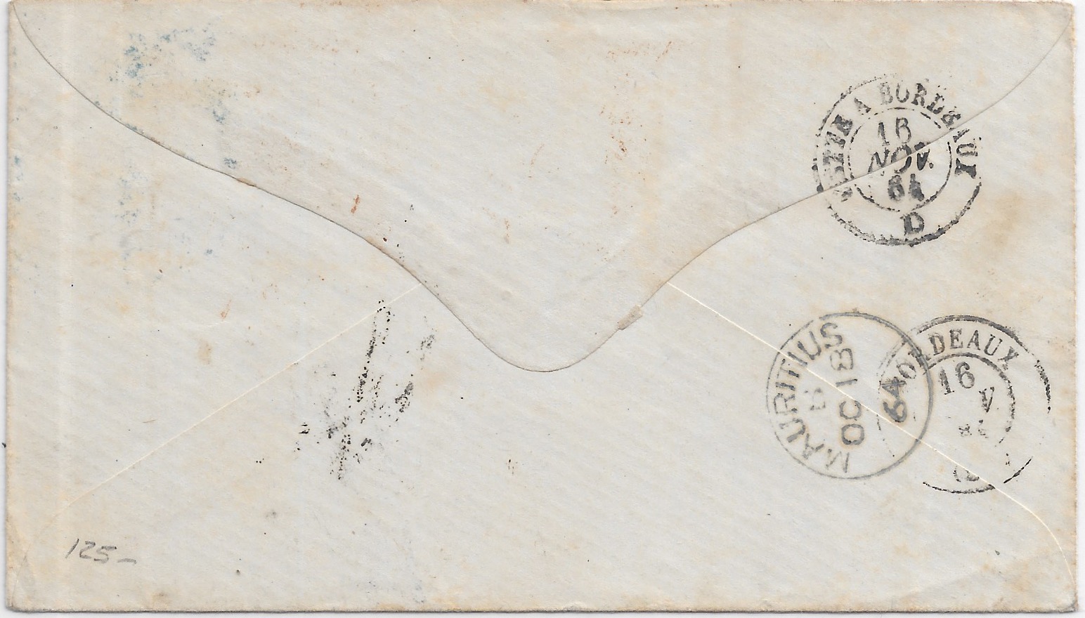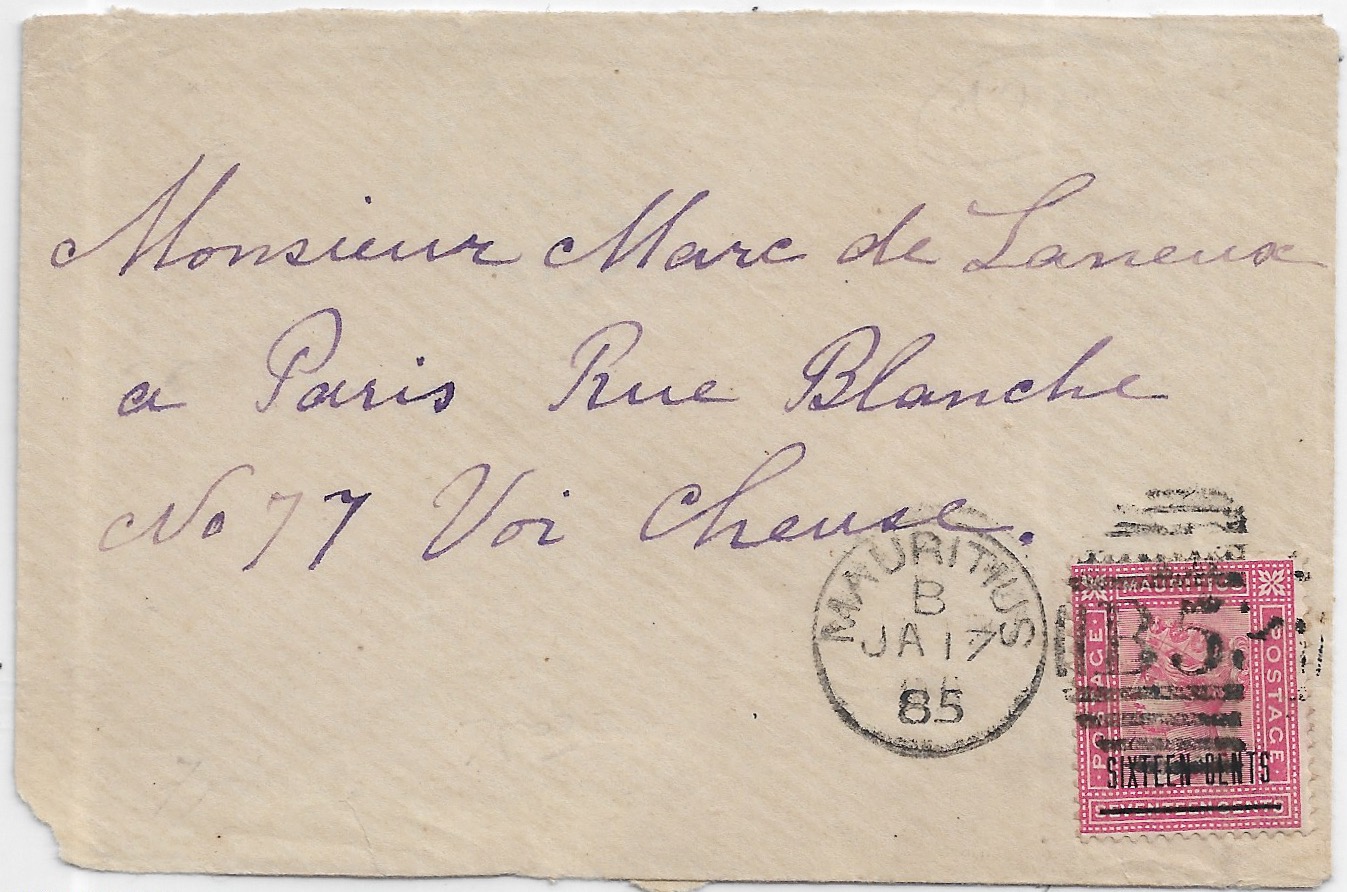 1885 Mauritius to Paris, France. back stamped Paris. Added Sunday, October 12, 2025