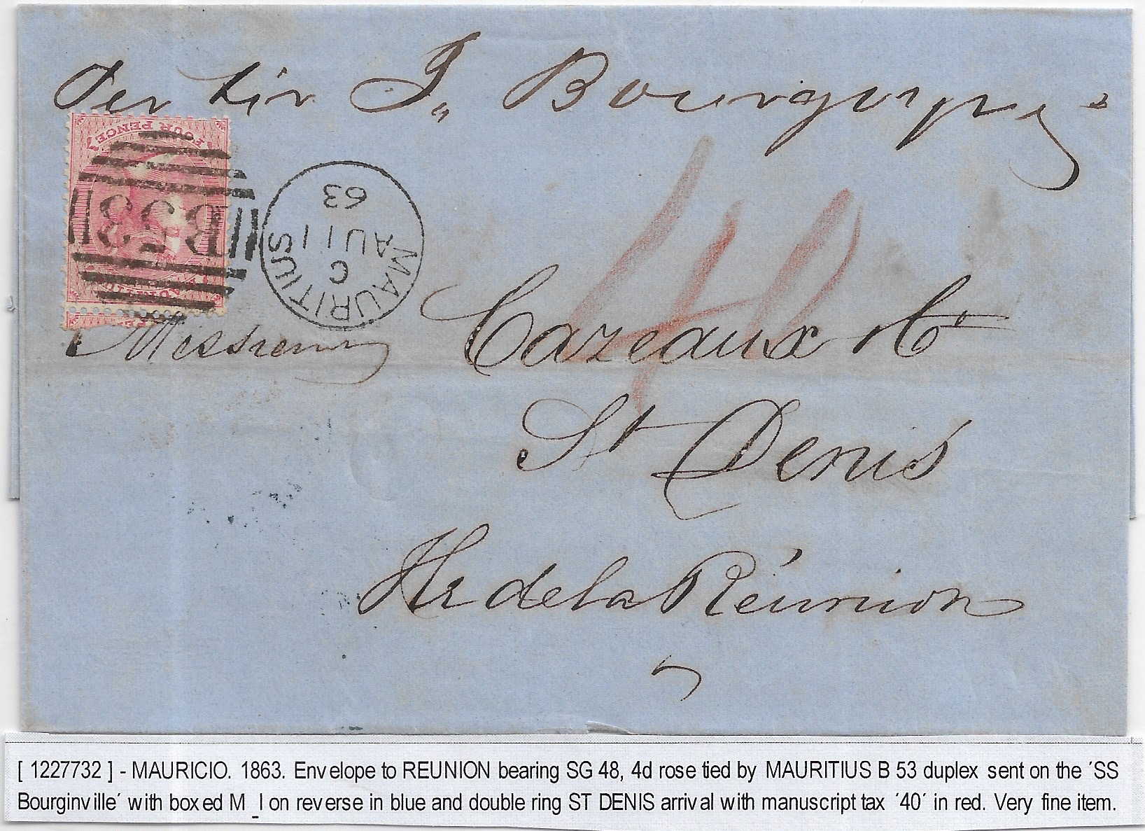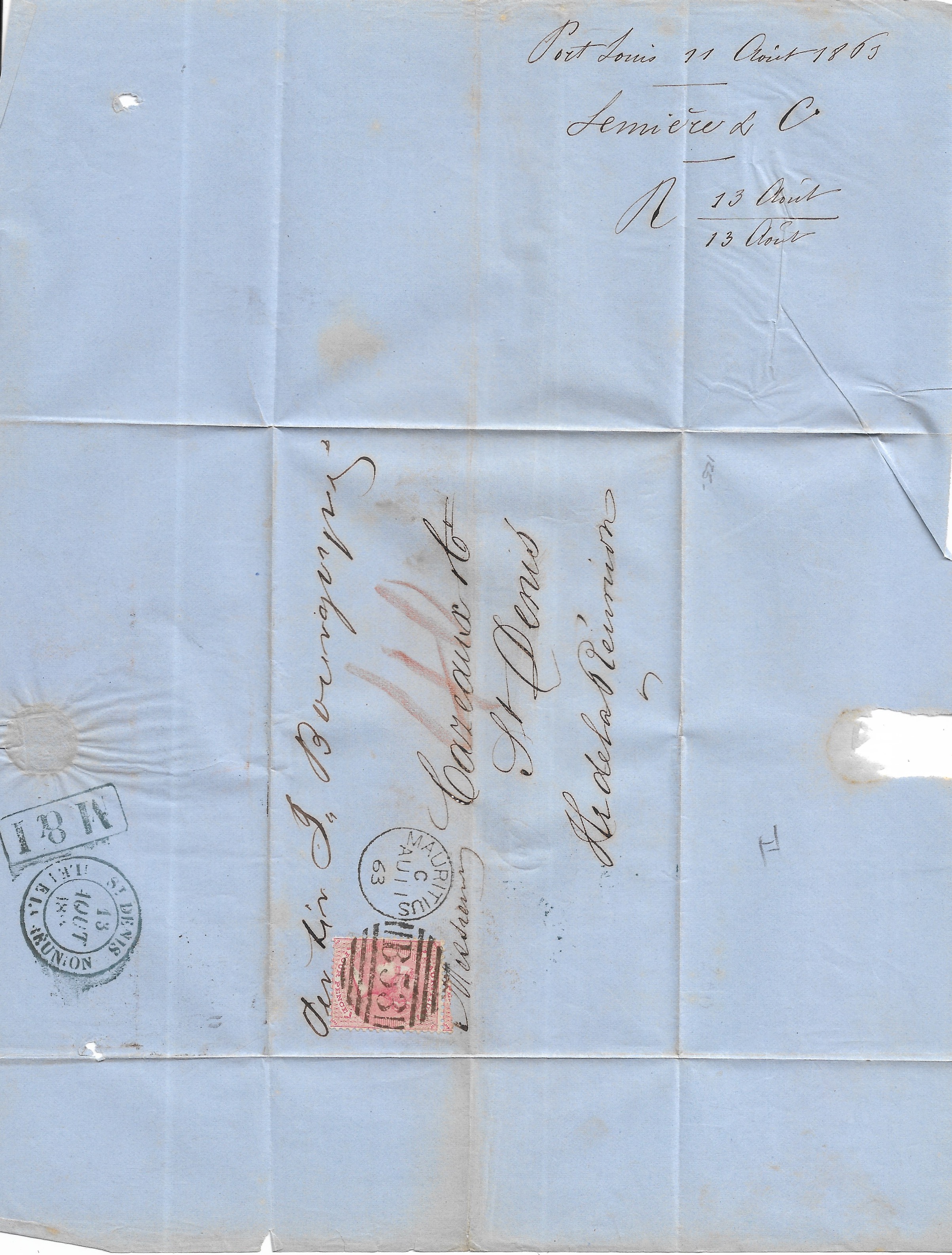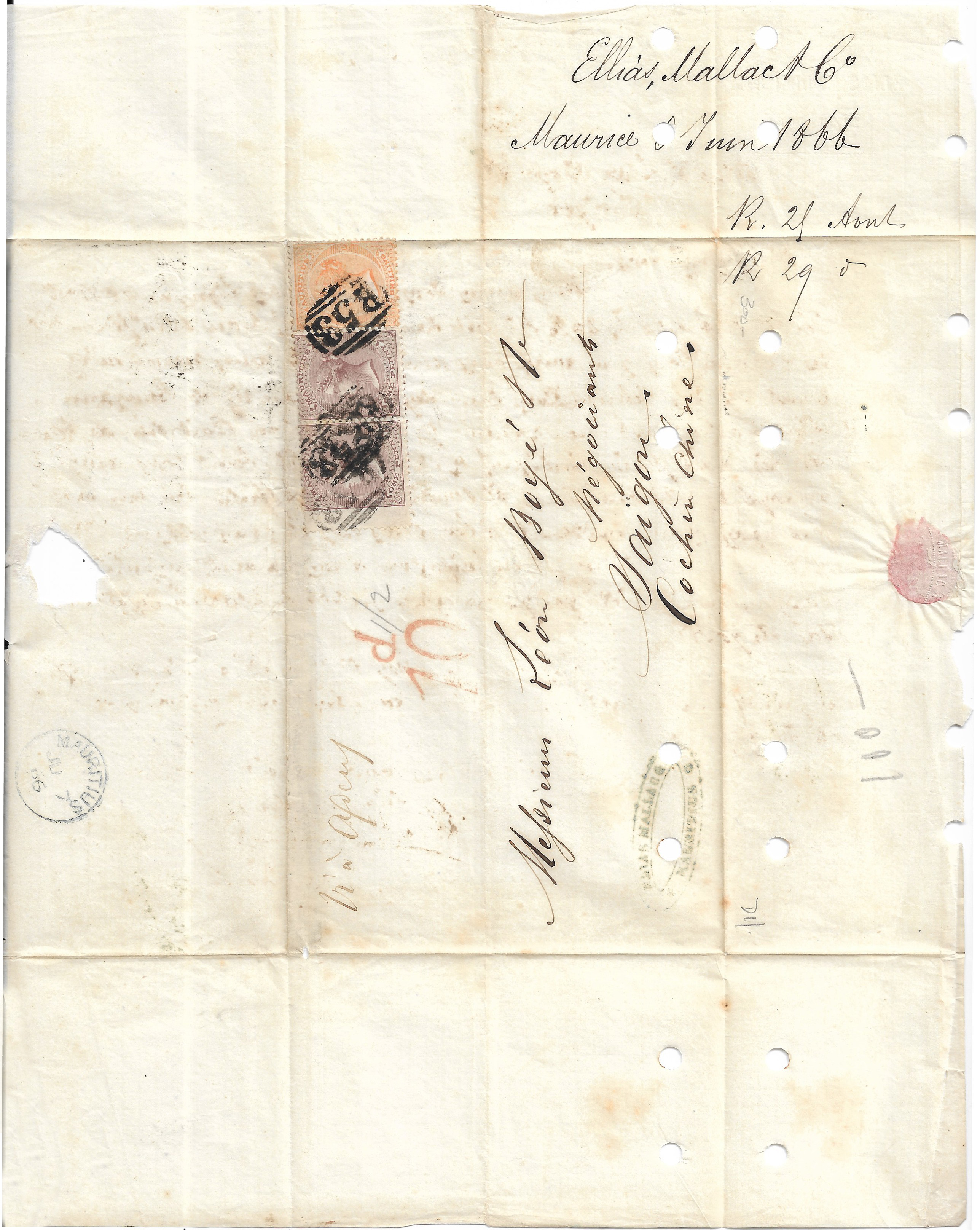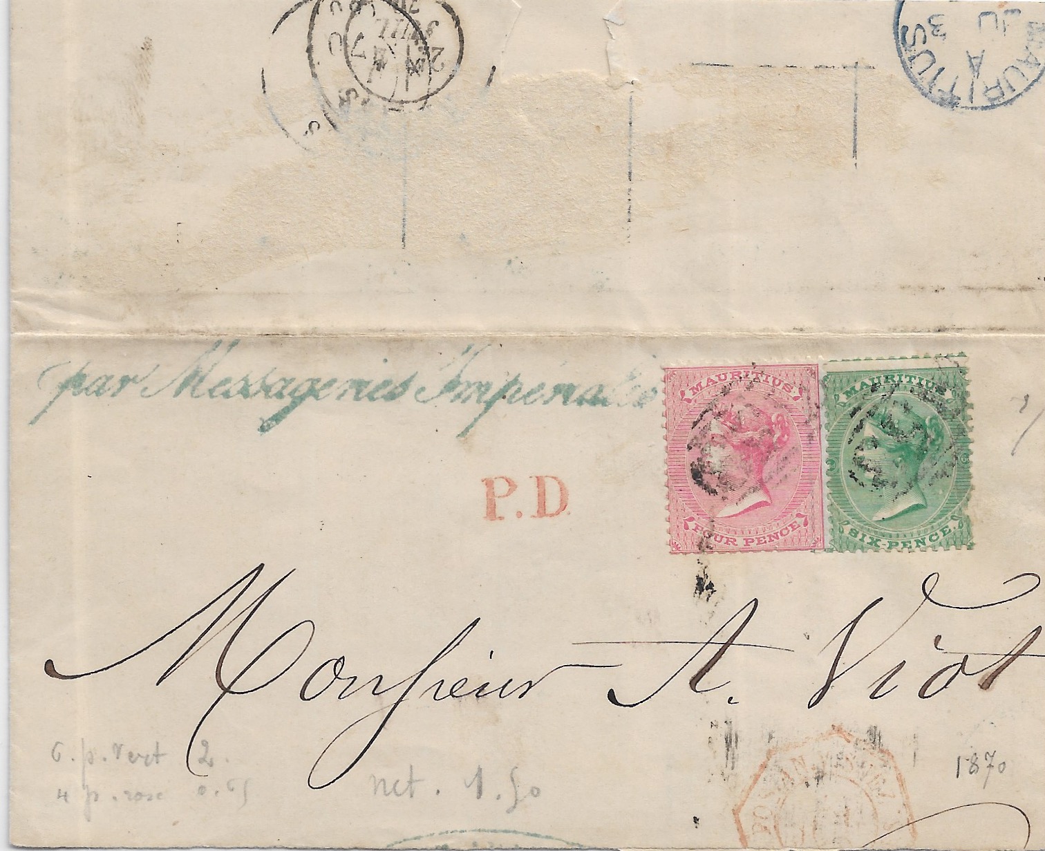 1885 Mauritius to Paris, France. back stamped Paris. Added Sunday, October 12, 2025