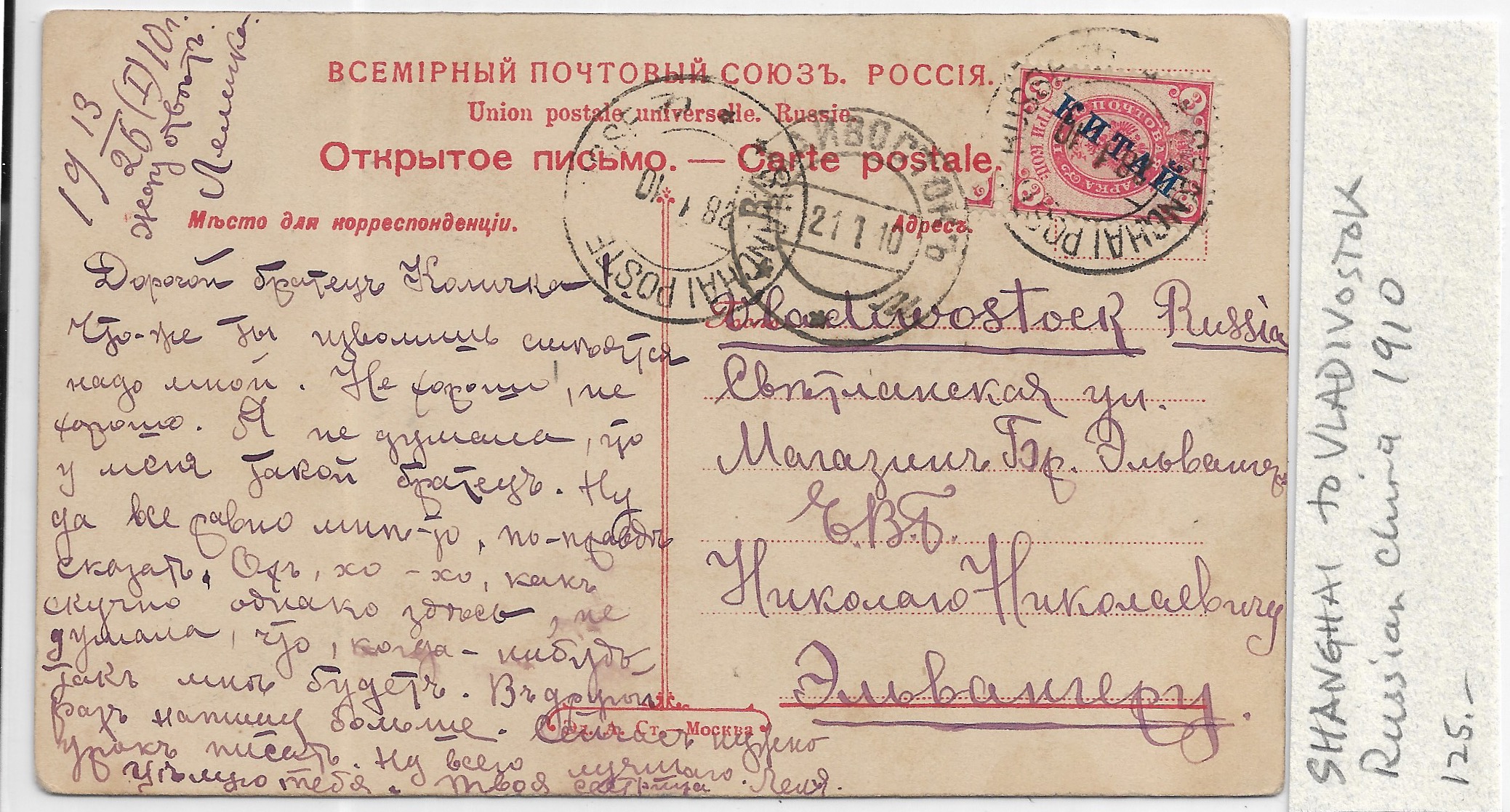 1910 Russian Offices in Shanghai, China to Vladivostok, Russia. Added Sunday, October 12, 2025