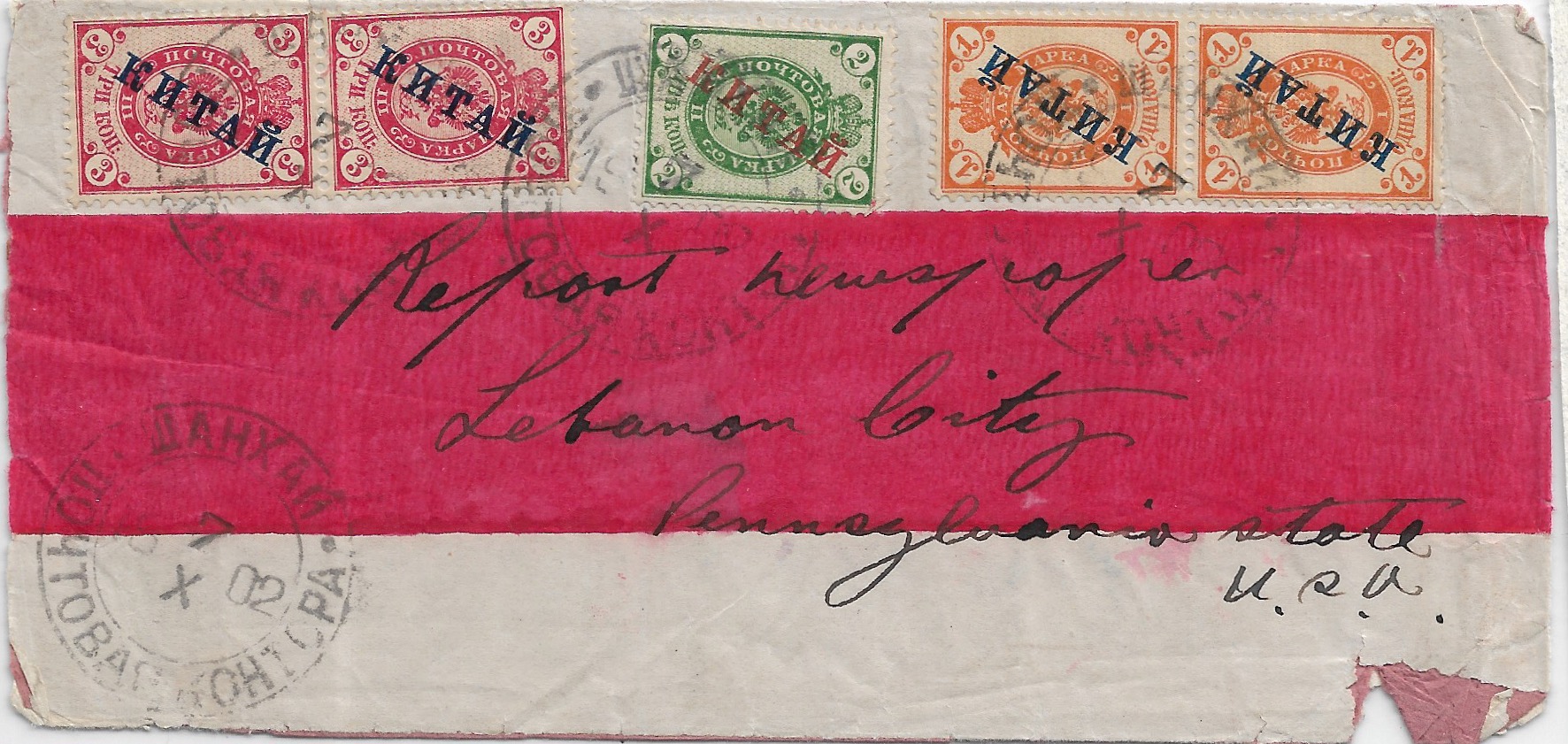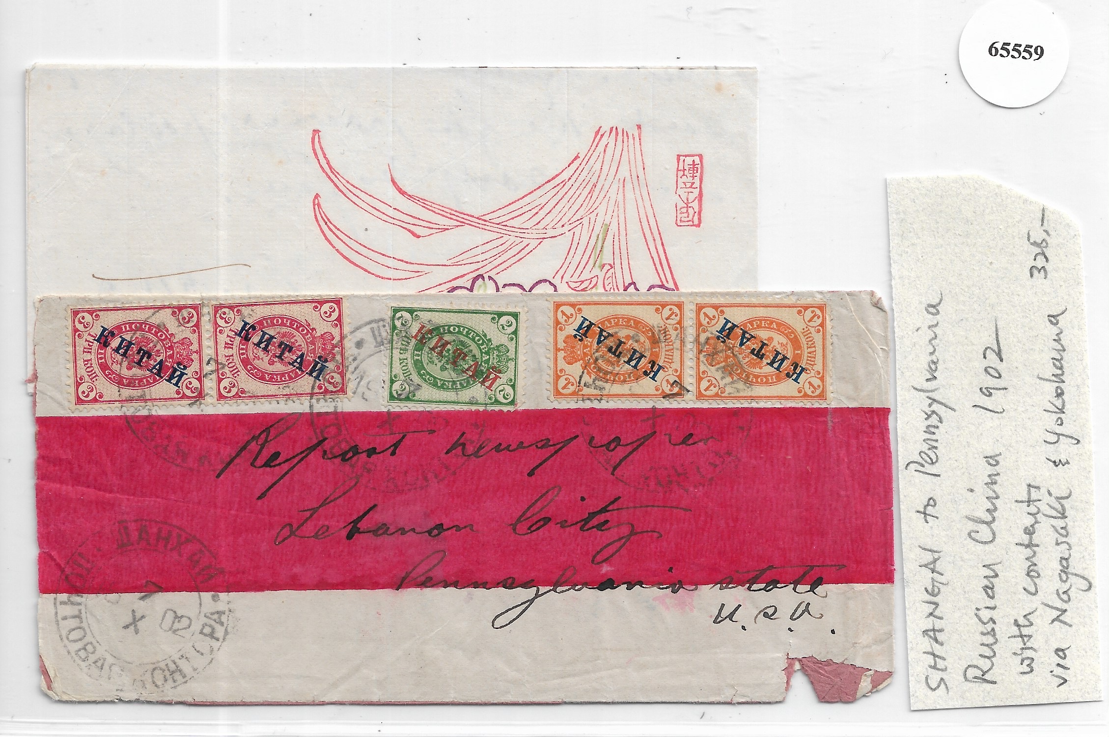 1902 Russian Offices in Shanghai, China to Lebanon, Pa w/Content via Nagasaki & Yokohama. back stamped Nagasaki & Yokohama. Added Sunday, October 12, 2025