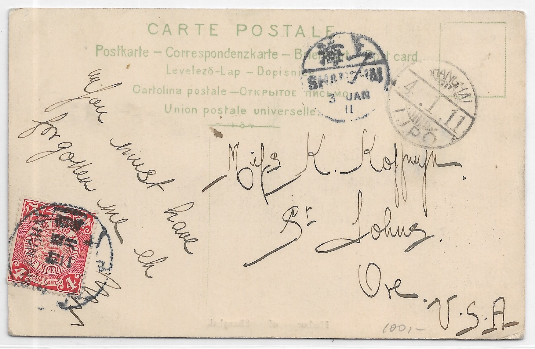 1911 I.J.P.O. Shanghai, China to St Johns, Or. Added Sunday, October 12, 2025