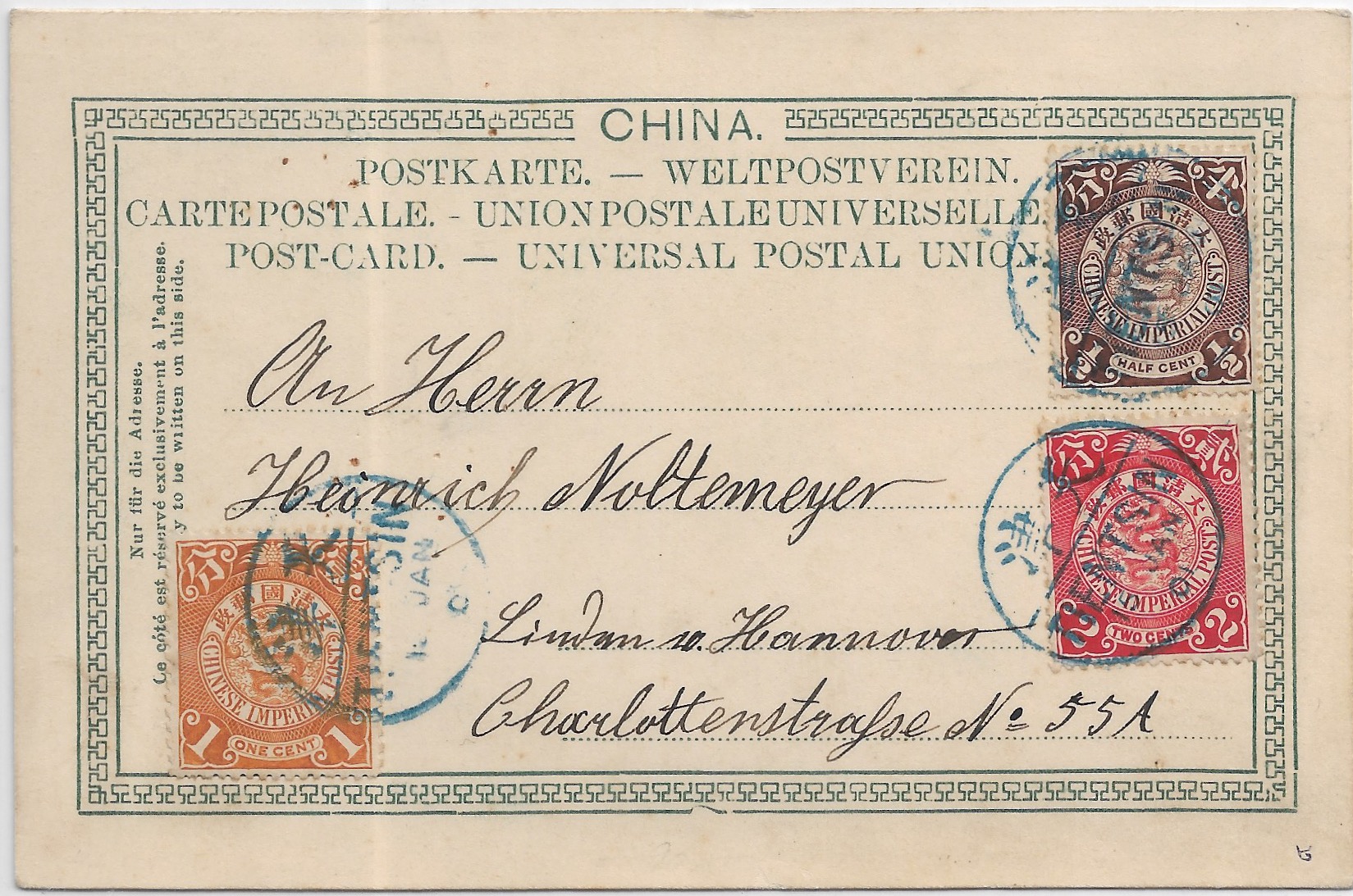 1901 Tientsin, China to Hannover, Germany 1/2c Under Paid. Added Sunday, October 12, 2025