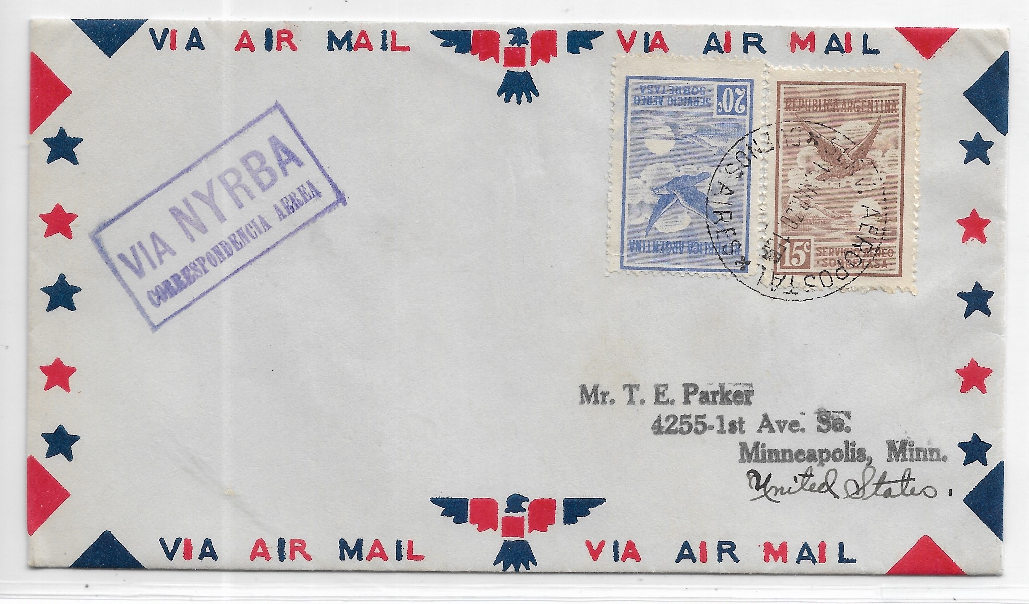 1930 Buenos Aires, Argentina to Minneapolis, MN Airmail via NYBRA. Added Tuesday, October 14, 2025