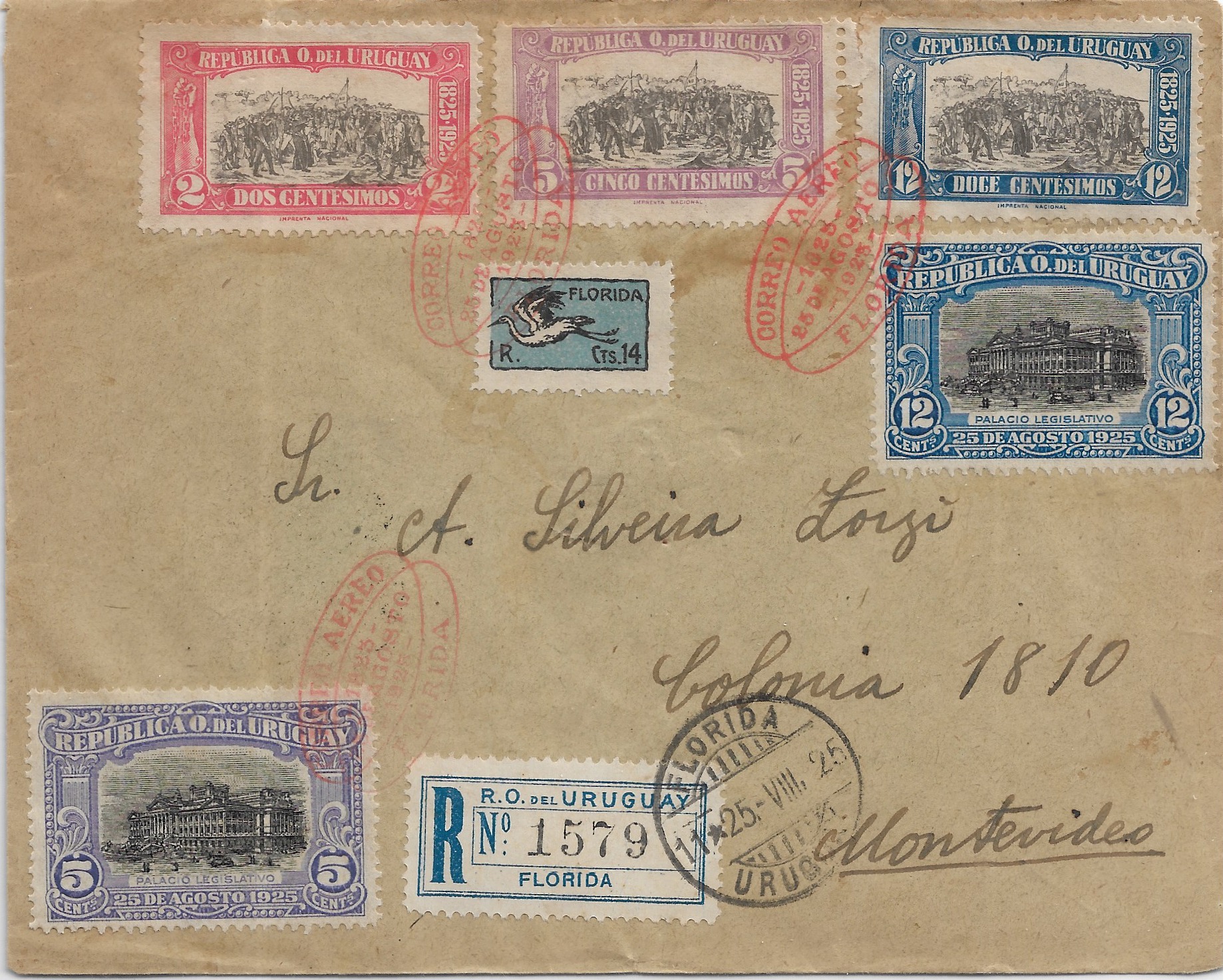 1925 Florida to Montevideo, Uruguay Registered. back stamped Montevideo. Added Tuesday, October 14, 2025