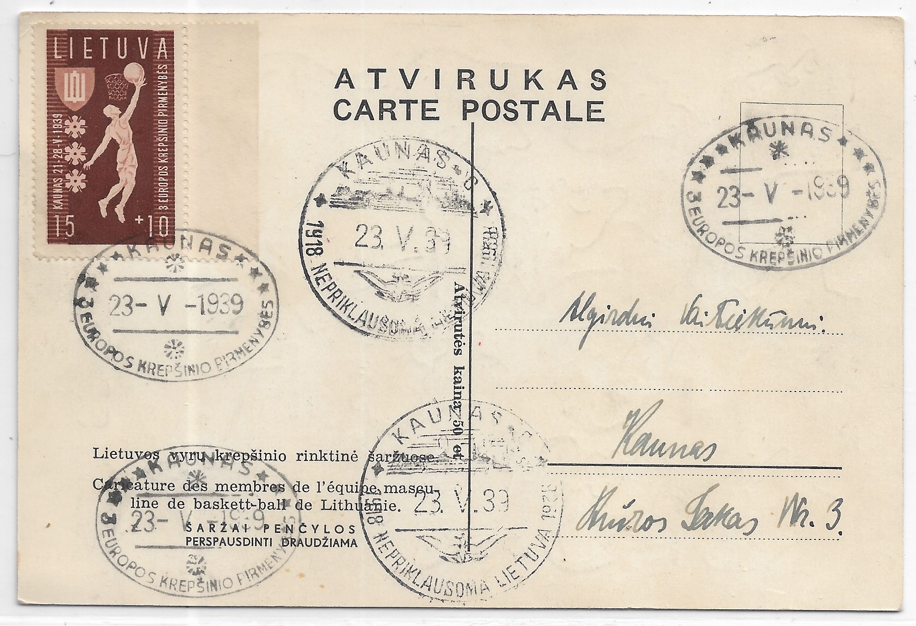 1939 Kaunas to Kaunas, Lithuania solo Sc #B22. Added Tuesday, October 14, 2025