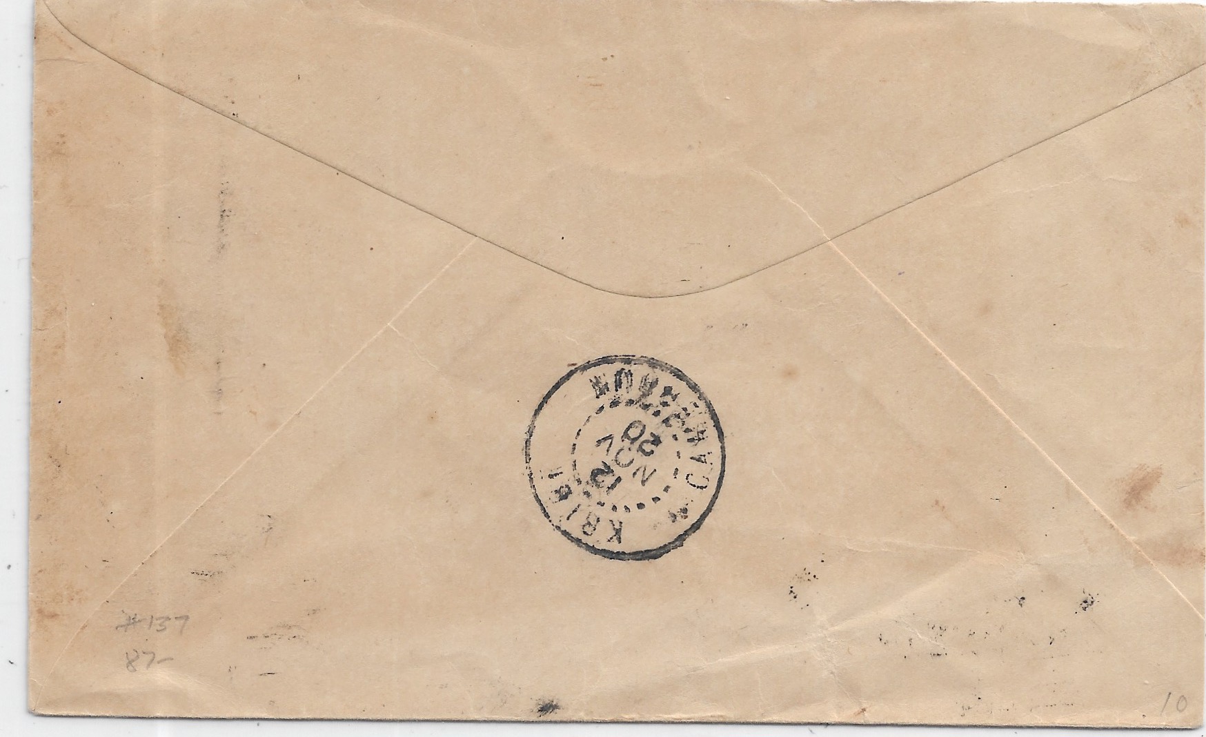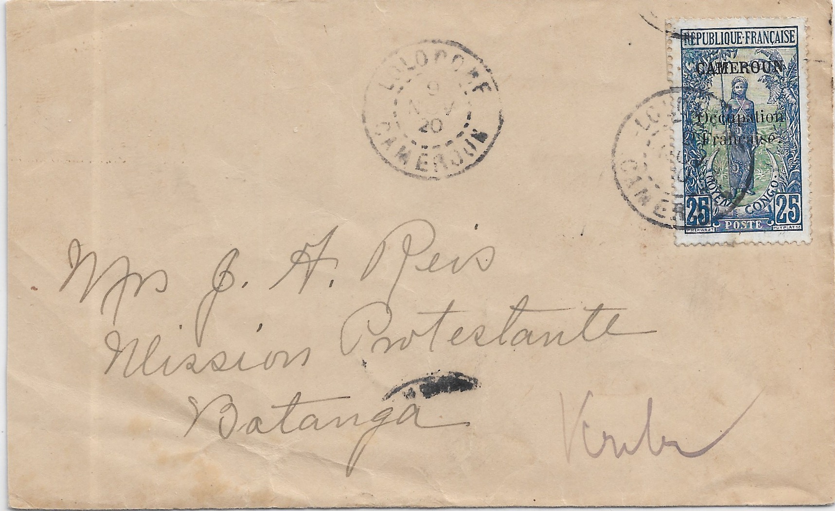 1920 Lolocote to Katanga, Cameroun solo Sc #137. back stamped Kribi. Added Tuesday, October 14, 2025