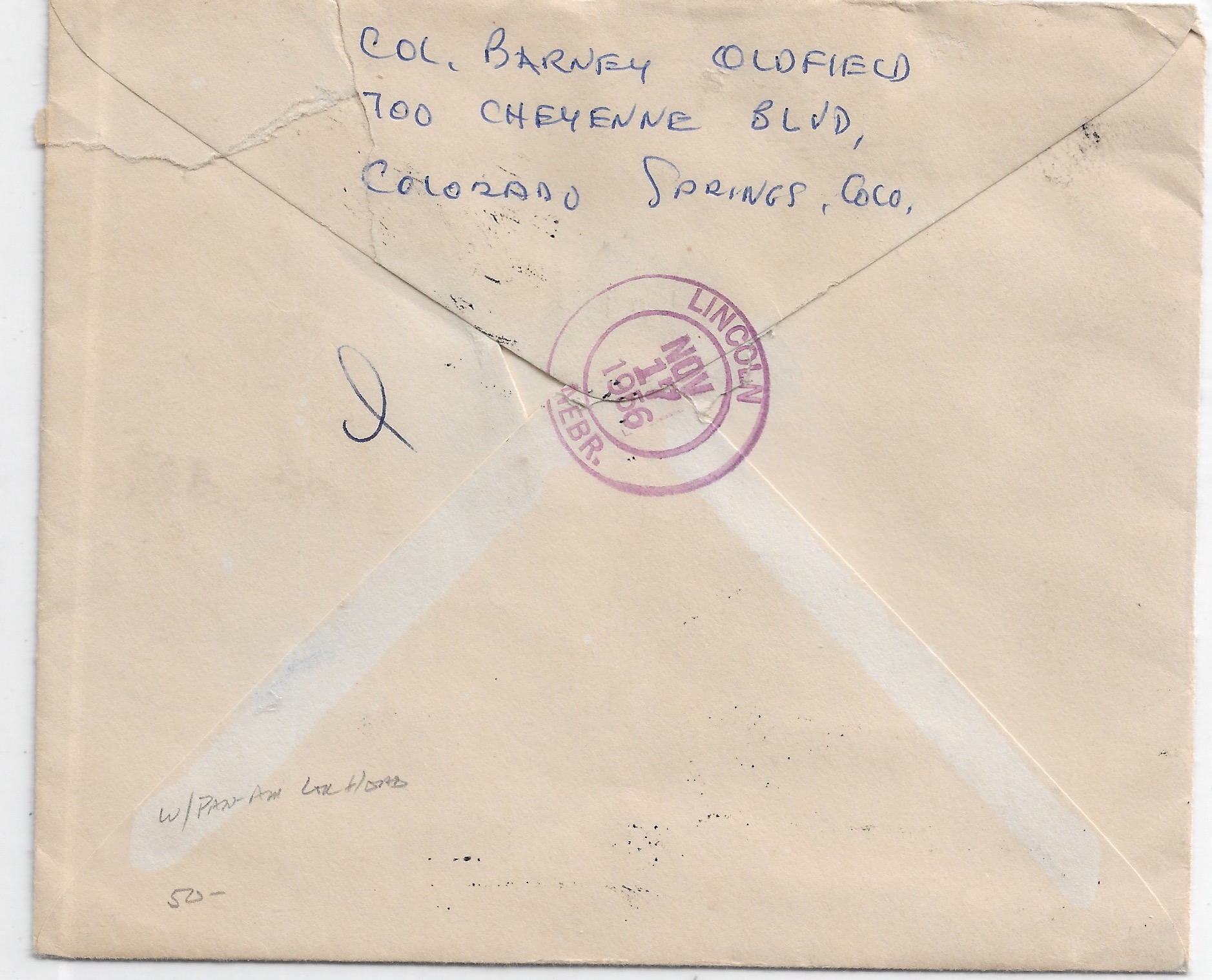 1956 Canton Is, Ellice Islands to Lincoln, NE Registered w/Pan-Am Letterhead. back stamped Lincoln. Added Tuesday, October 14, 2025
