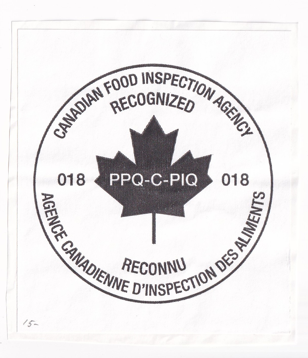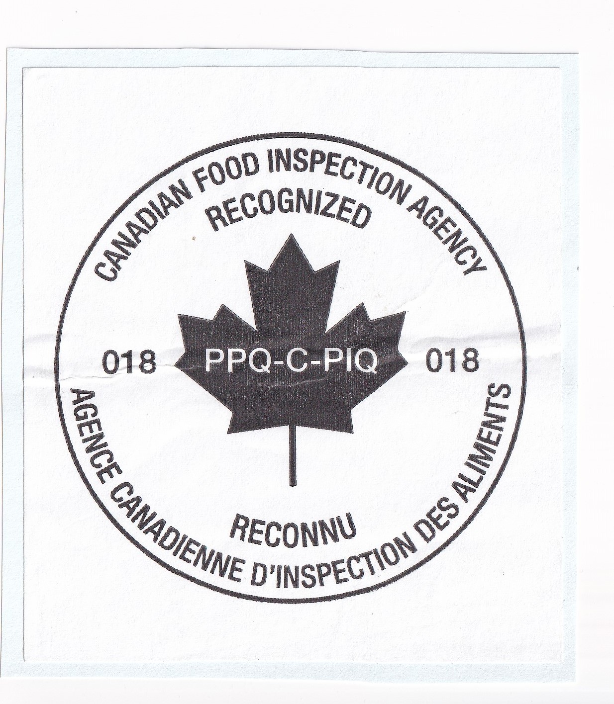 Canadian Food Inspection Agency Label. Added Saturday, February 28, 2026