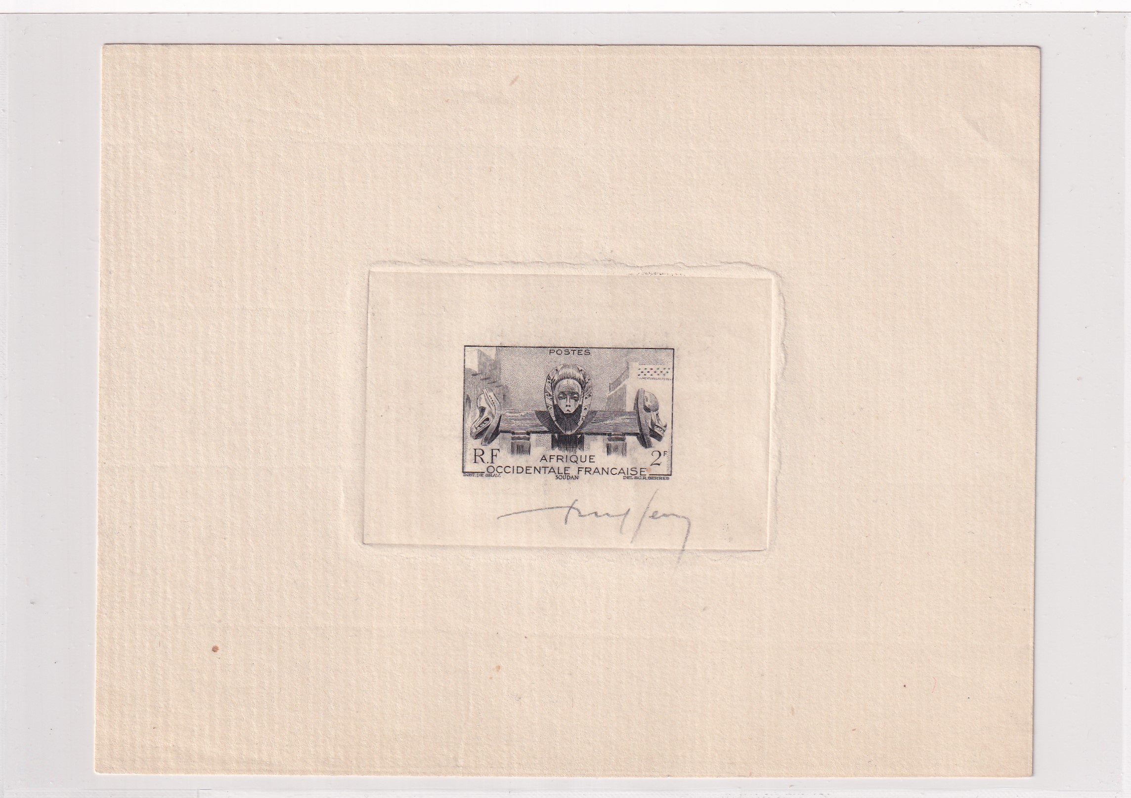 French Occupied Africa 2F Large Die Proof, signed. Added Monday, February 23, 2026