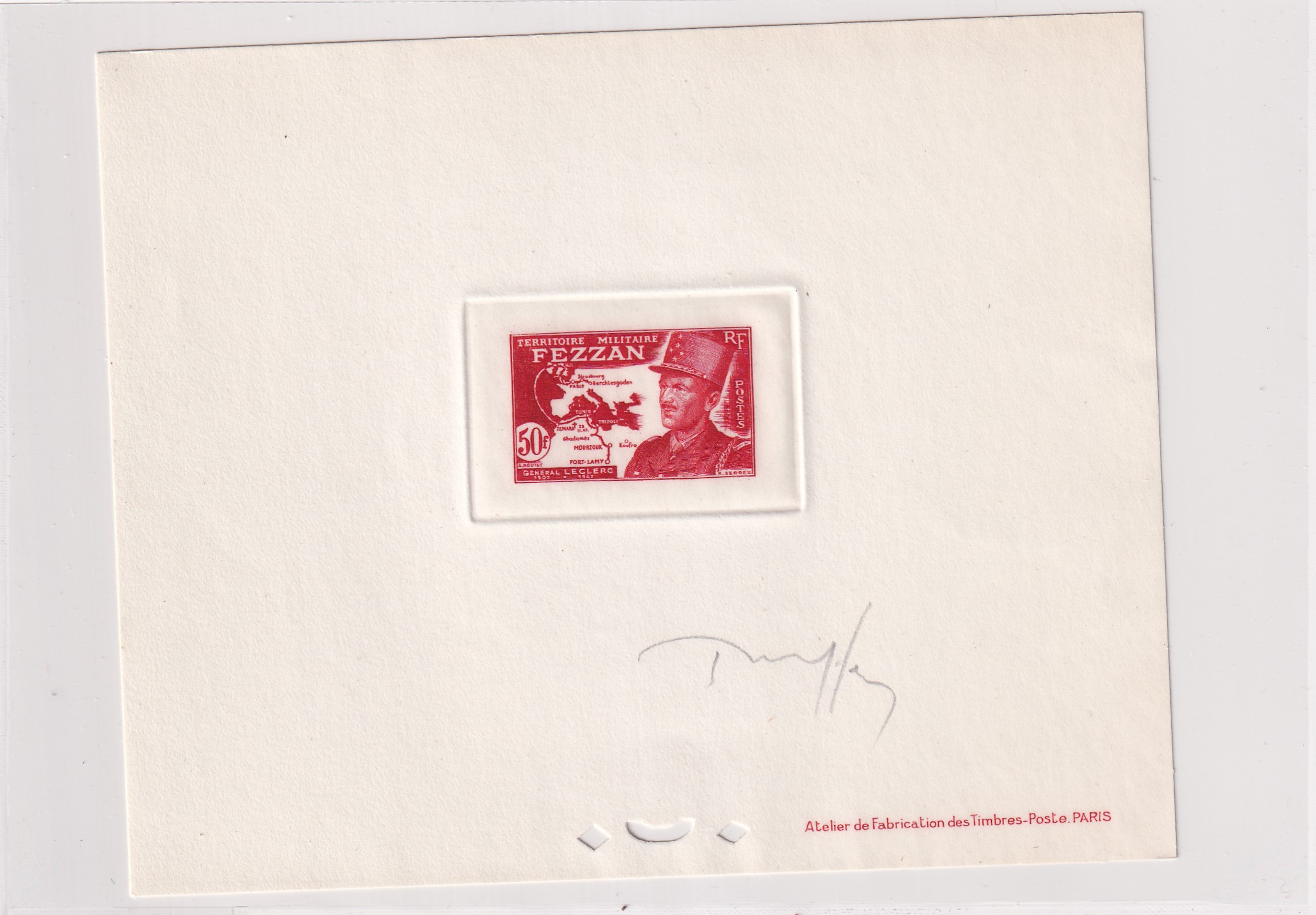 French Military Territory 50F Large Die Proof, signed. Added Monday, February 23, 2026