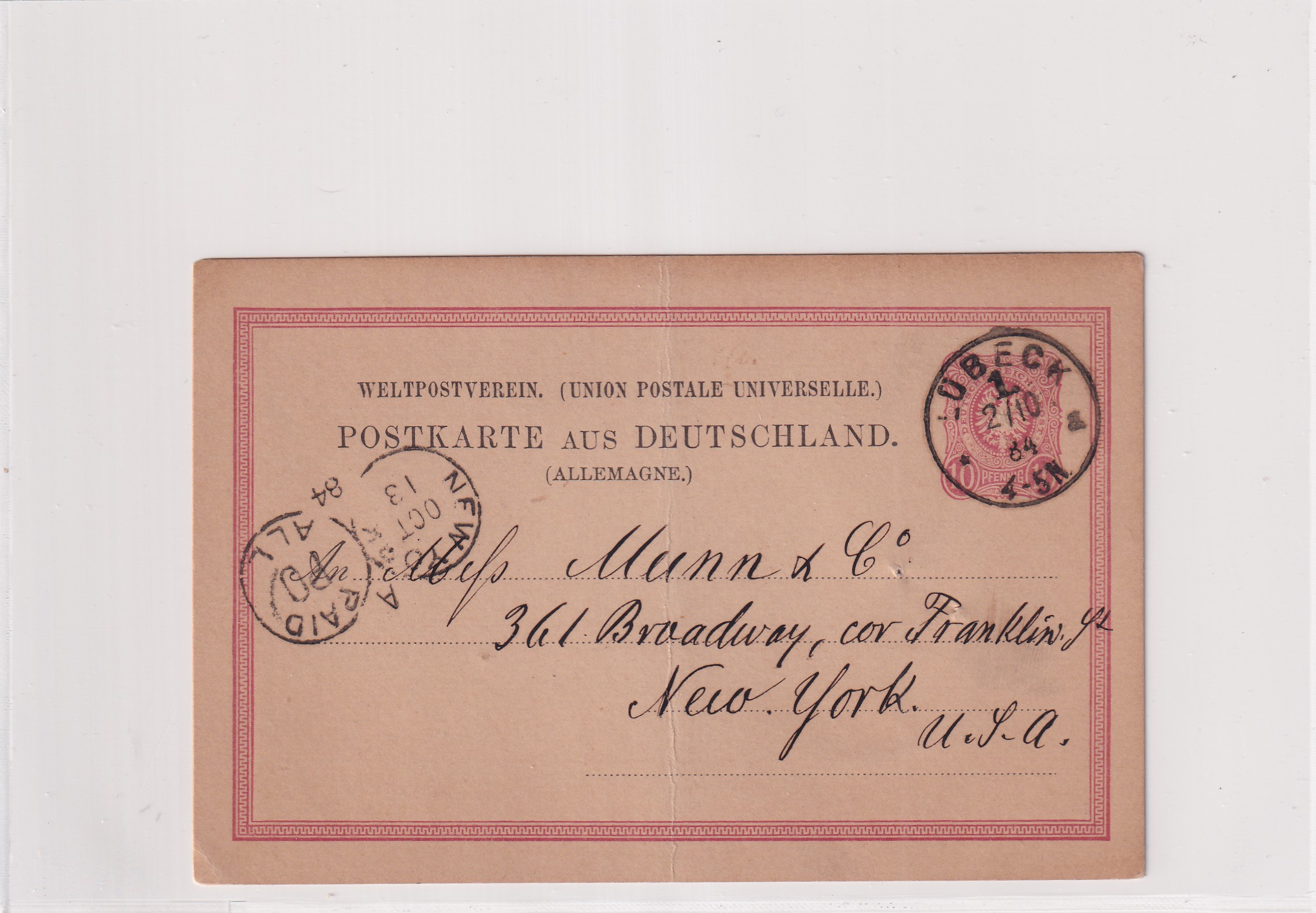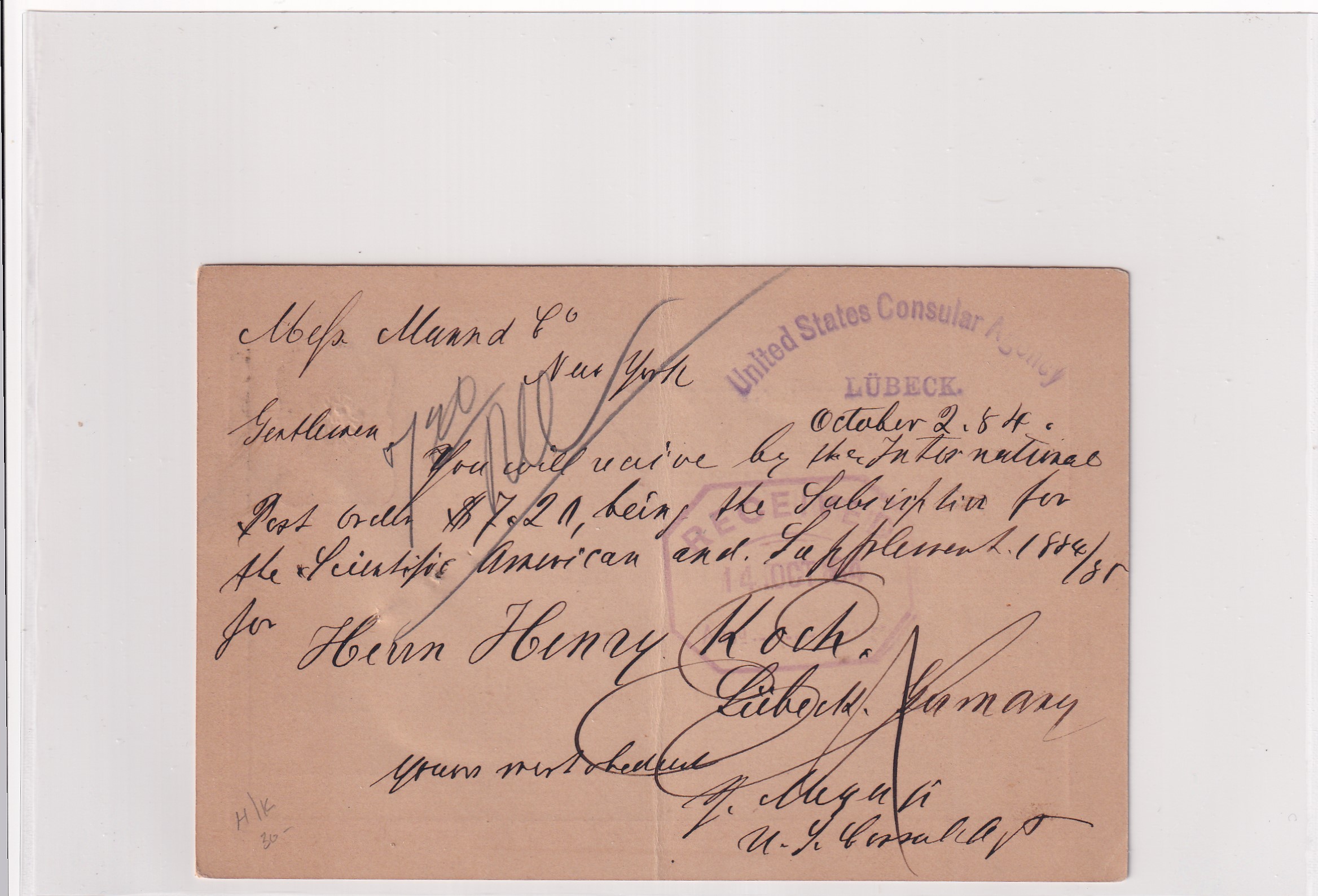 1884 U.S. Consulate Lubeck, Germany to New York, NY. Added Thursday, February 26, 2026