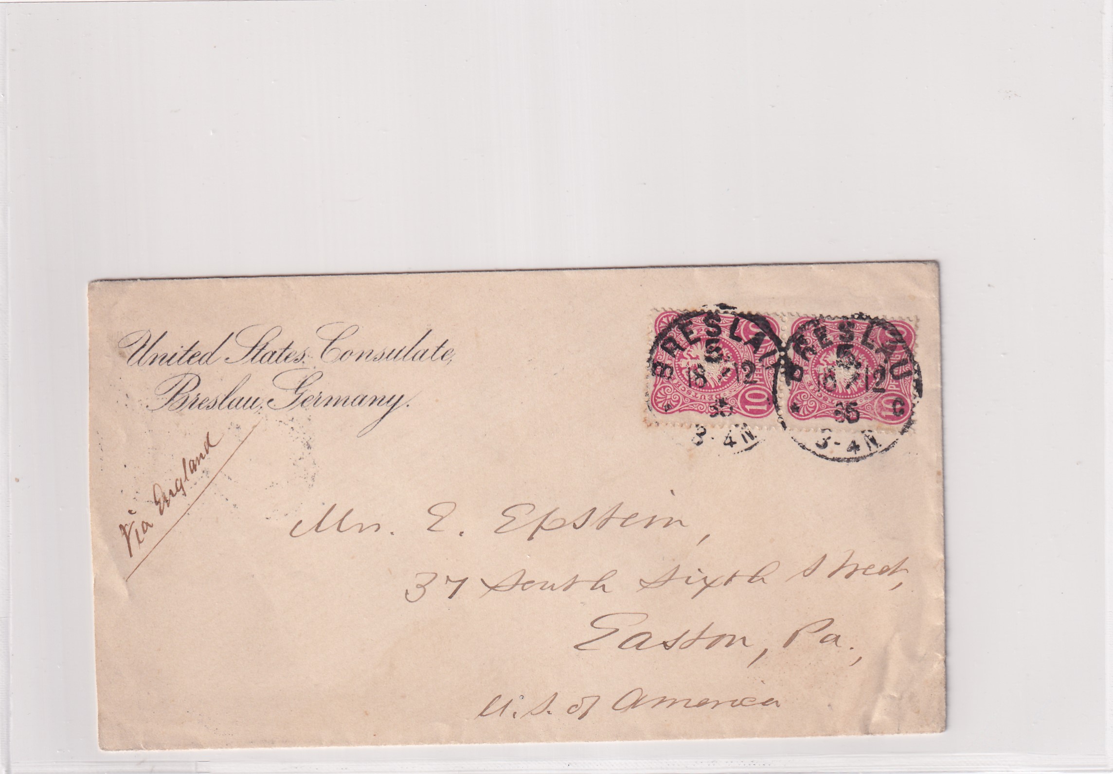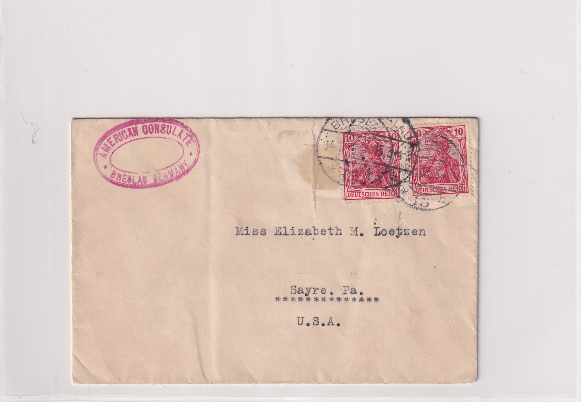 1906 U.S. Consulate, Breslau, Germany to Sayre, Pa. Added Thursday, February 26, 2026