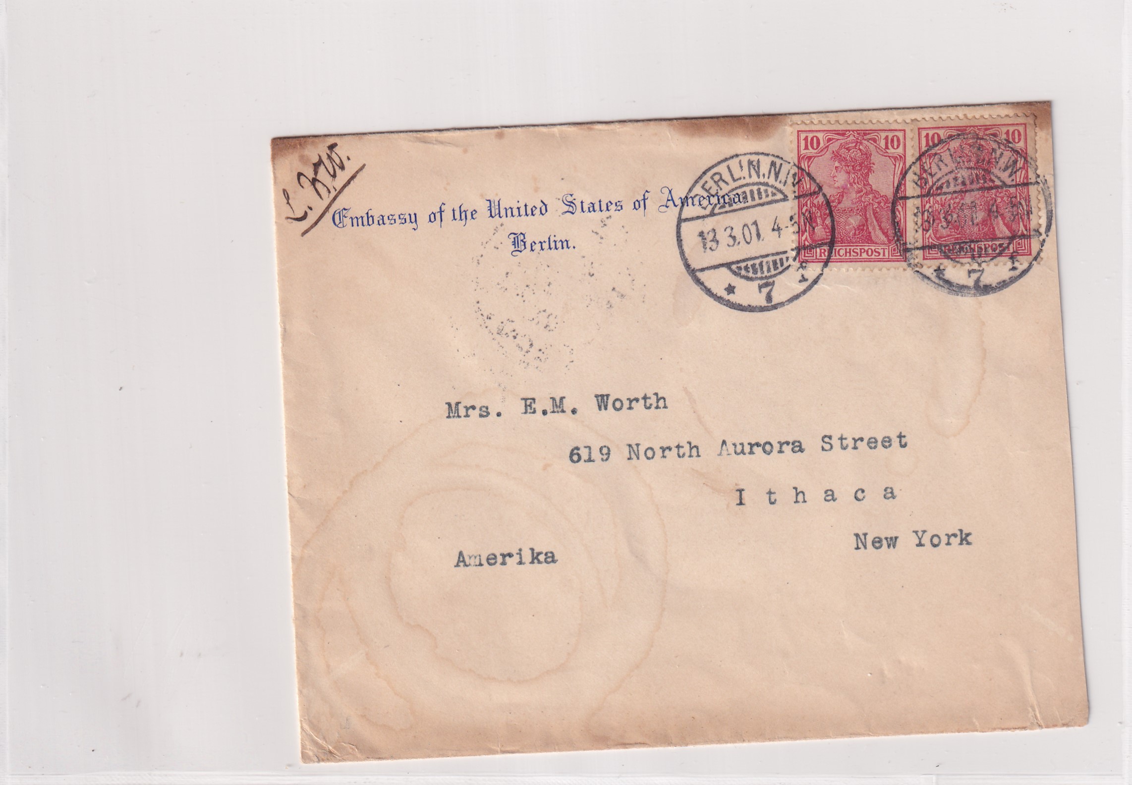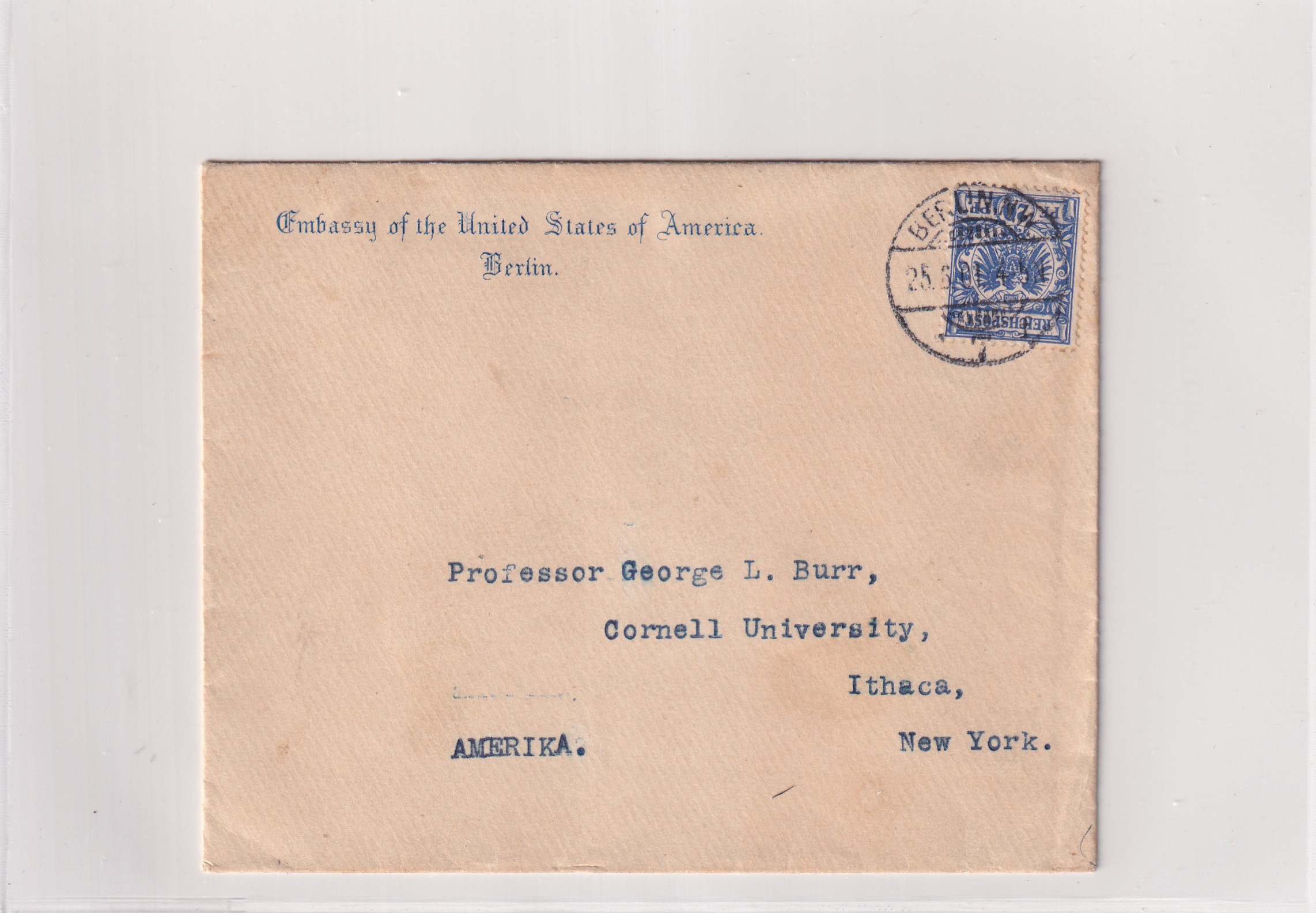 1901 U.S. Consulate Berlin, Germany to Ithaca, NY. back stamped Ithaca. Added Thursday, February 26, 2026