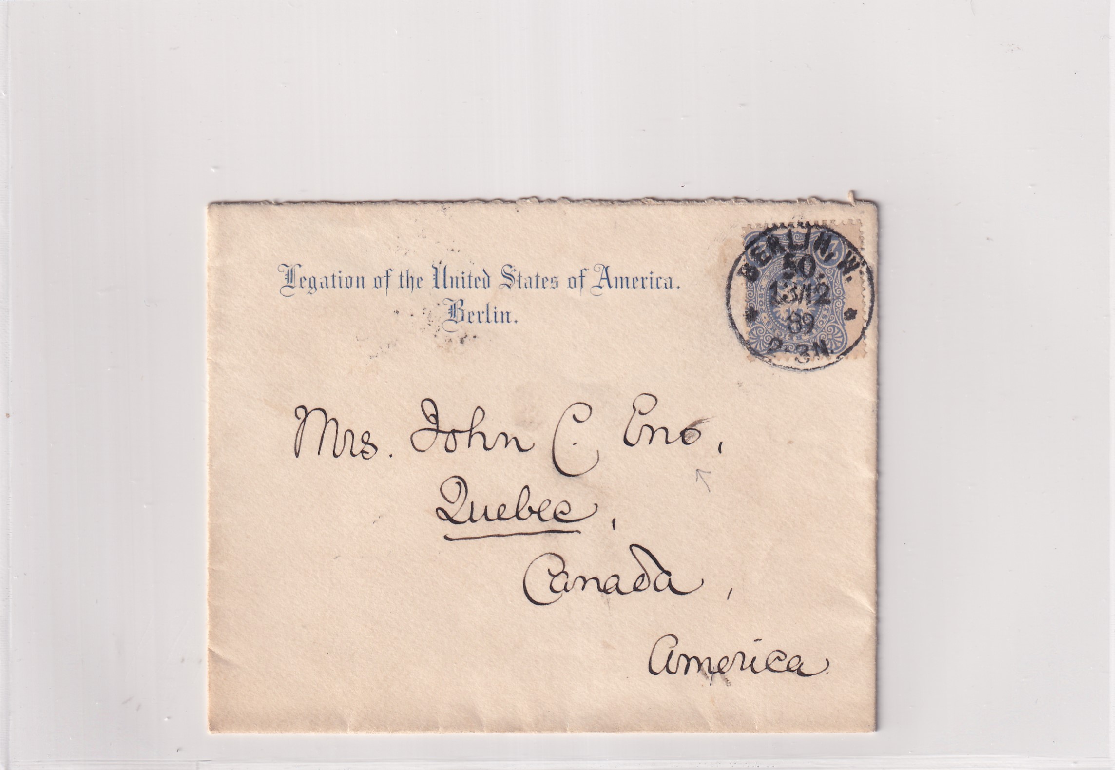 1889 U.S. Consulate Berlin, Germany to Quebec, Canada. back stamped Quebec. Added Thursday, February 26, 2026