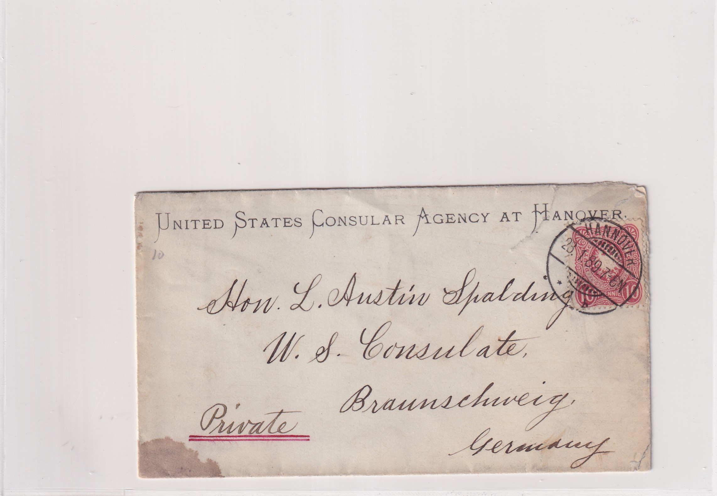 1889 U.S. Consulate Hanover to Braunschweig, Germany. back stamped Braunschweig. Added Thursday, February 26, 2026