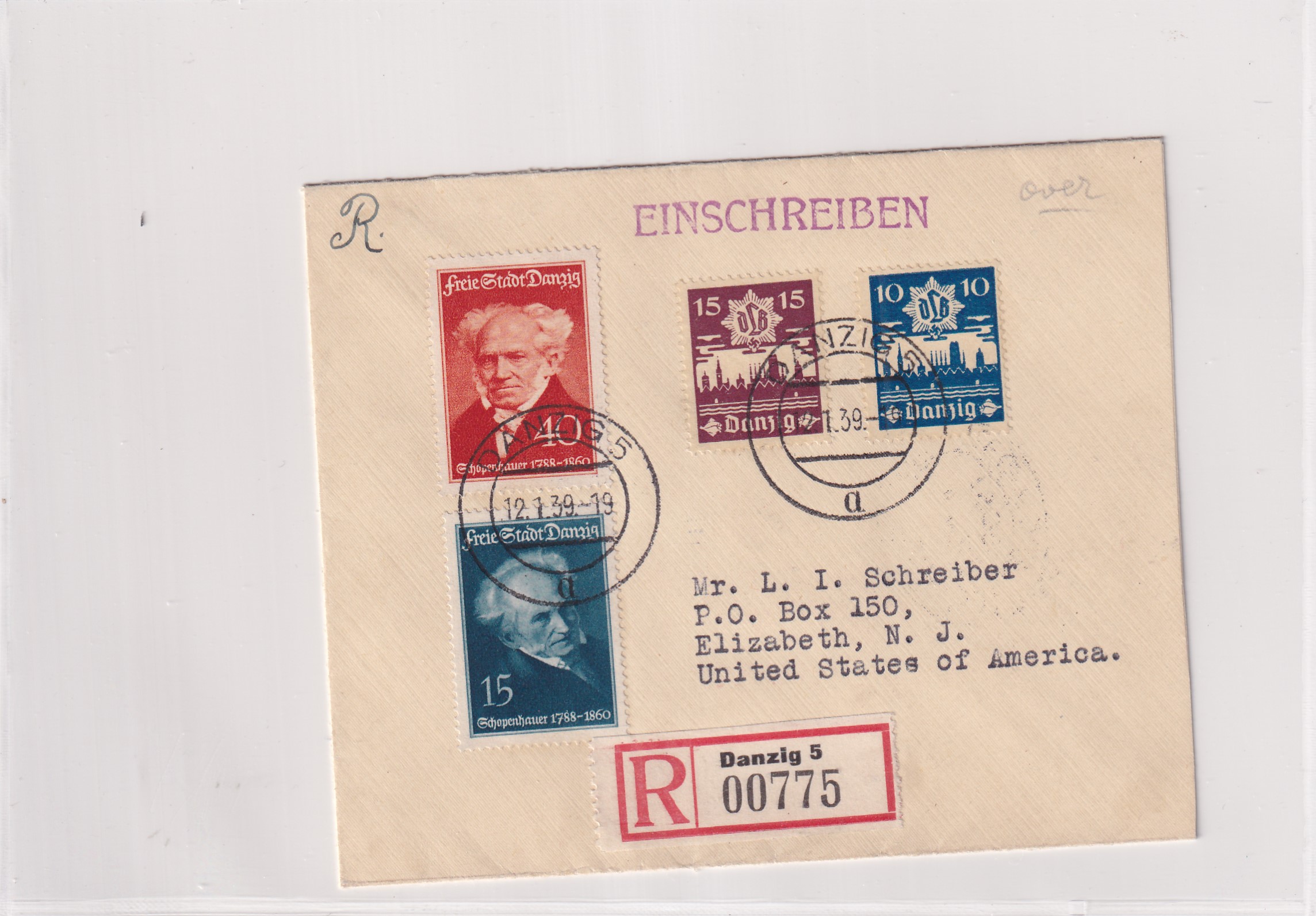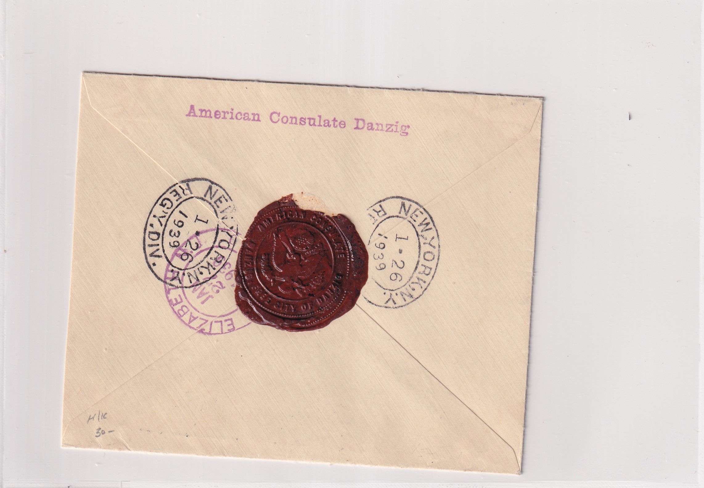 1939 American Consulate Danzig to Elizabeth, NJ Registered. back stamped New York & Elizabeth. Added Wednesday, February 18, 2026