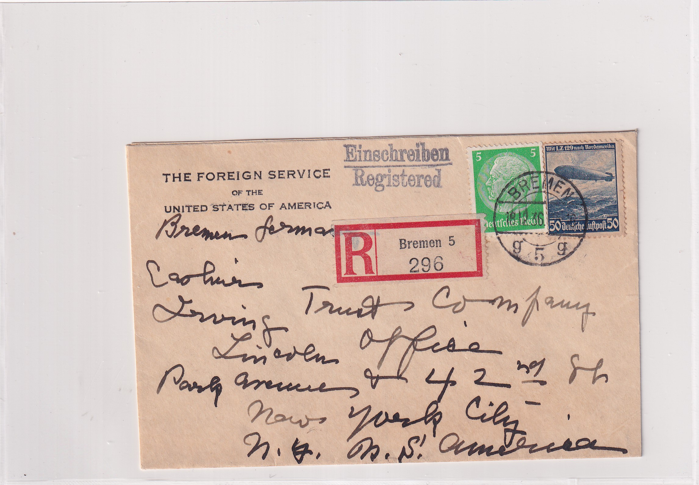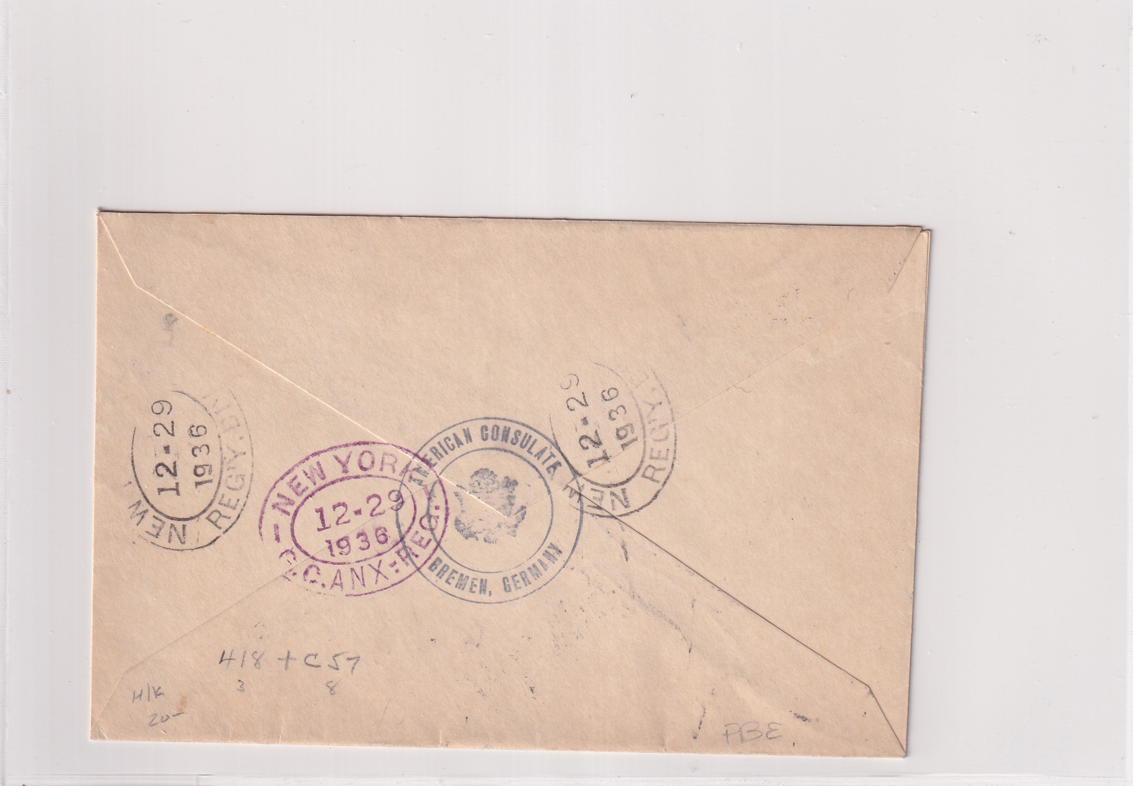 1936 American Consulate Bremen to New York City, NY Registered. back stamped New York. Added Wednesday, February 18, 2026