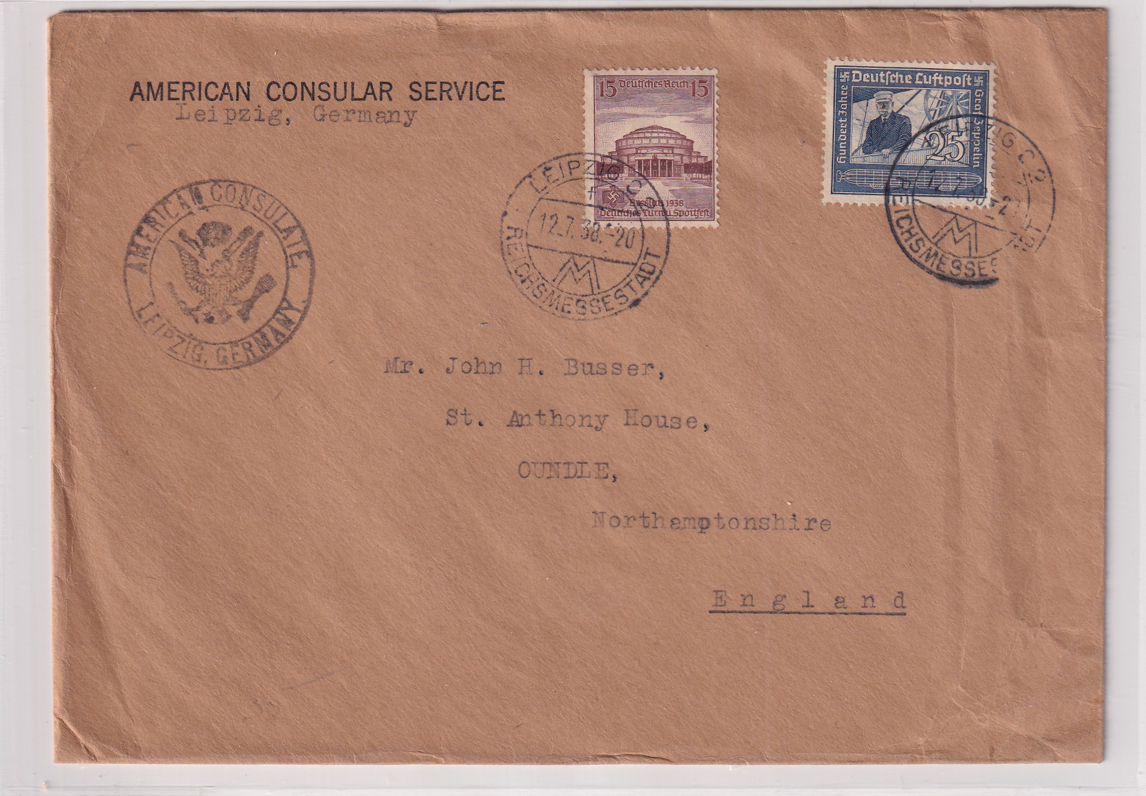 1938 U.S. Consulate Leipzig, Germany to Oundle, England. Added Thursday, February 26, 2026