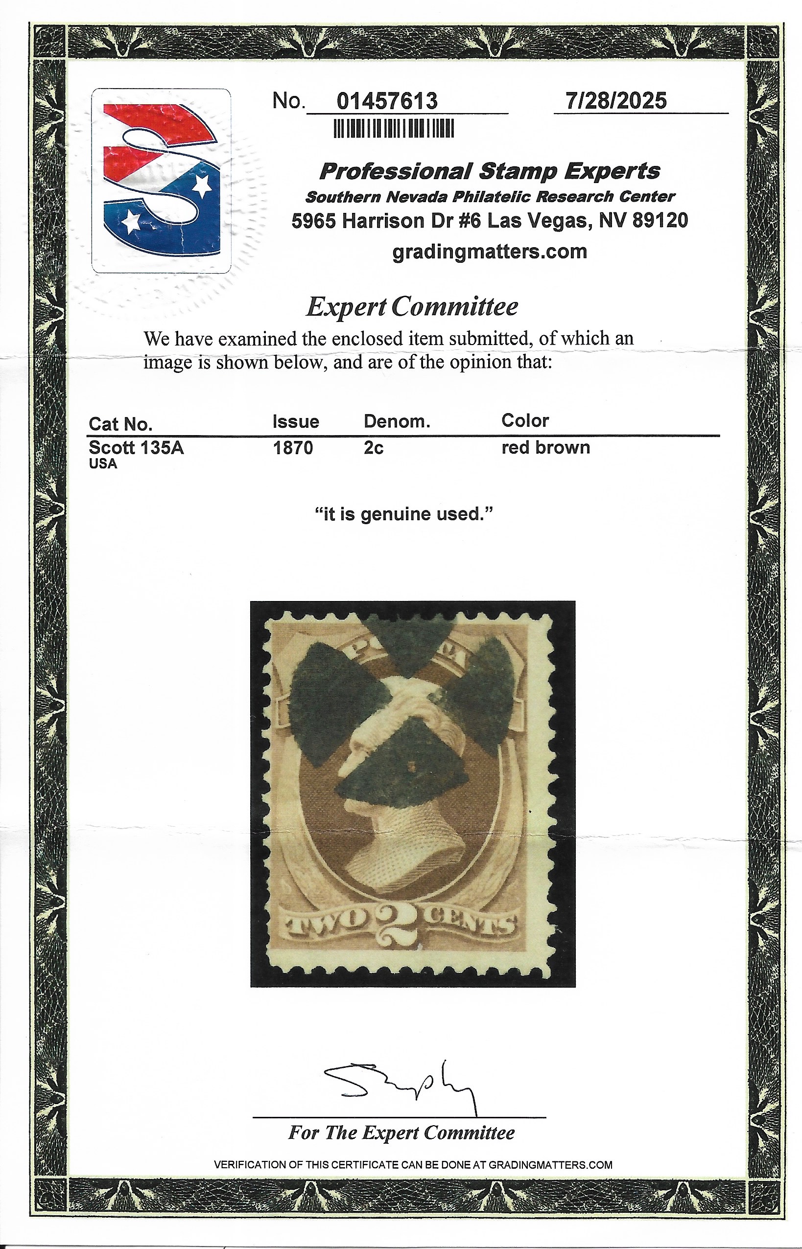 | Sc # 135A, used w/2025 PSE Cerification. Added Sunday, September 14, 2025 | Price: $350.00