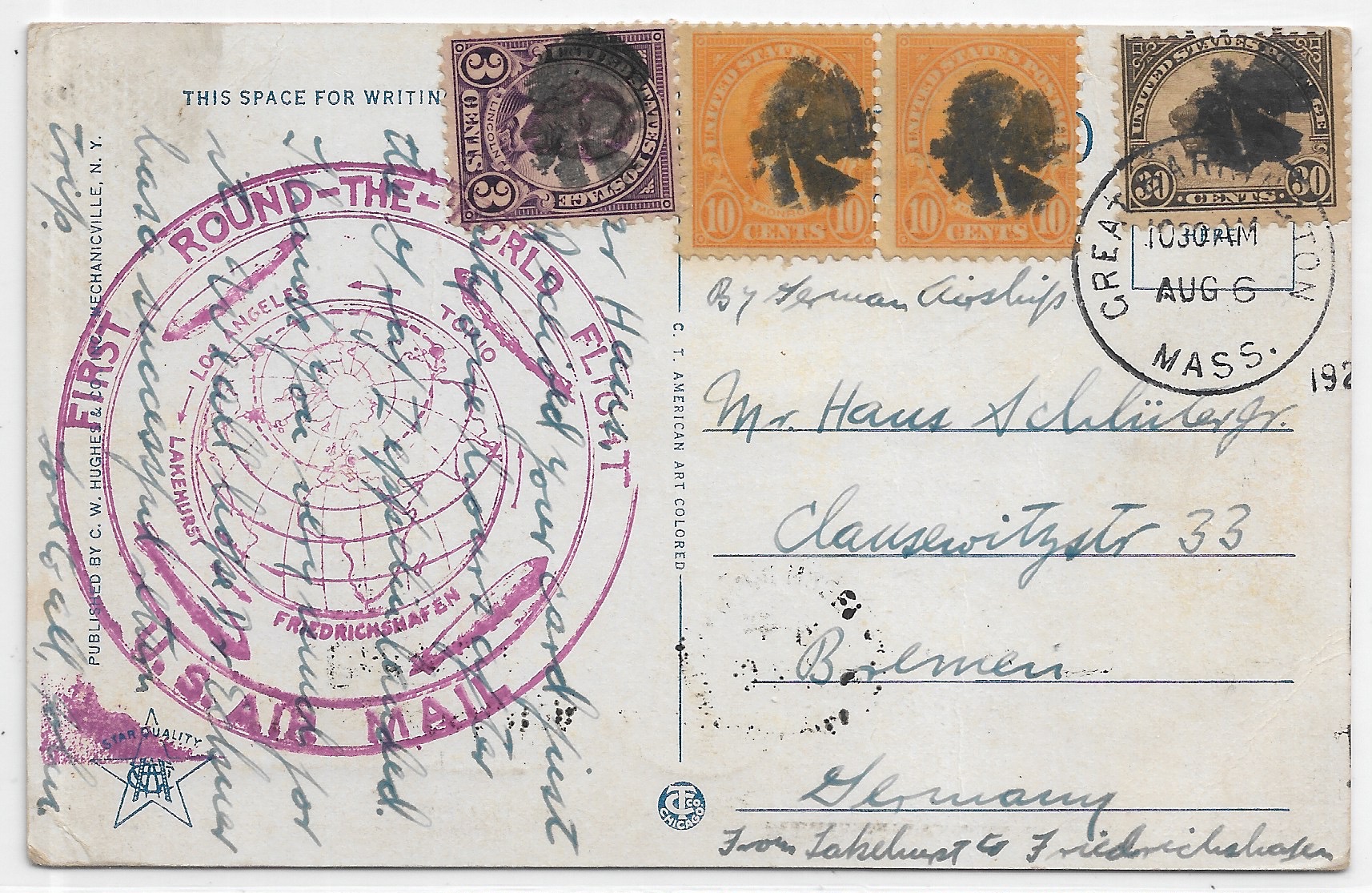 | 1929 Great Barrington, Ma to Bolmen, Germany 1st Graf Zeppelin Round the World Flight, w/Postage Due. Added Sunday, September 14, 2025 | Price: $45.00