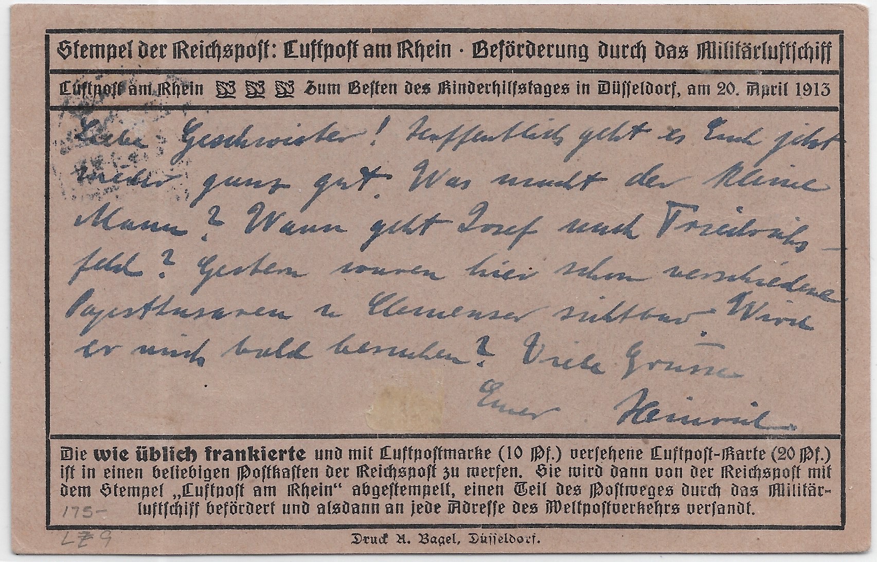| 1913 Dusseldorf to Munich, Germany 1st Flight Zeppelin LZ9. Added Sunday, September 14, 2025 | Price: $175.00
