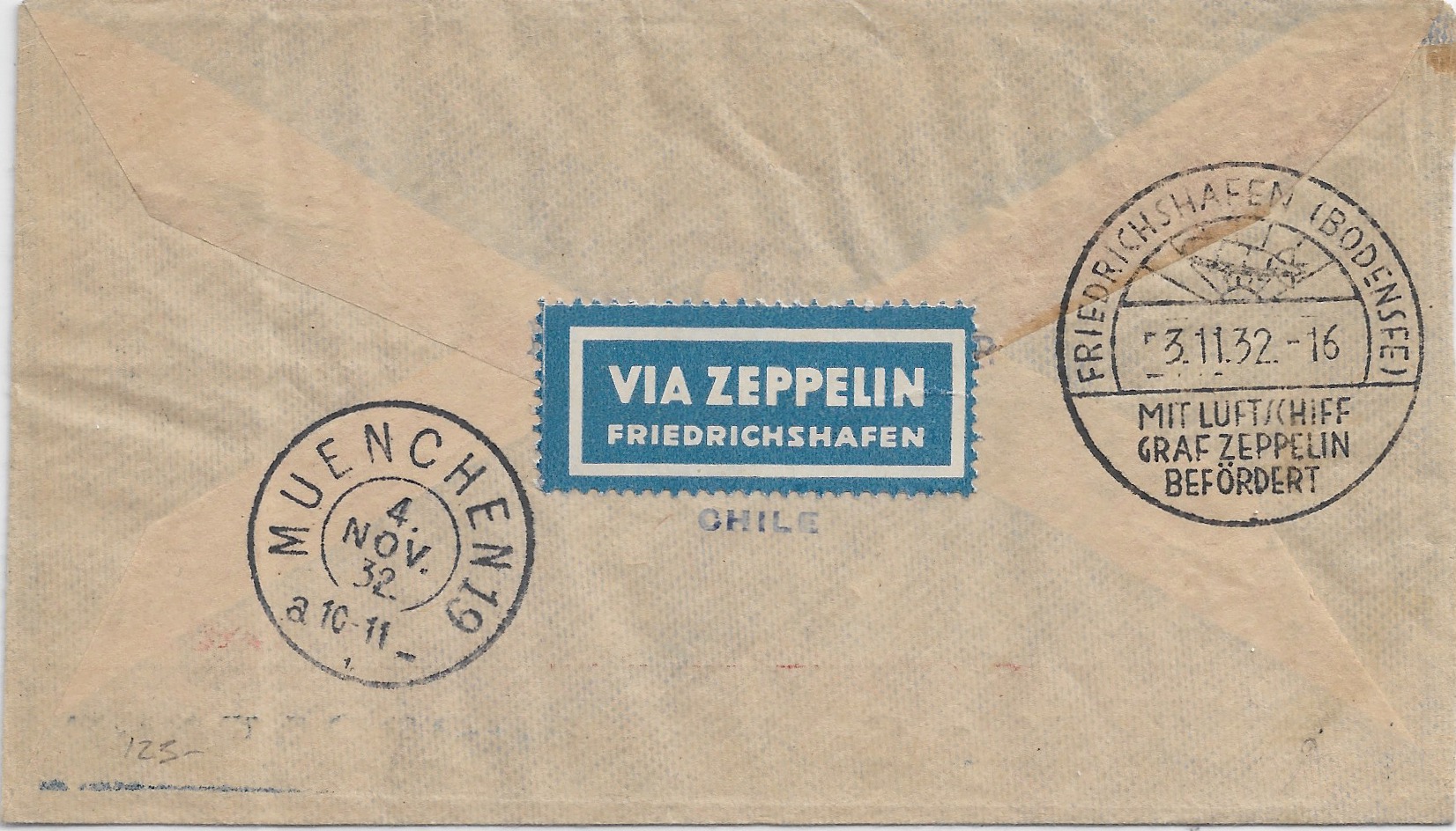 | 1932 Santiago, Chile to Munich, Germany via Graf Zeppelin. back stamped Munich. Added Sunday, September 14, 2025 | Price: $125.00