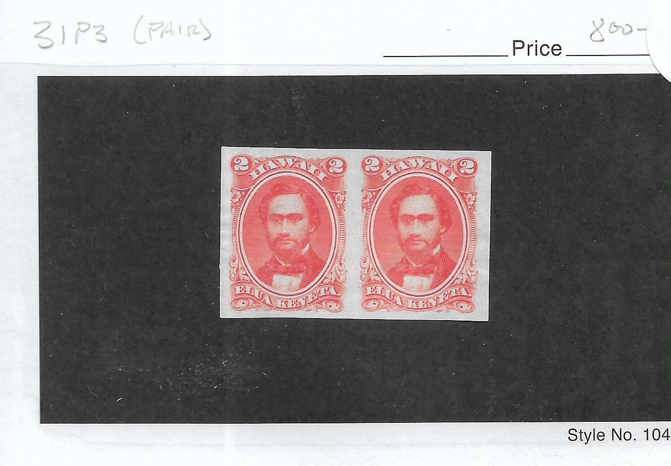 | Hawaii: Sc #31P3 Pair, India Paper. Added Sunday, October 12, 2025 | Price: $800.00