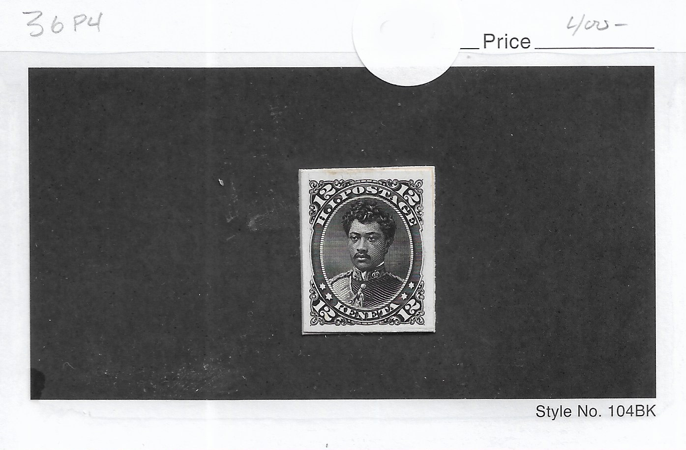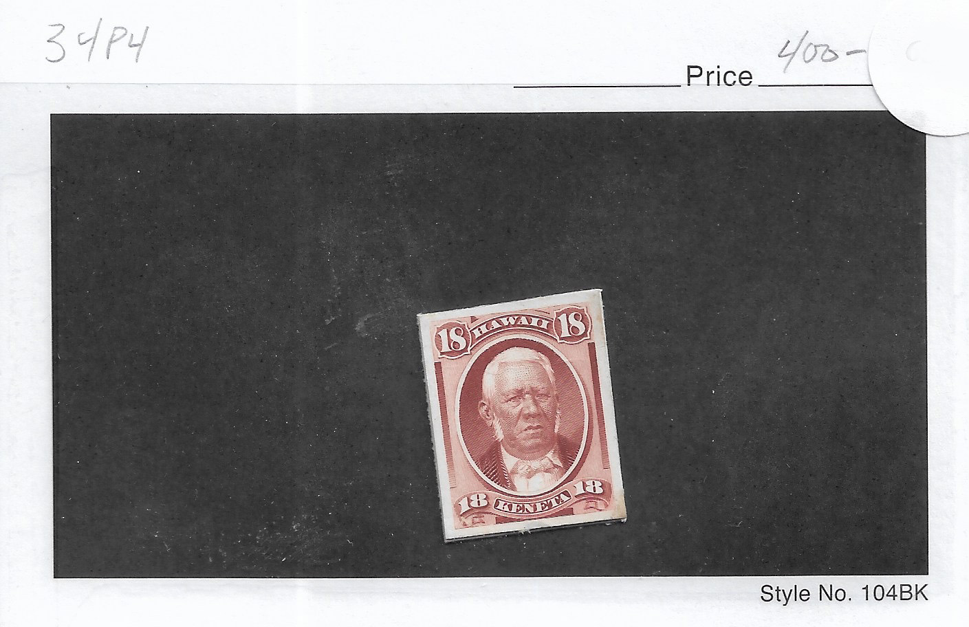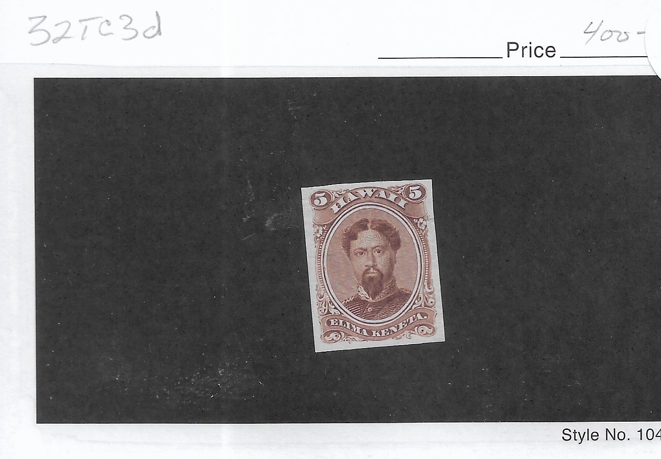 | Hawaii: Sc #34 Portrait Proof, Lg India Card (water damage). Added Sunday, October 12, 2025 | Price: $400.00