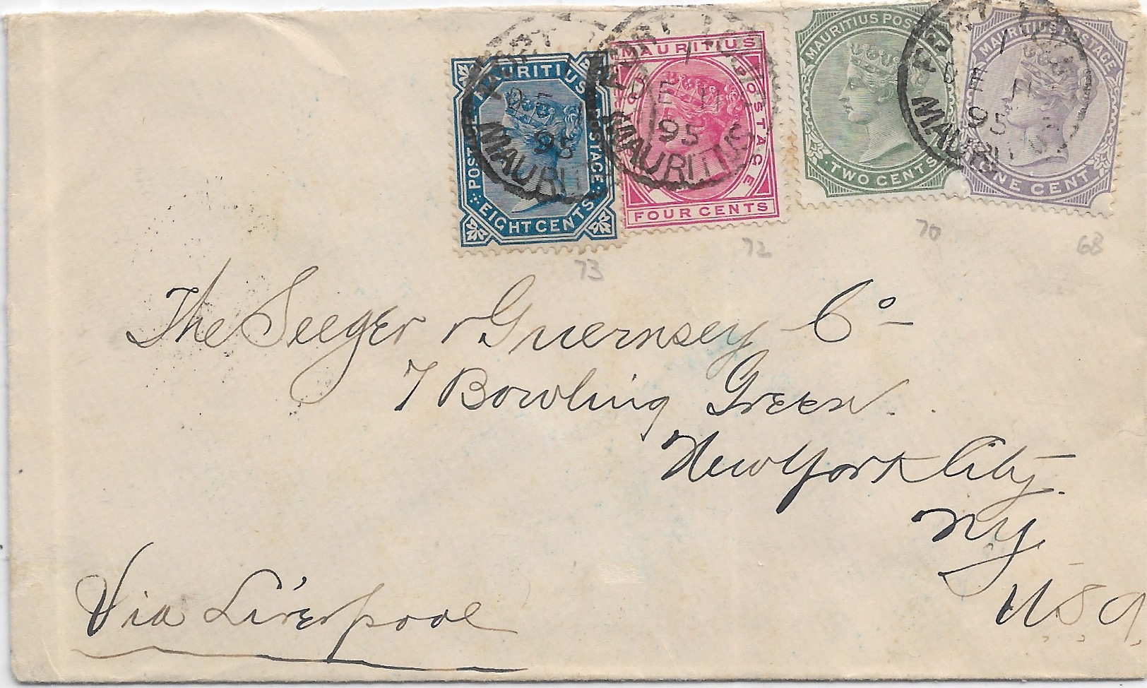 | 1895 Mauritius to New York, NY via Liverpool. portion of the back has been excised. Added Sunday, October 12, 2025 | Price: $50.00