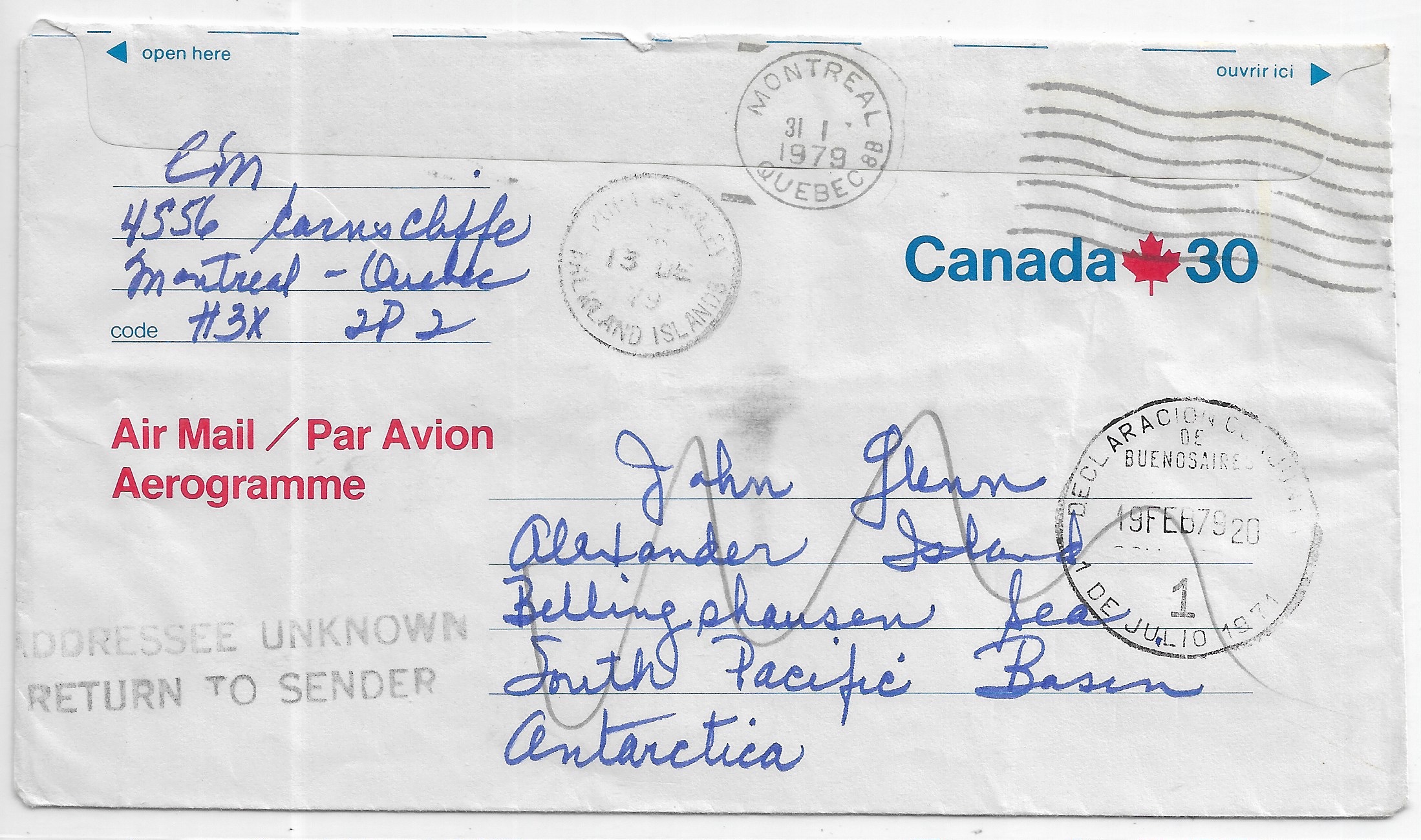 | 1979 Montreal, Canada to Alexander Island, Bellingshausen Sea, Antarctic, RTS. Added Tuesday, October 14, 2025 | Price: $75.00