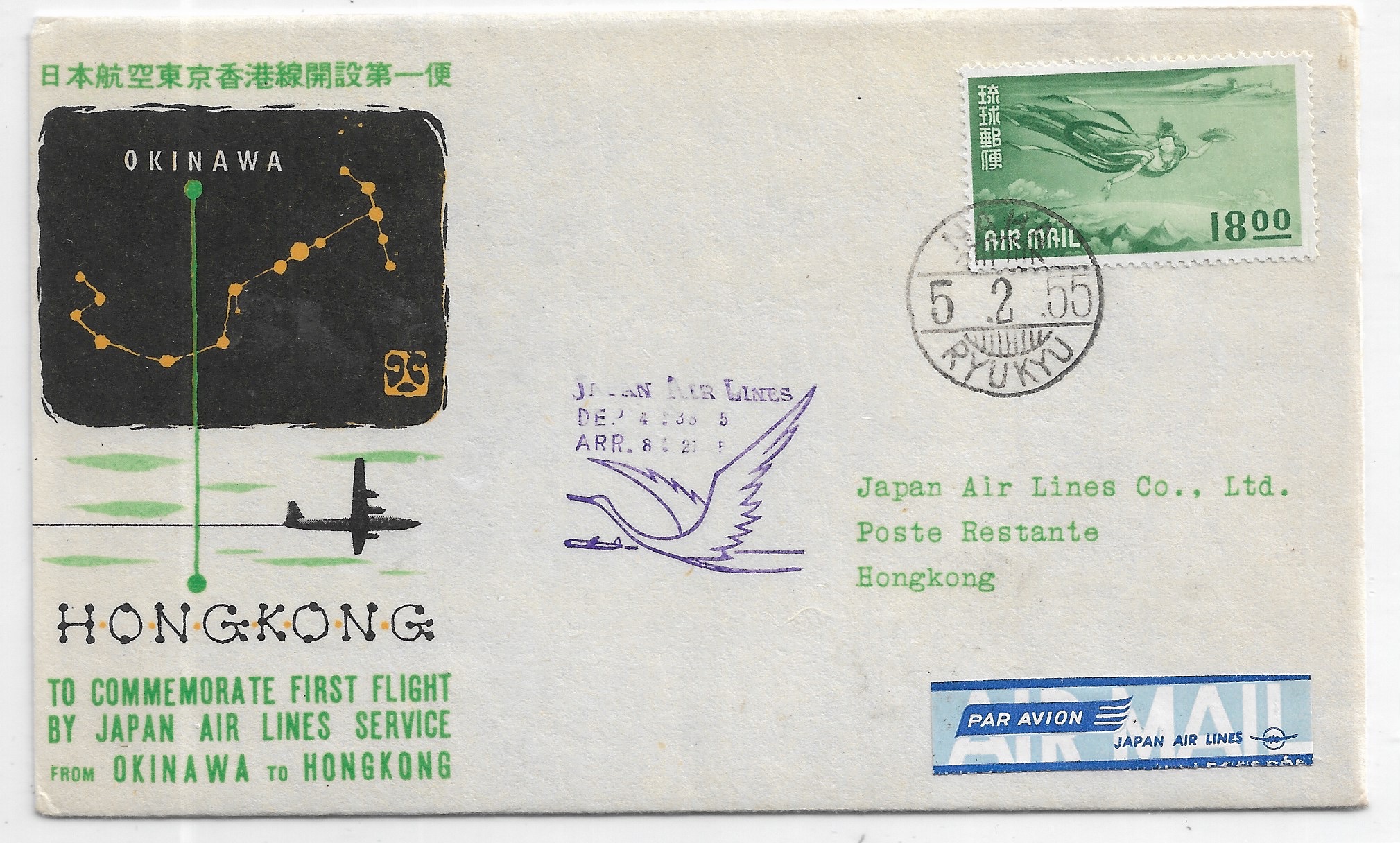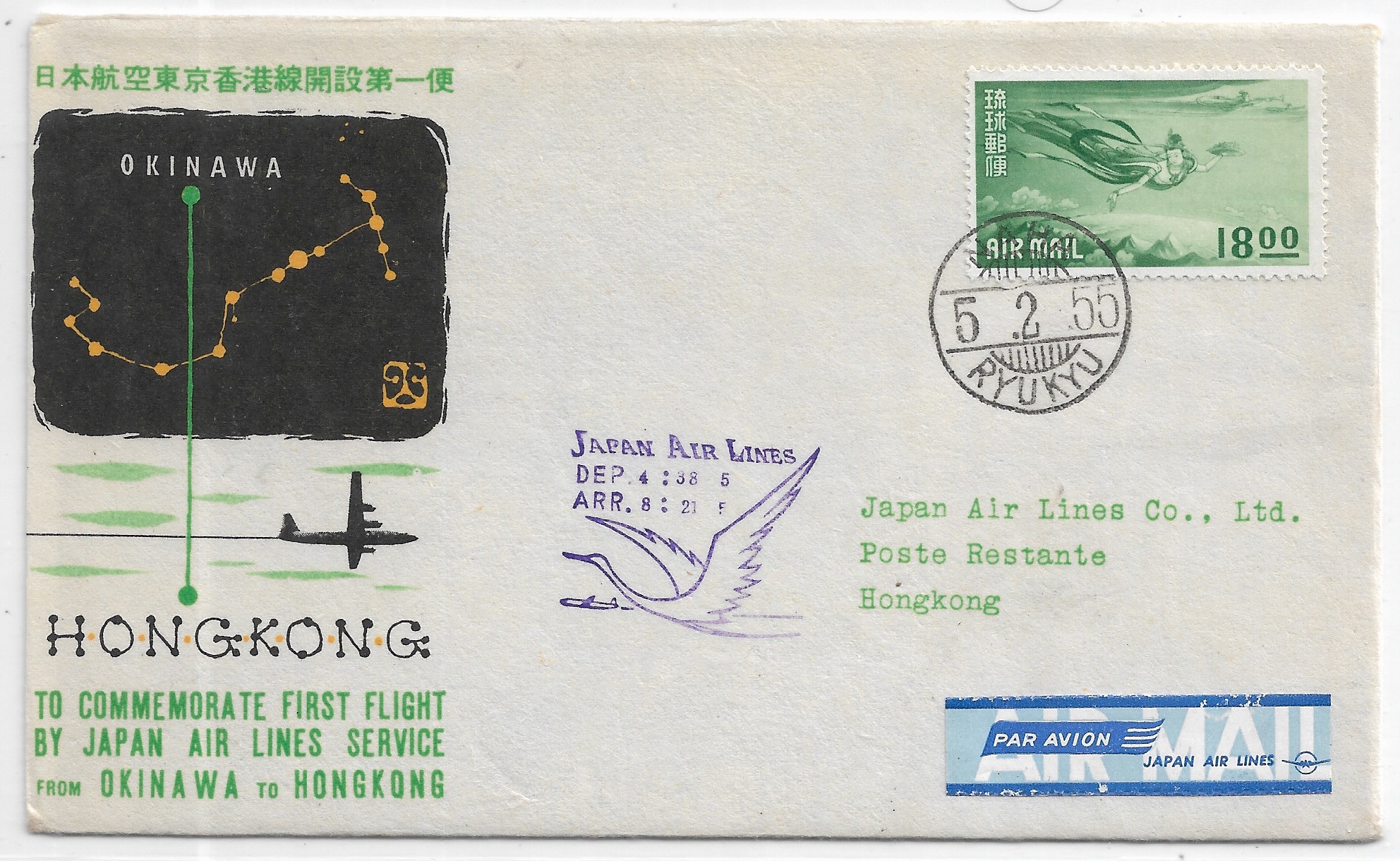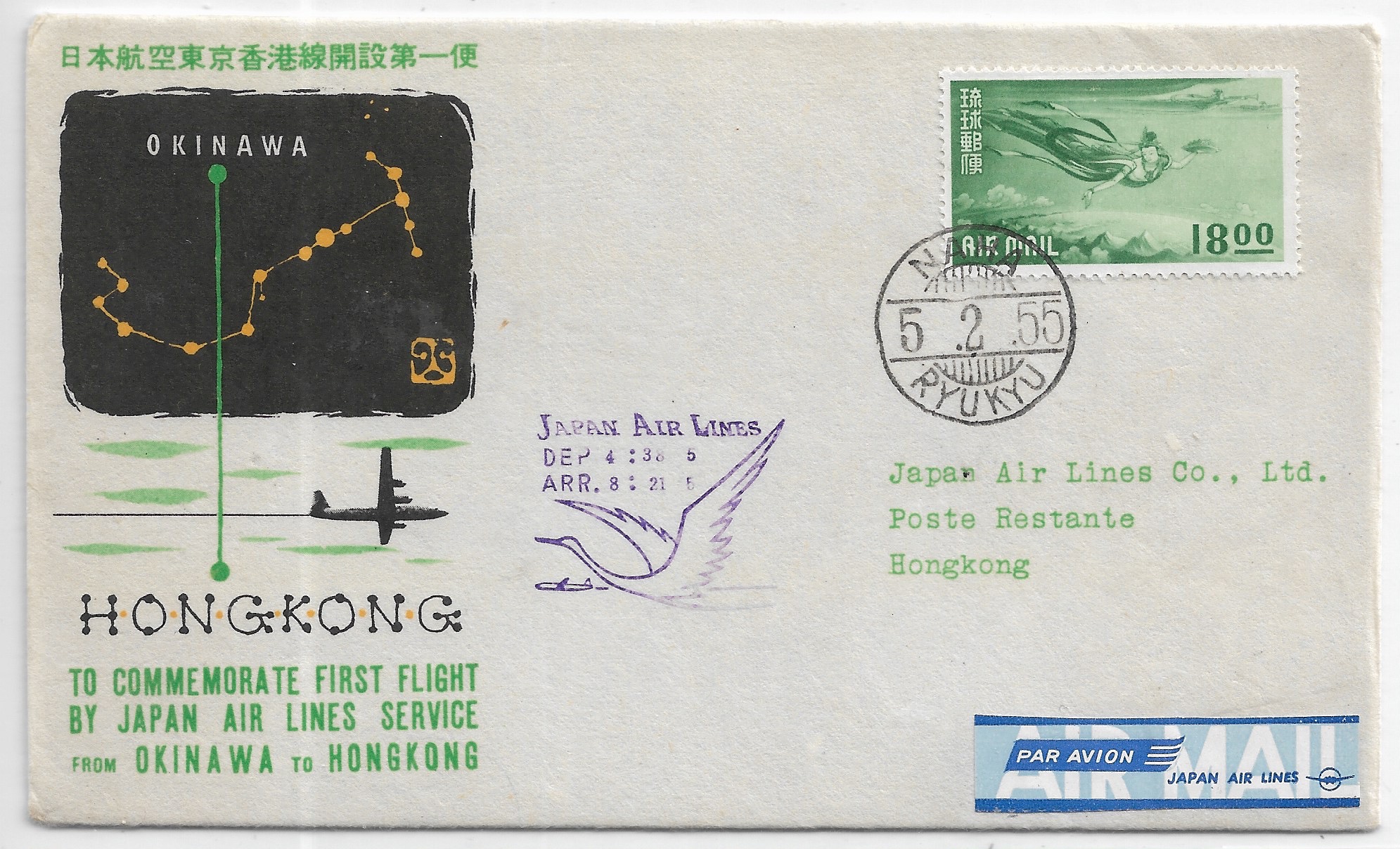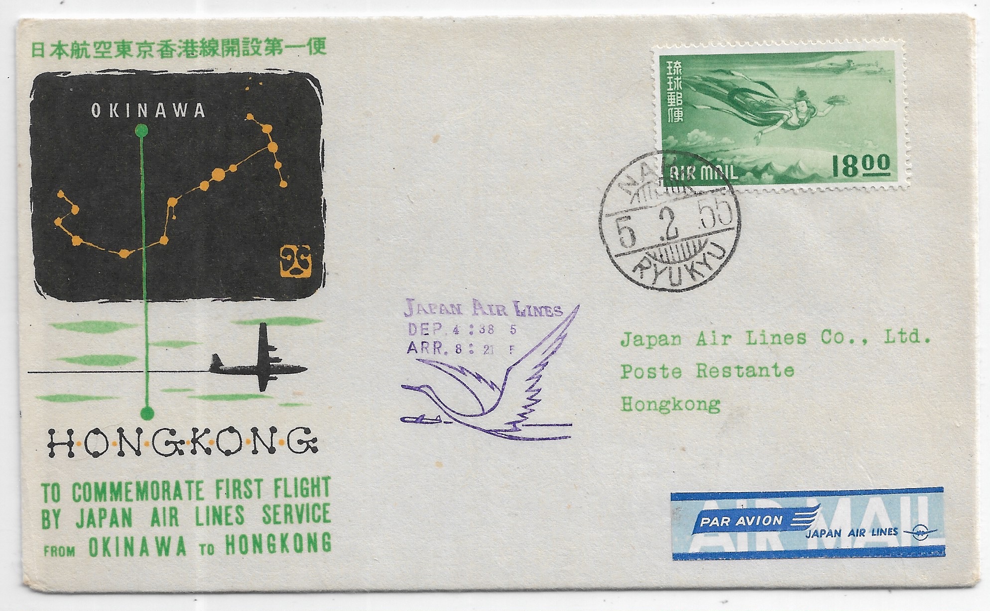 | 1955 1st Flight Naha, Ryukyu Island to Hong Kong Japan Air Lines. back stamped Hong Kong. Added Tuesday, October 14, 2025 | Price: $25.00