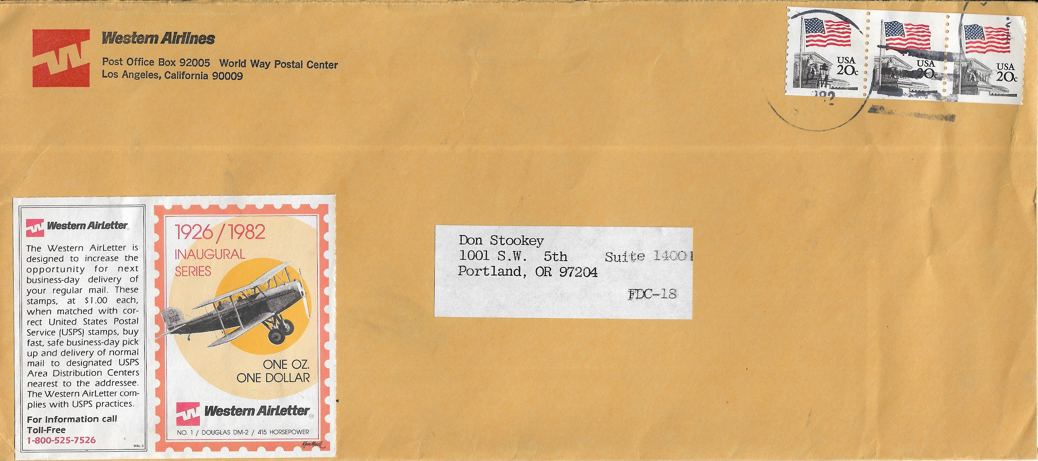 1982 Western Airlines Airletter Express, Los Angeles, Ca to Portland, Or. Added Sunday, November 9, 2025