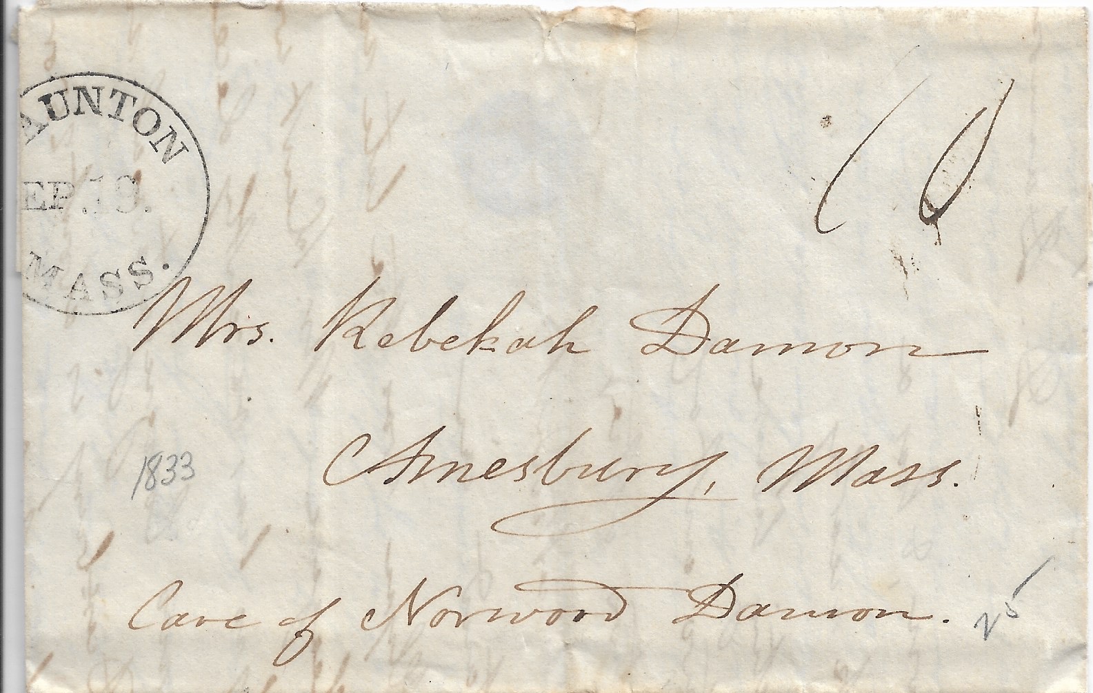 Stampless: 1833 Taunton to Amesbury, MA. Added Saturday, November 8, 2025