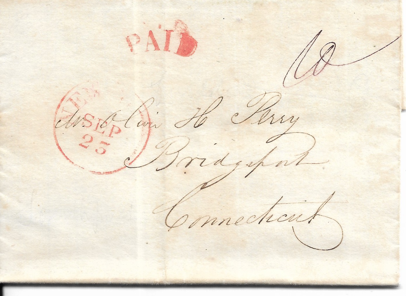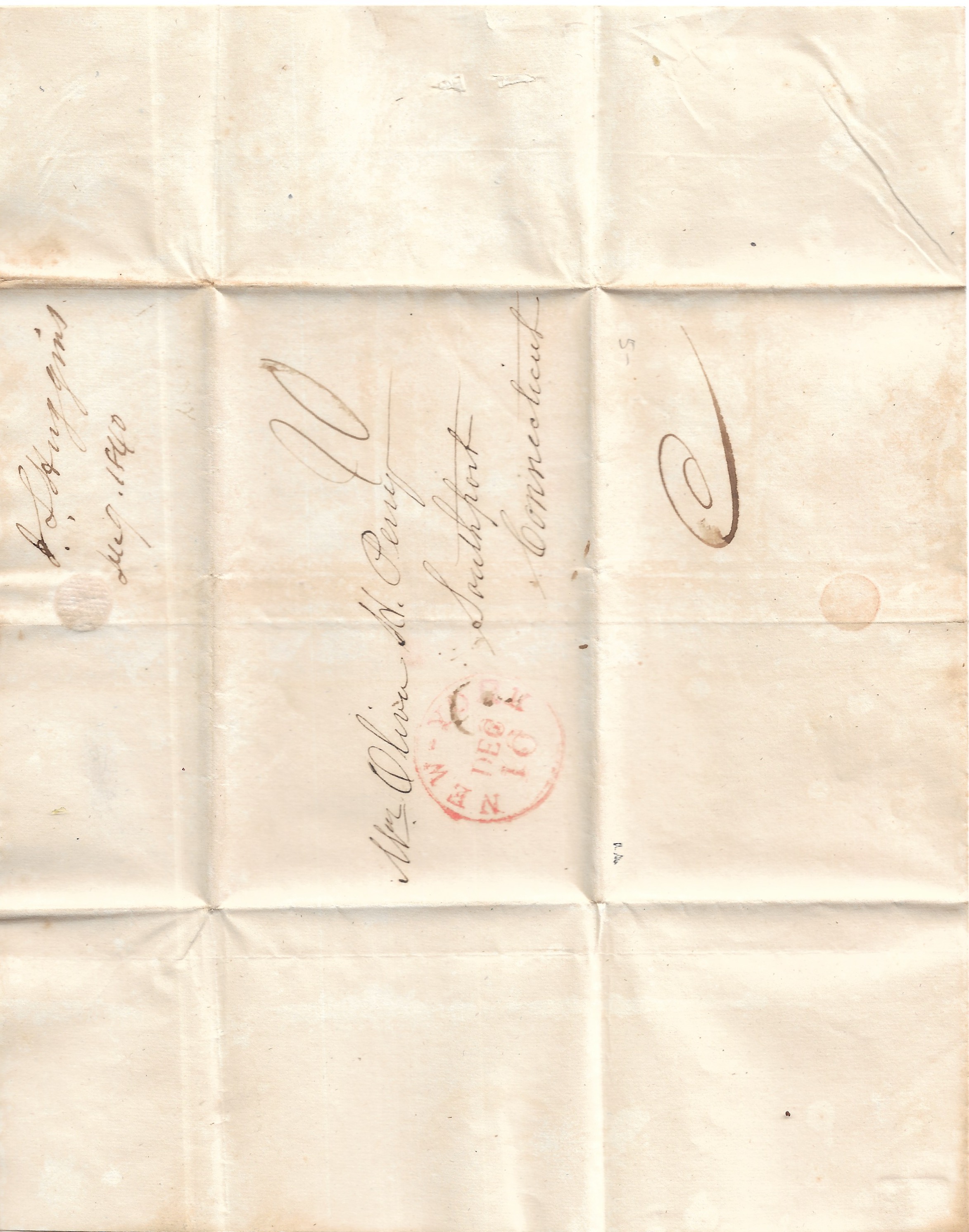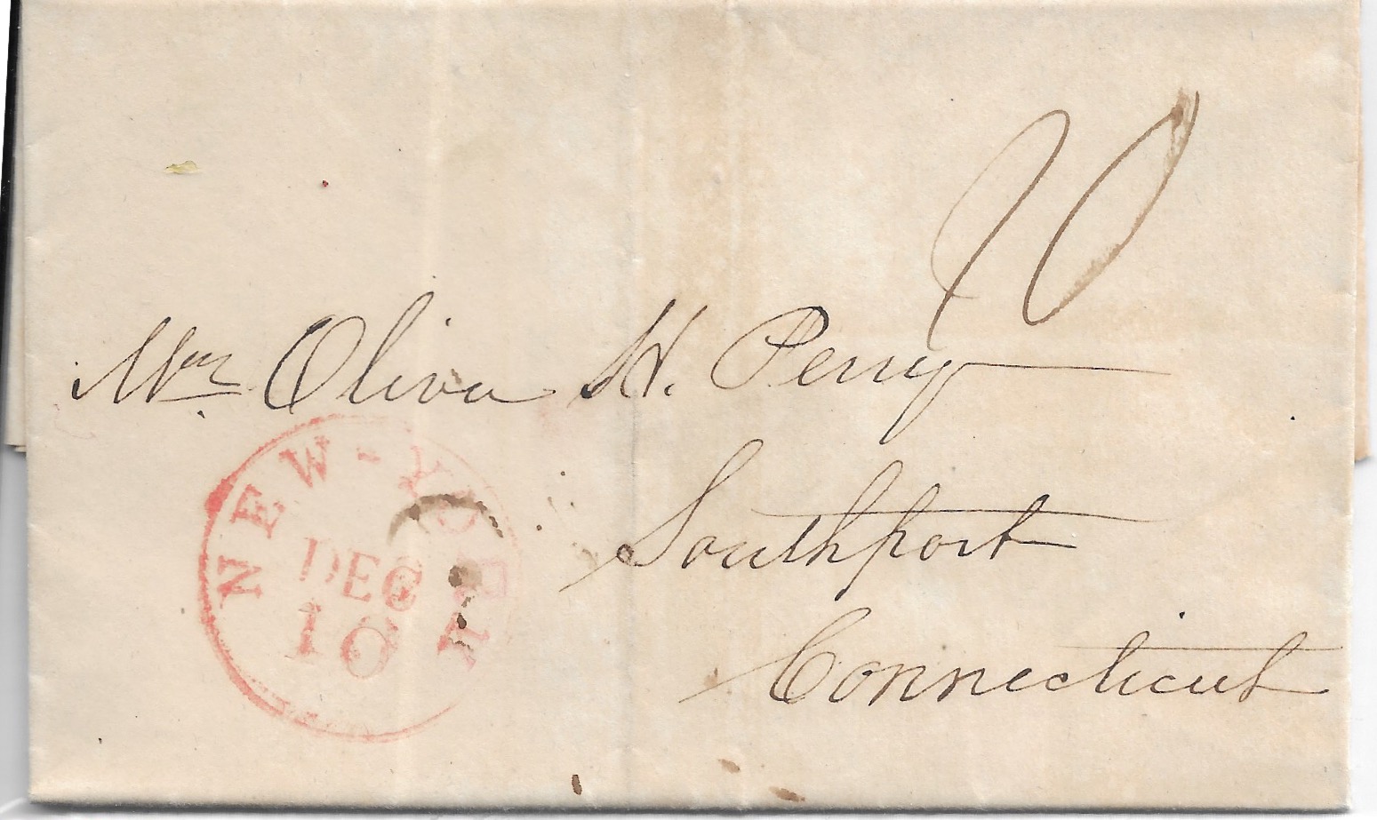 Stampless: 1840 New York to Southport, CT. Added Saturday, November 8, 2025