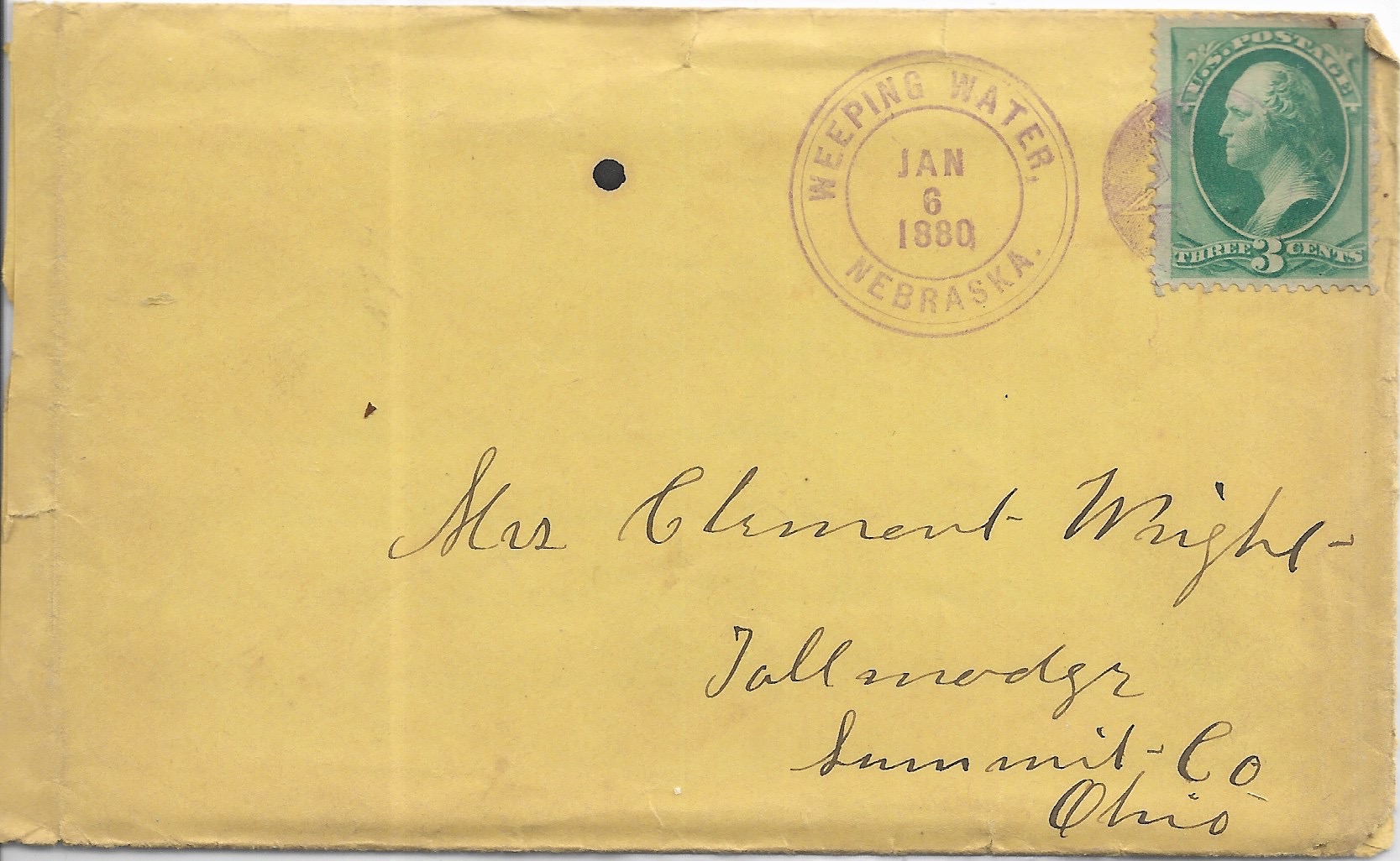 1880 Weeping Water, NE to Tallmadge, OH w/Letter. Purple Star Canx. Added Saturday, November 8, 2025