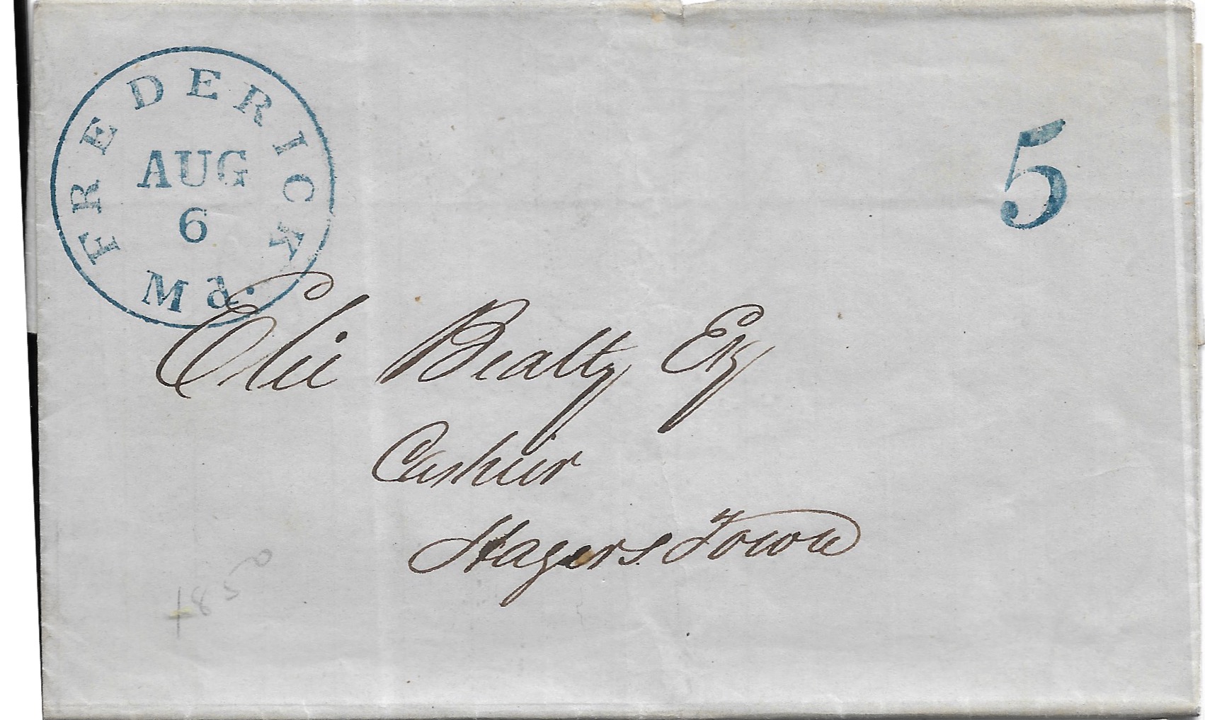 Stampless: 1850 Frederick to Hagerstown, MD. Added Saturday, November 8, 2025