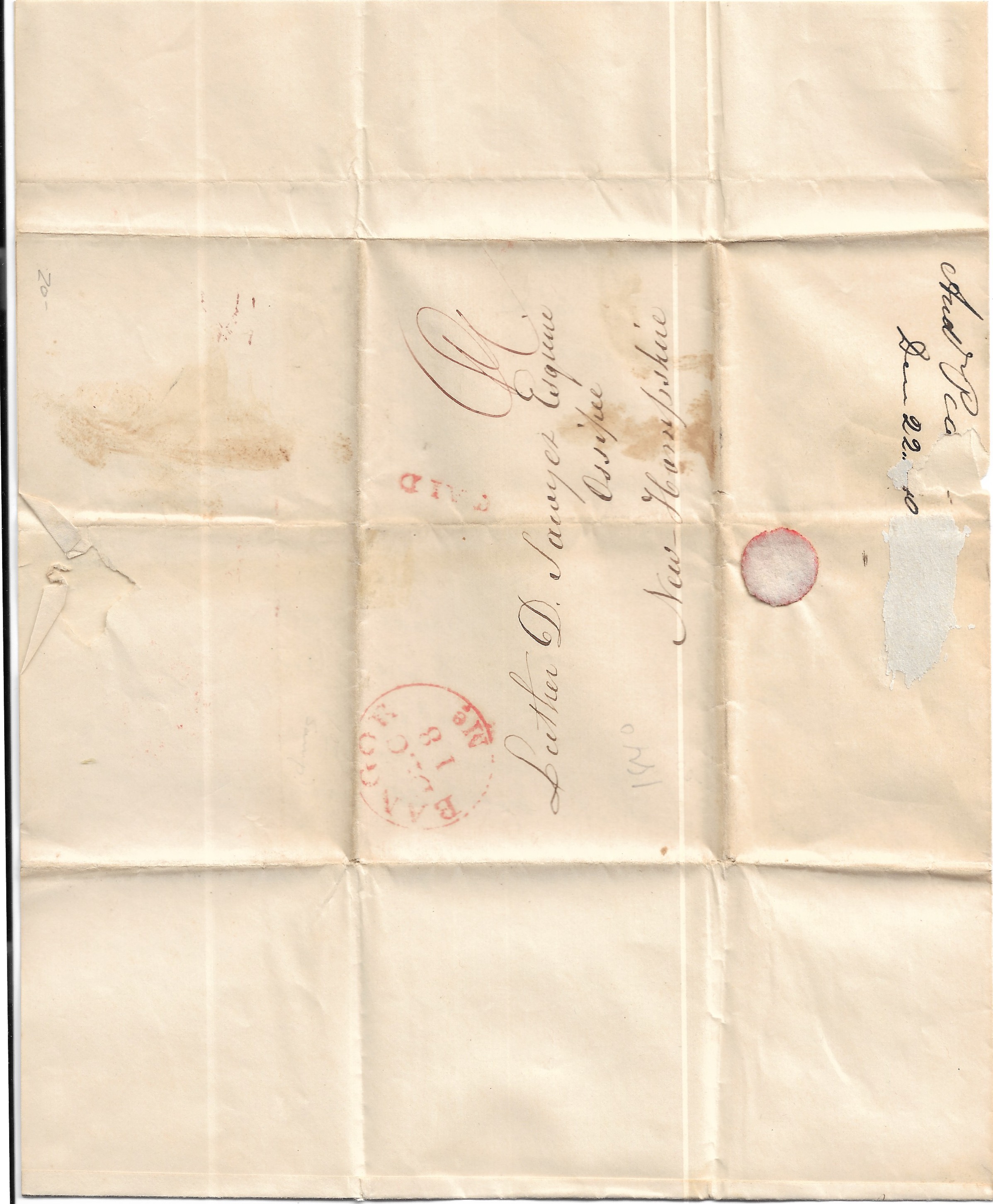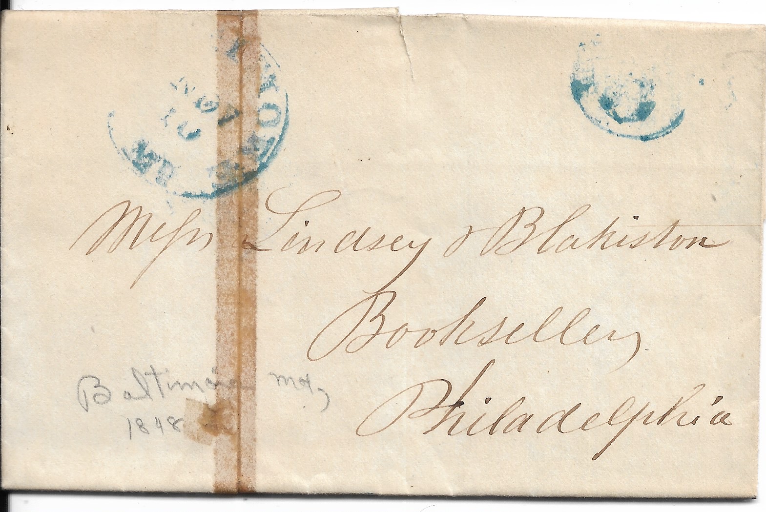 Stampless: 1849 Baltimore, MD to Philadelphia, Pa. Added Saturday, November 8, 2025