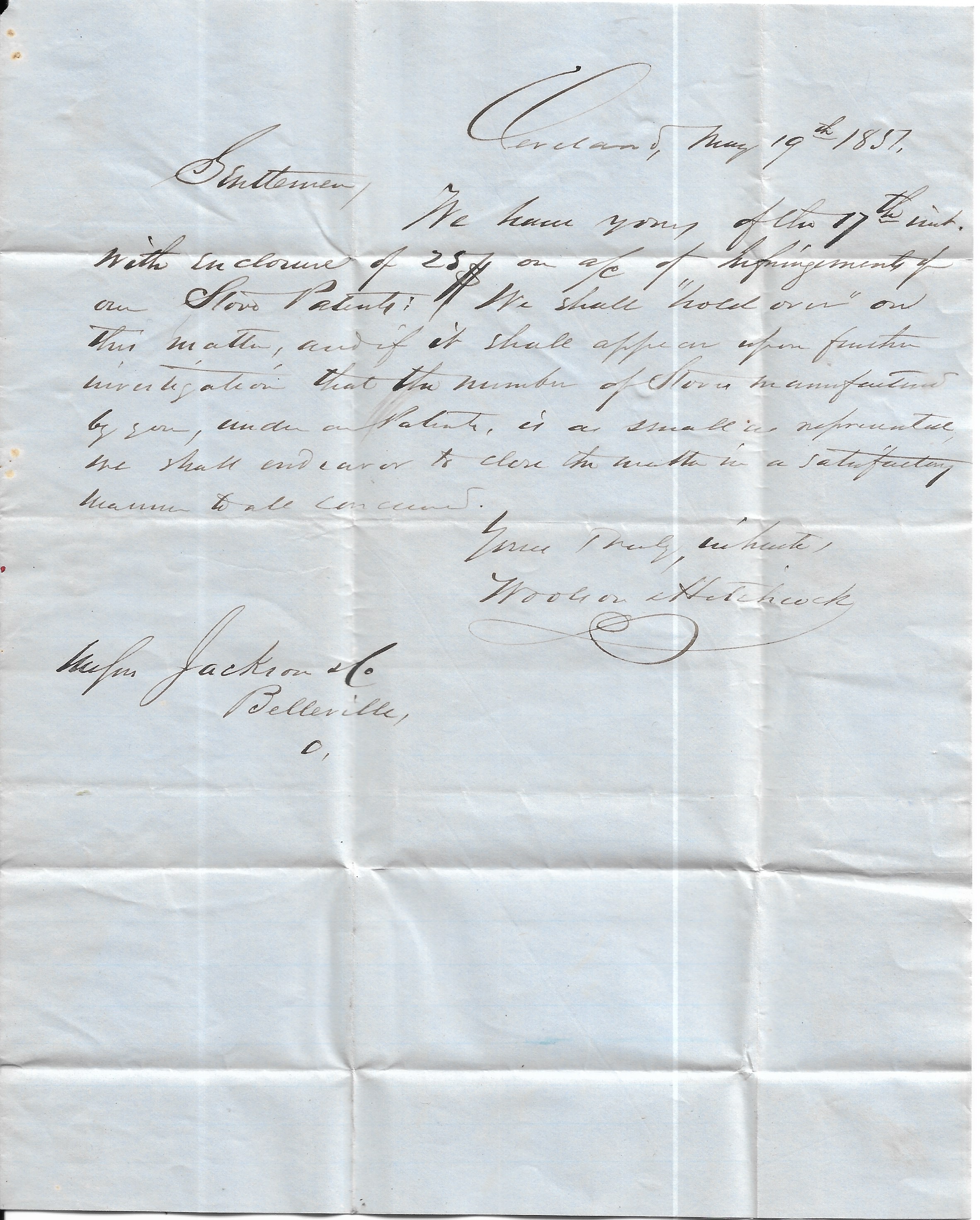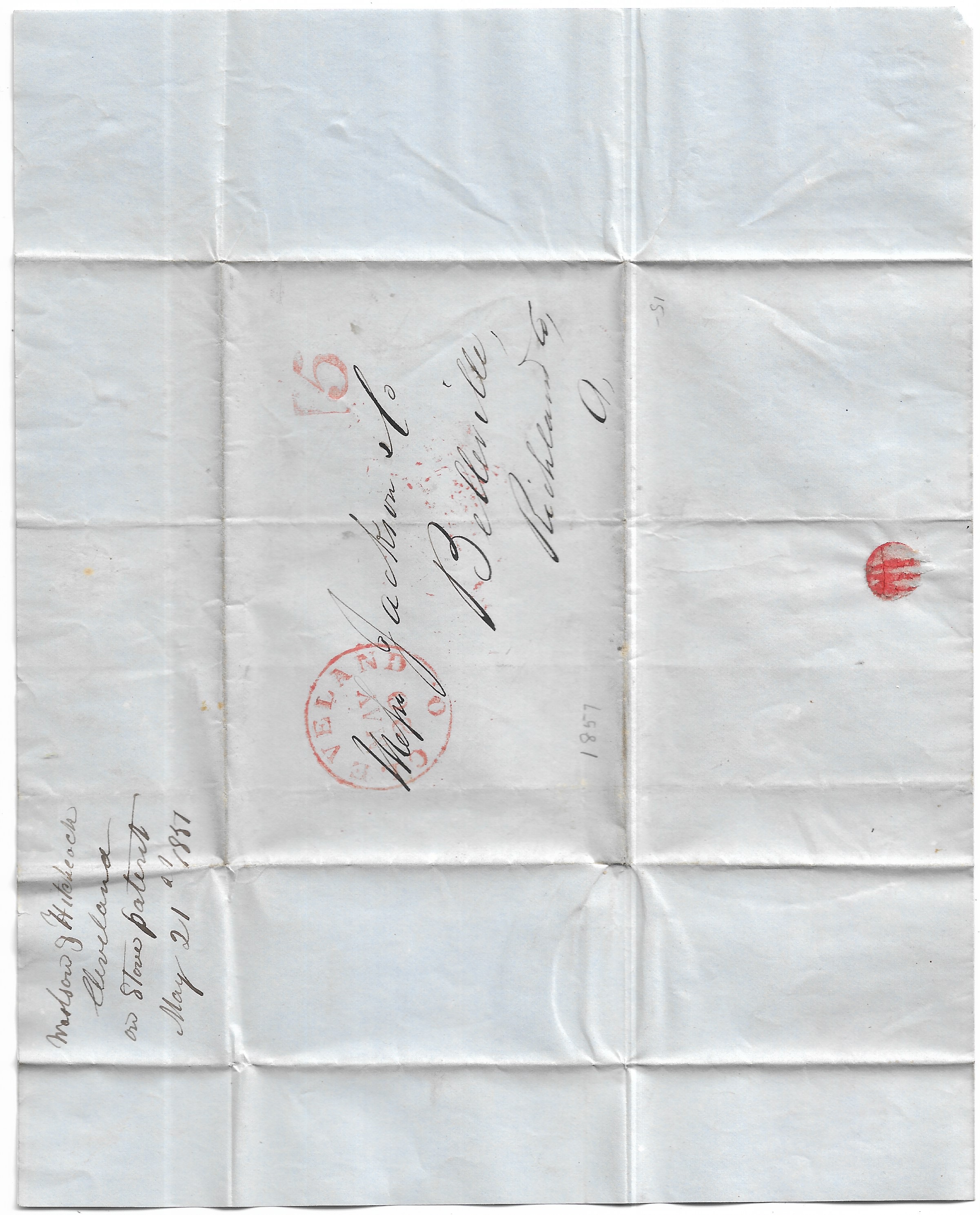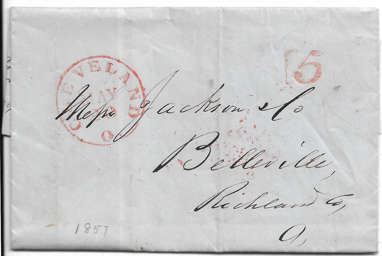Stampless: 1857 Cleveland to Bellevile, OH. Added Saturday, November 8, 2025