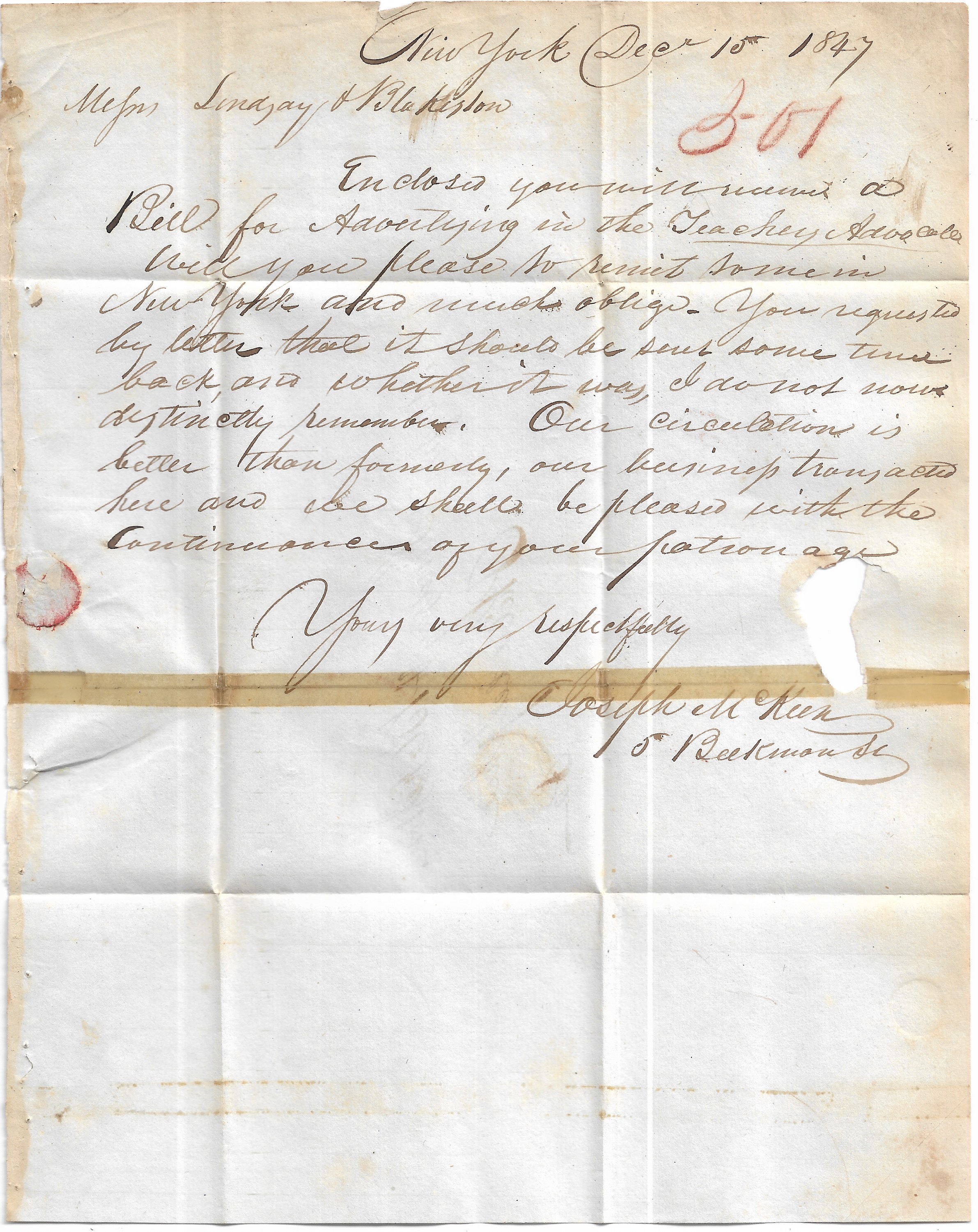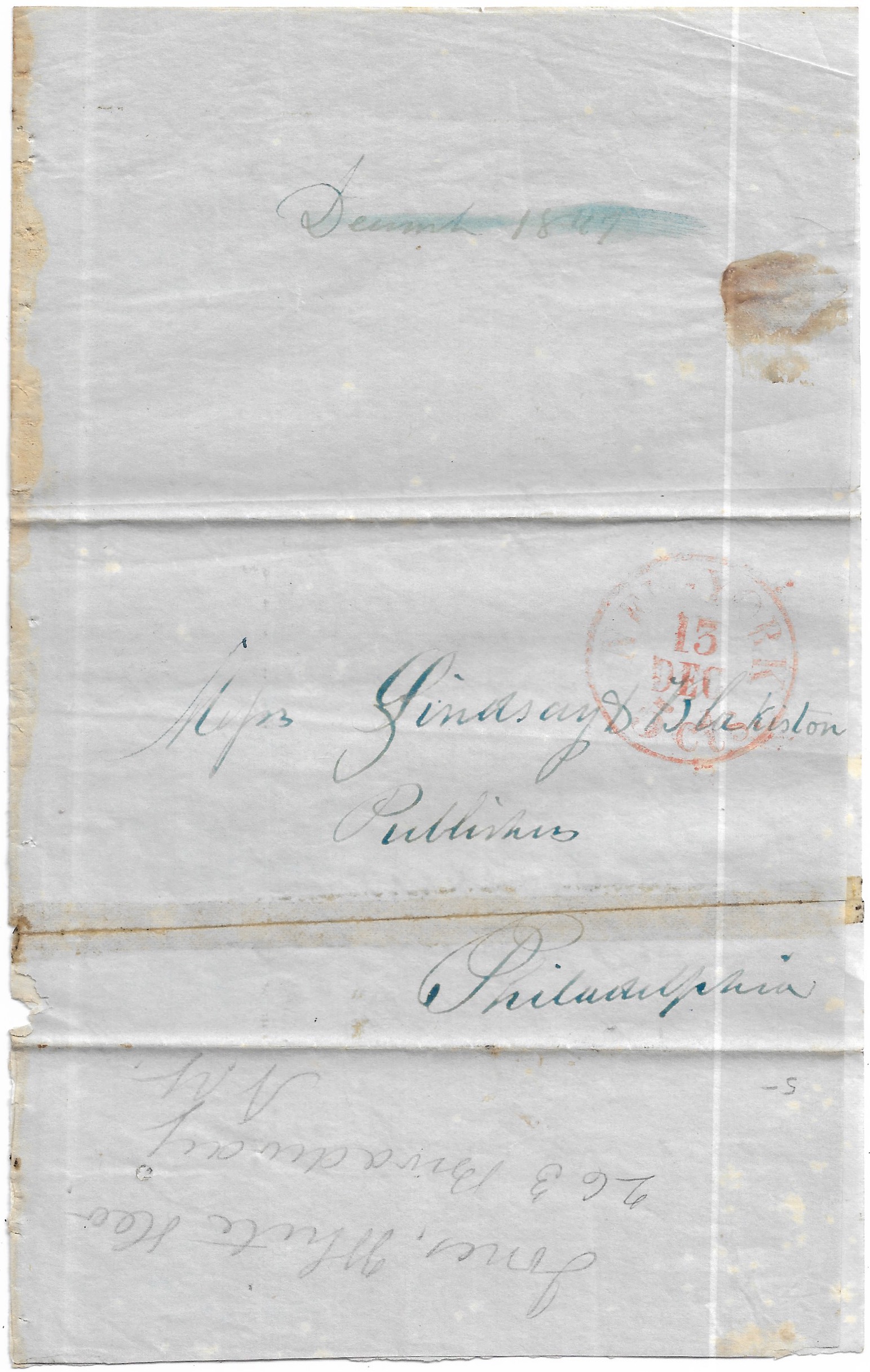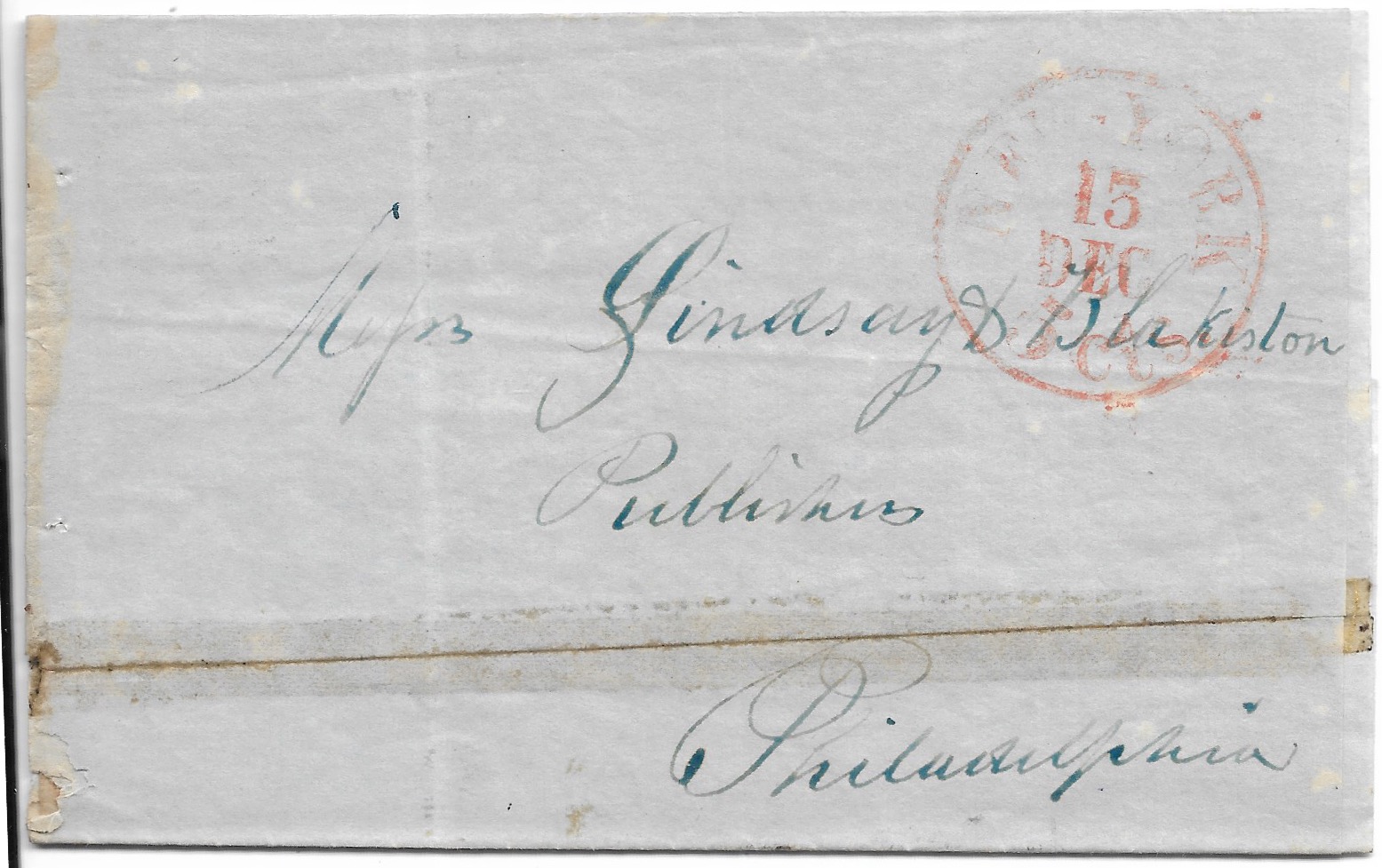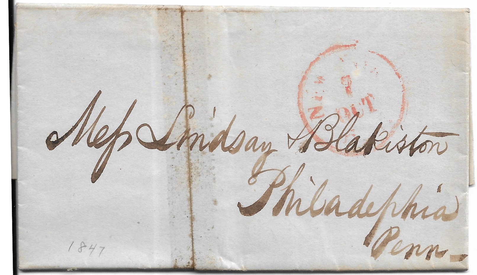 Stampless: 1847 New York to Philadelphia, Pa. Added Saturday, November 8, 2025
