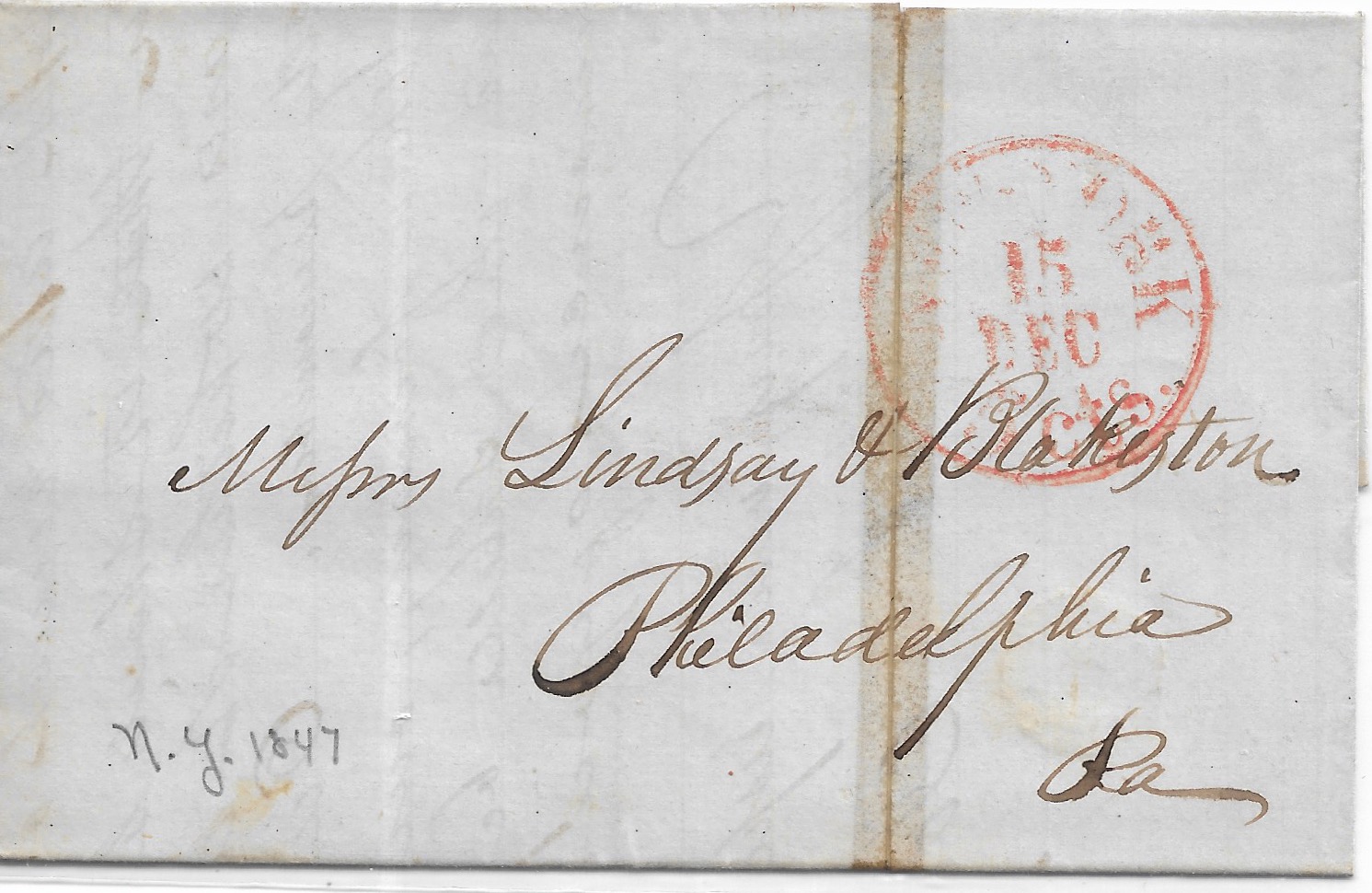 Stampless: 1847 New York, NY to Philadelphia, Pa. Added Saturday, November 8, 2025