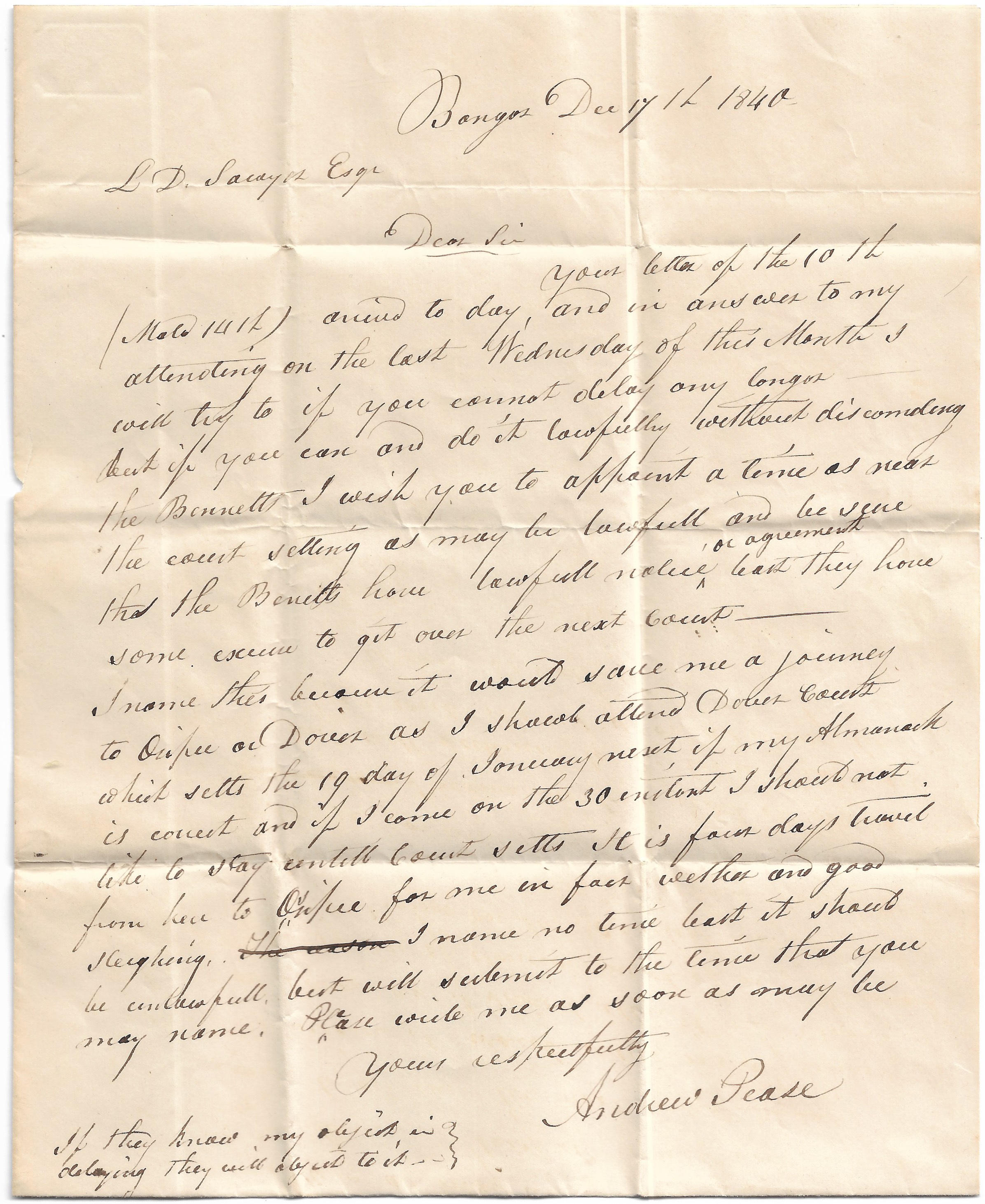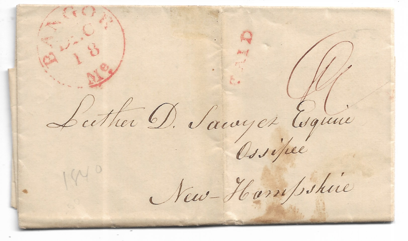 Stampless: 1840 Bangor, Me to Ossipee, NH. Added Saturday, November 8, 2025