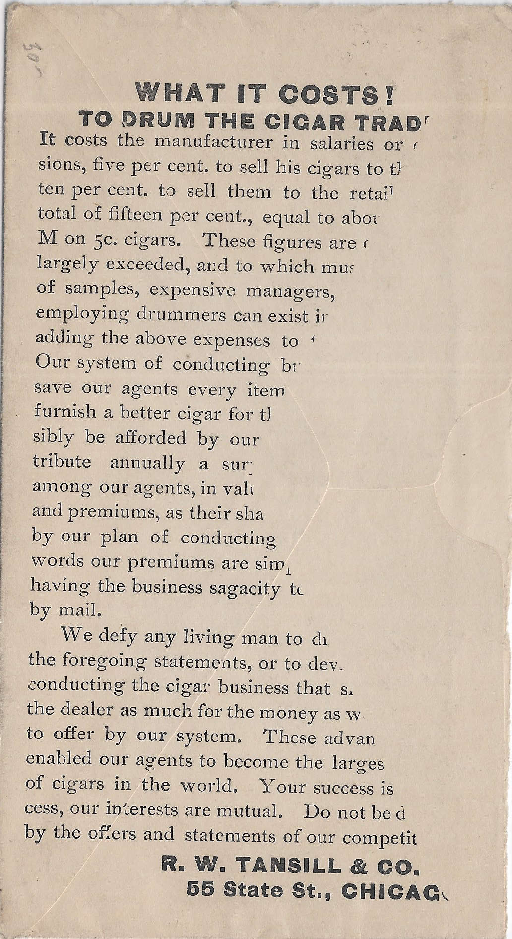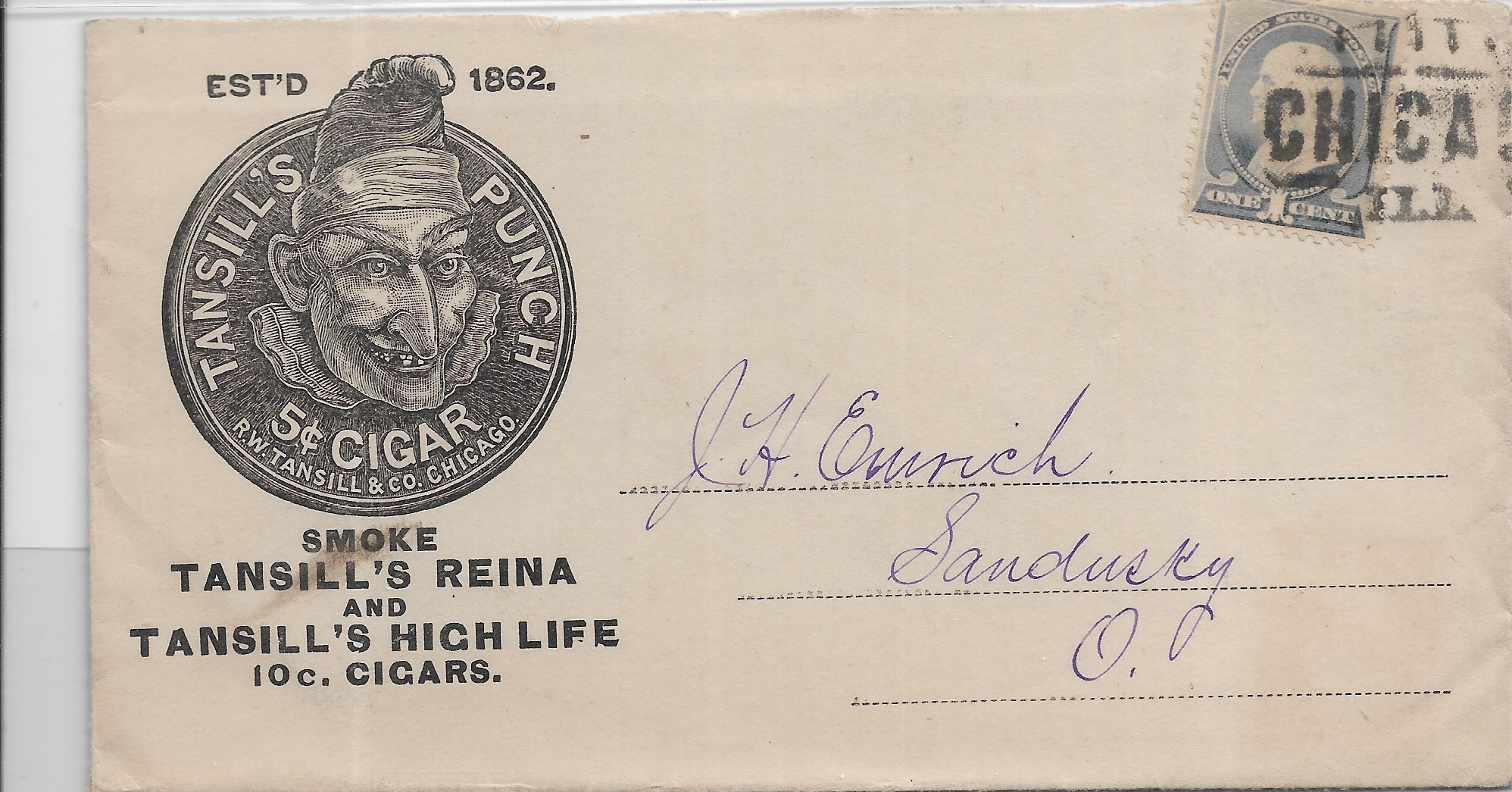 Advertising: 18xx Tansill's Punch Cigars, Chicago, IL to Sandusky, OH. back flap is missing. Added Sunday, November 16, 2025