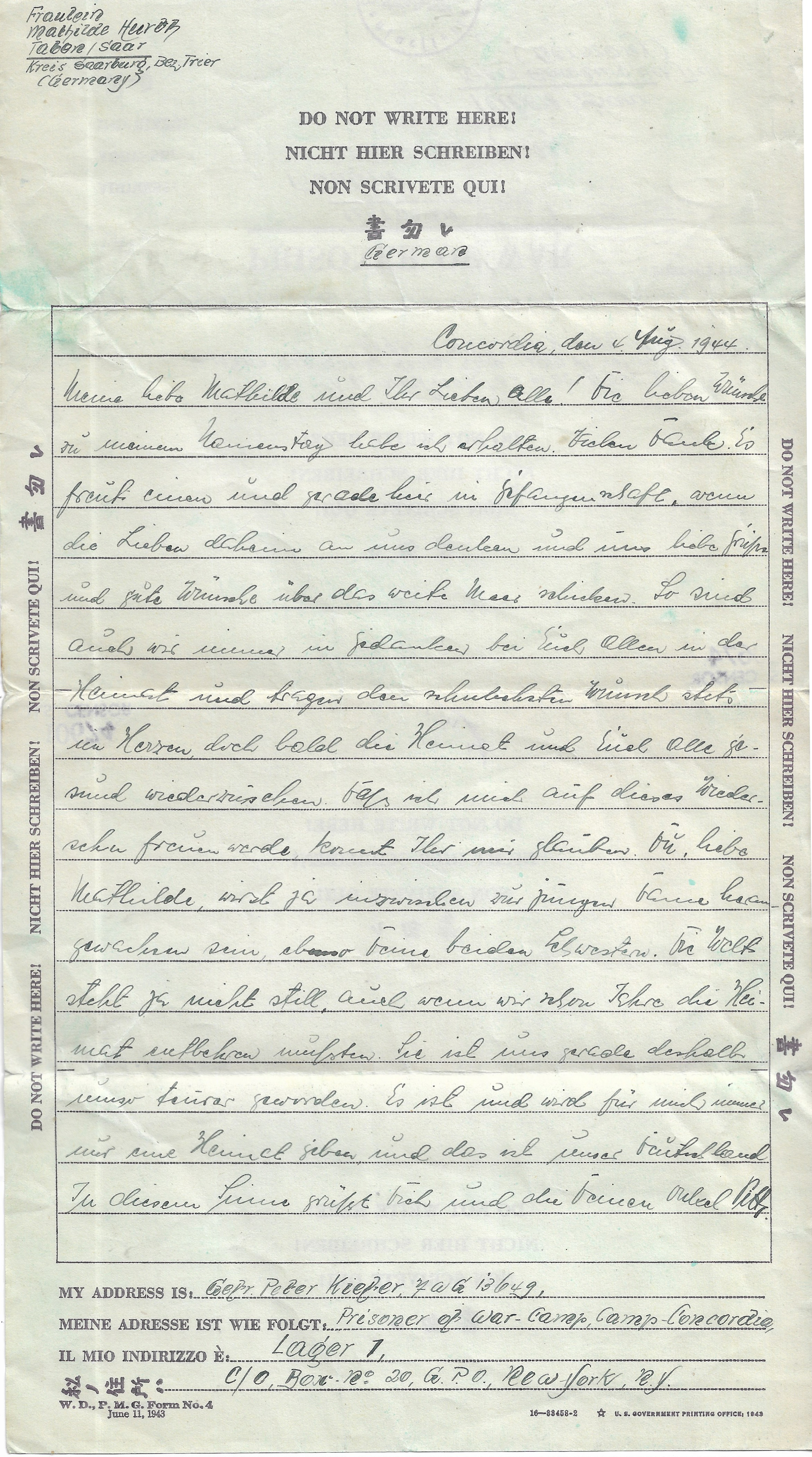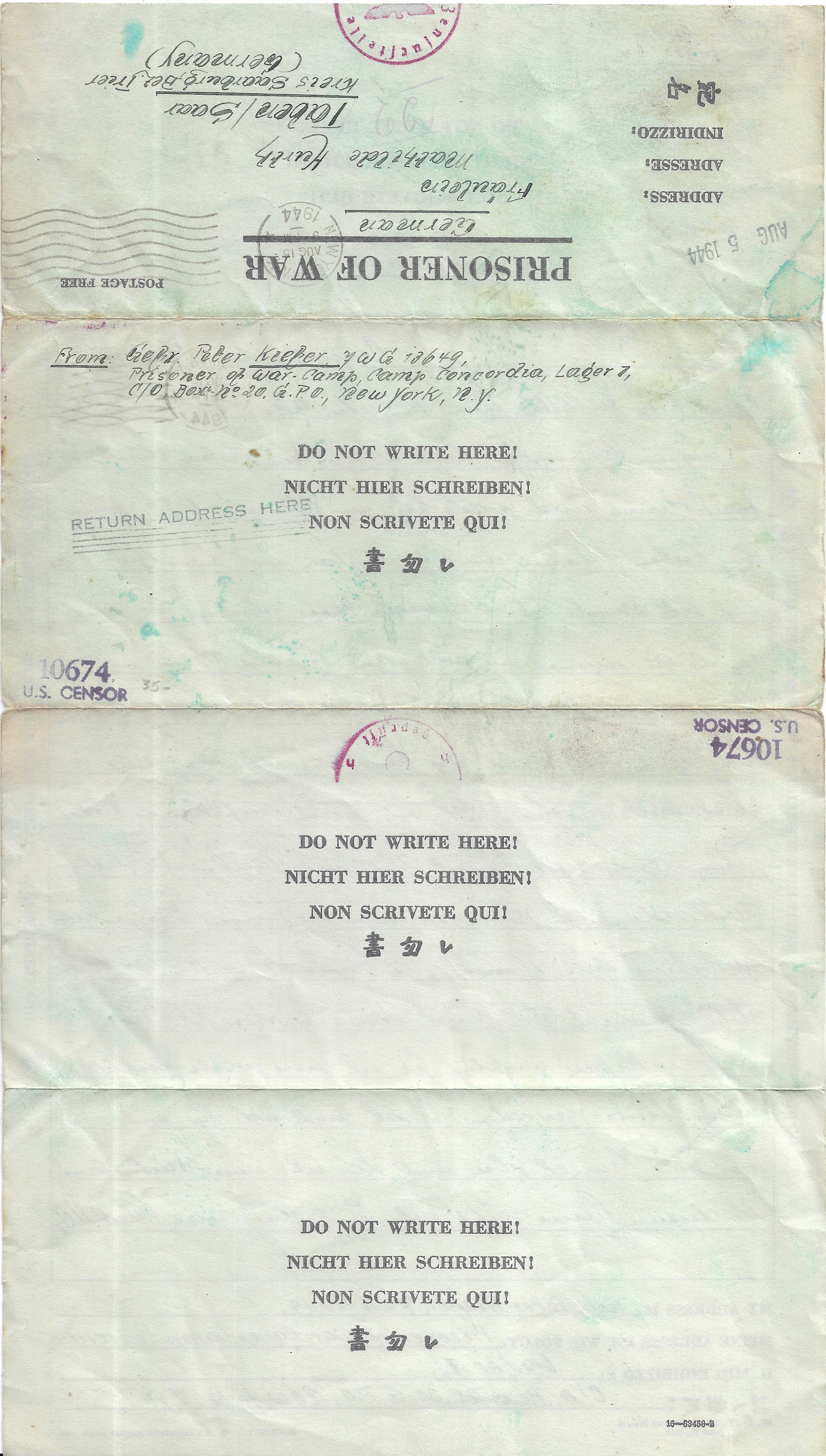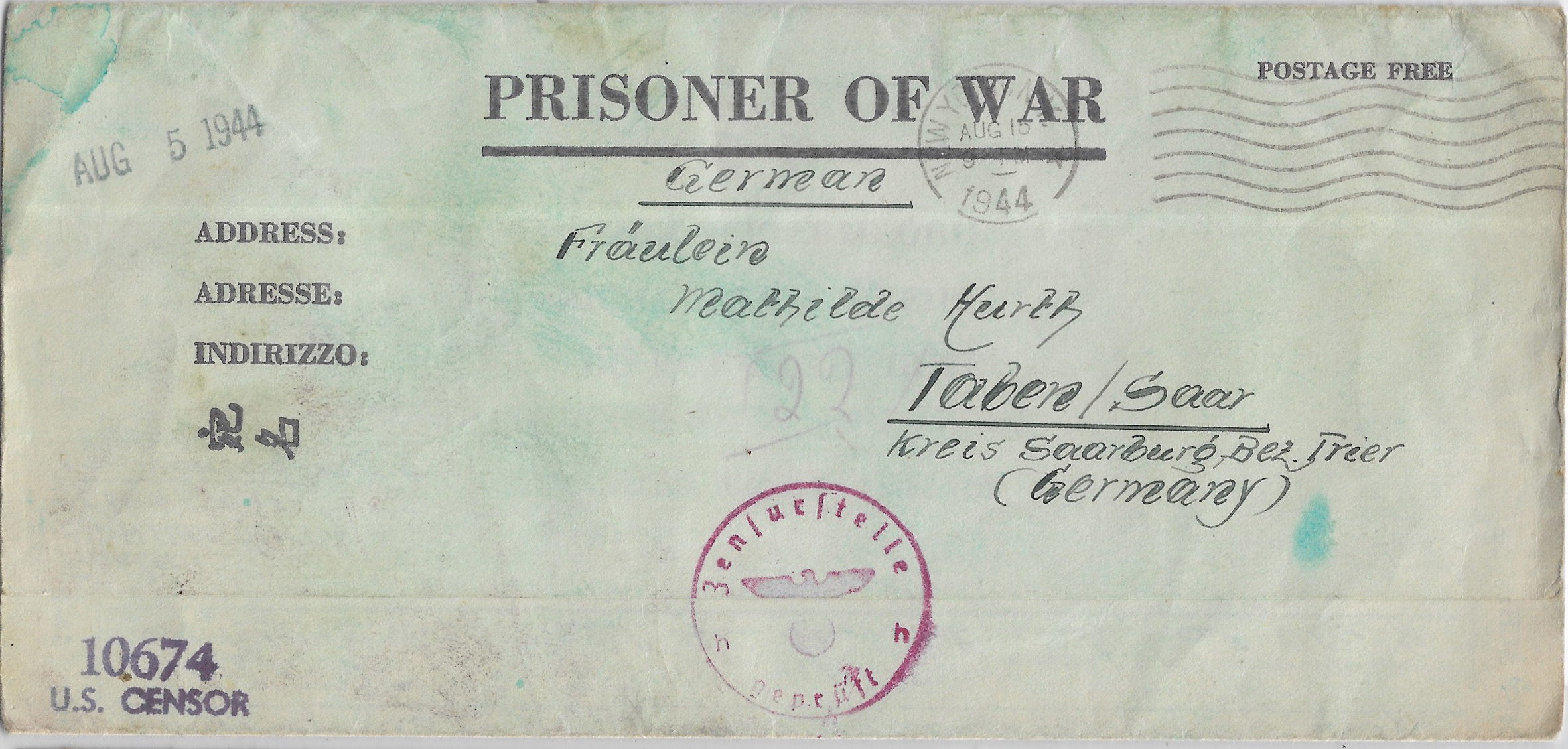 1944 German POW at Camp Concordia, KS to Saar, Germany Dual Cesnored. Added Sunday, November 9, 2025