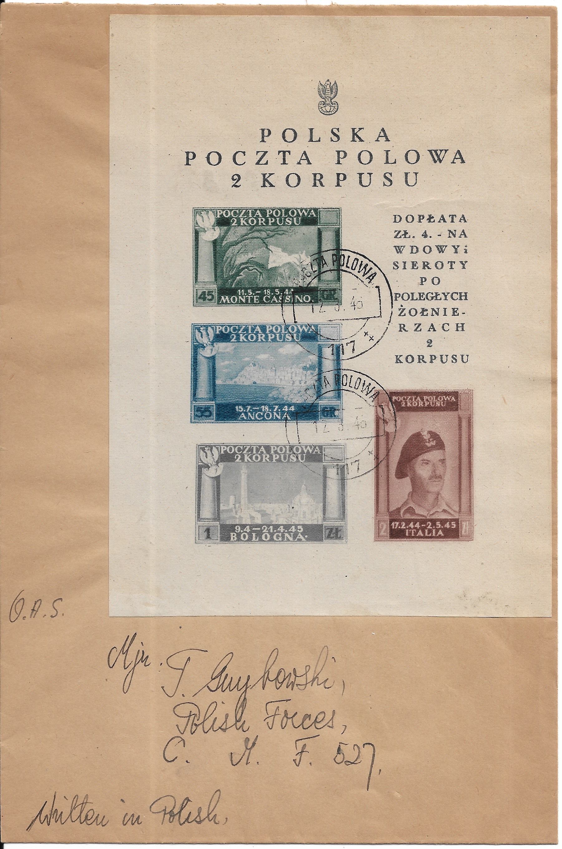 1945 2nd Polish Forces in Italy (souvenir sheet) to Polish Forces FPO 527 O.A.S. Added Sunday, November 9, 2025