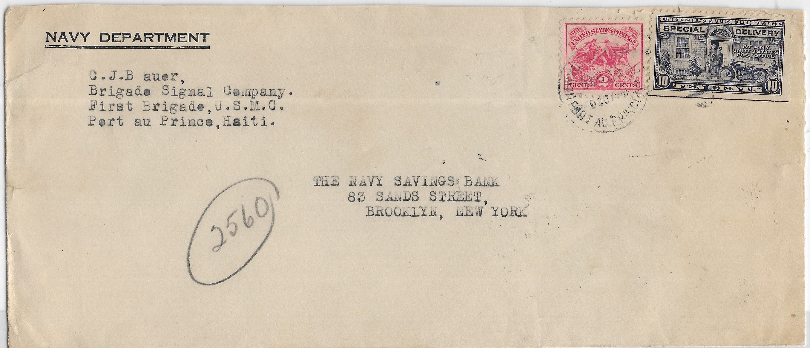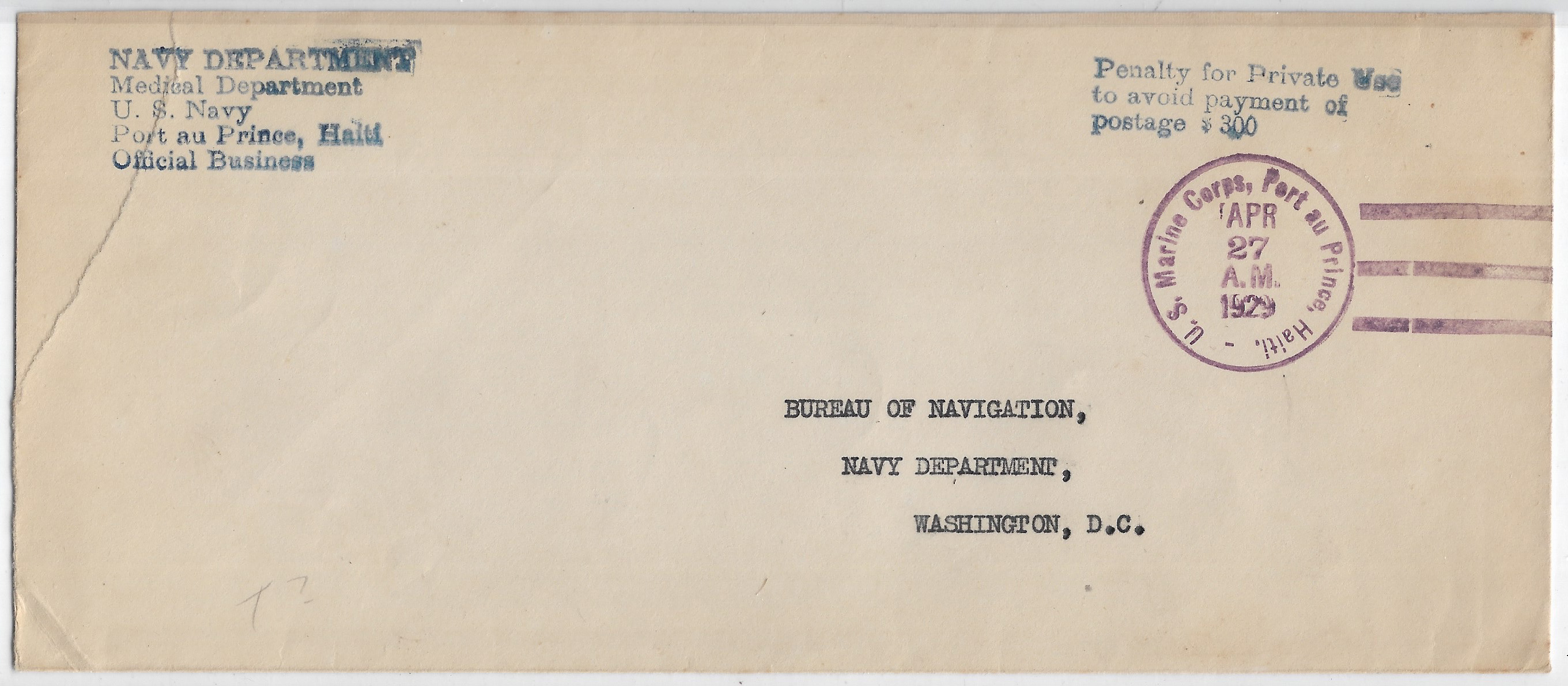 1929 USMC, Port au Prince, Haiti to Washington DC (h/k). Added Sunday, November 9, 2025