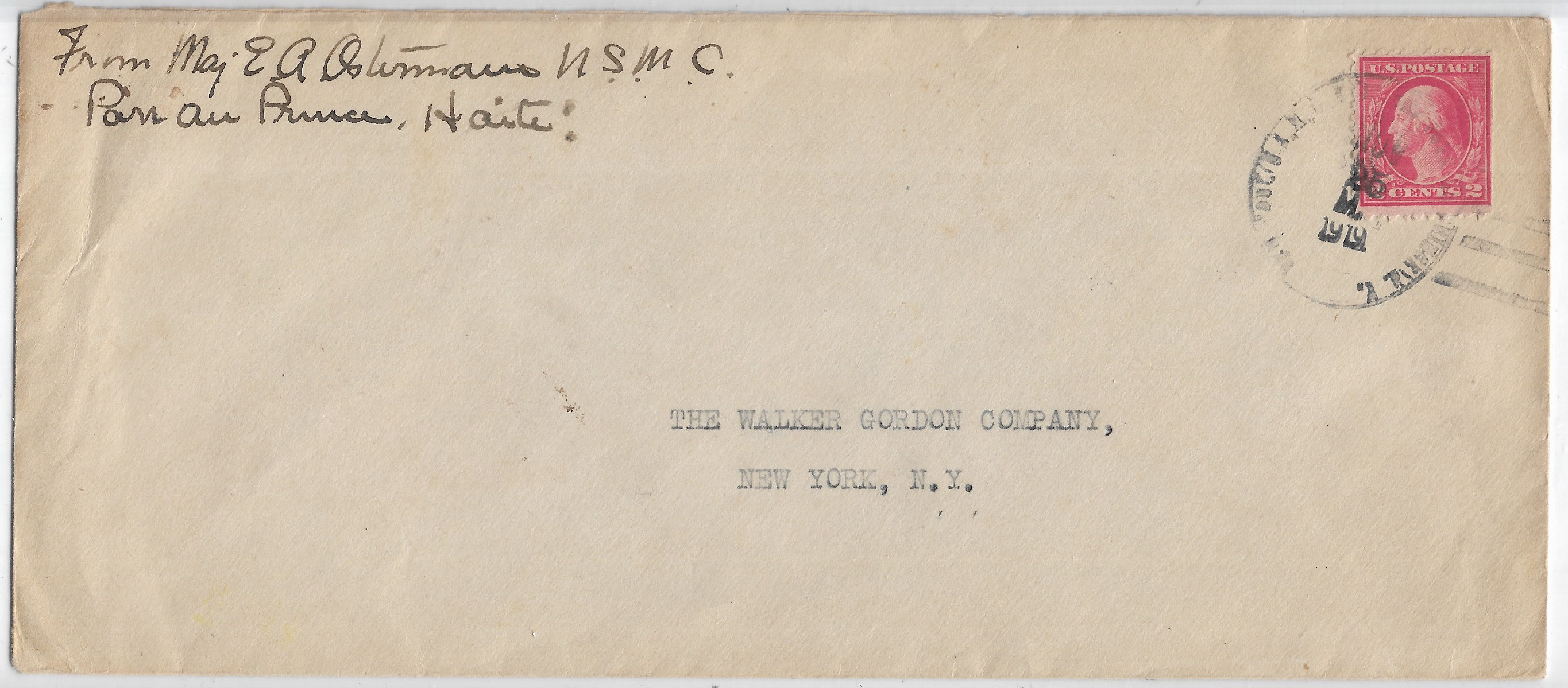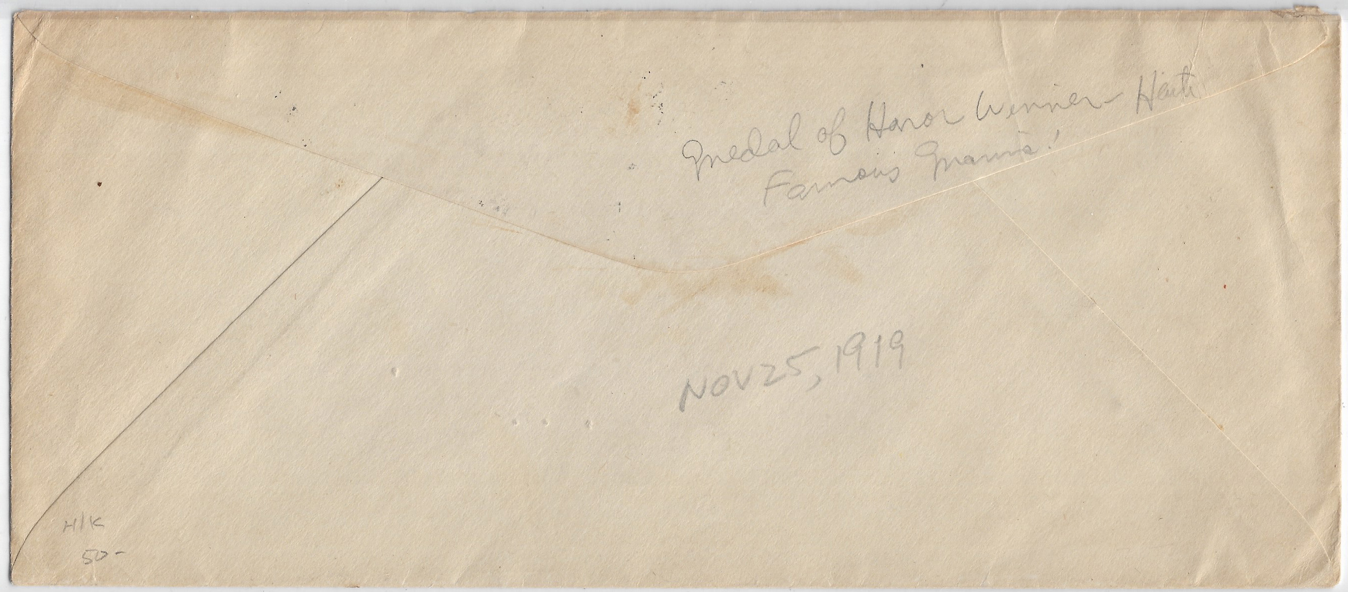 1919 USMC Port au Prince, Haiti to New York, NY (h/k). The sender will be awarded the Medal of Honor. Added Sunday, November 9, 2025