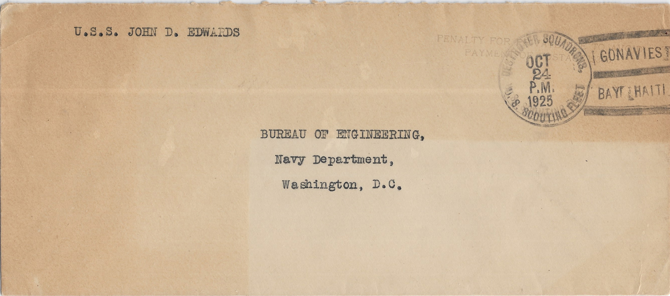 1925 USS John D. Edwards DD-216, Gonaives, Haiti to Washington DC (h/k). Added Sunday, November 9, 2025