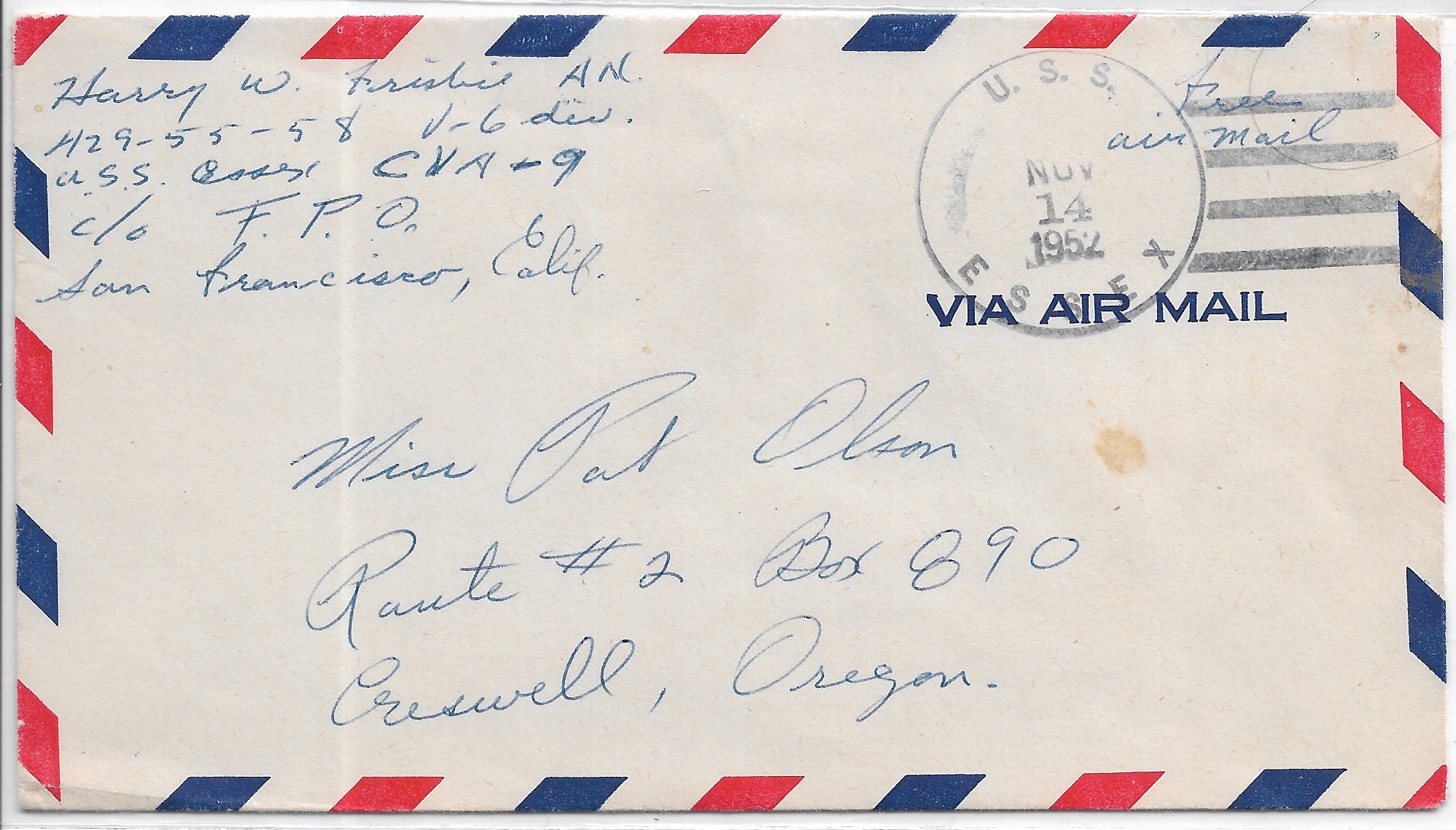Korean War: 1952 USS Essex CVA-9 to Creswell, Or Airmail. Added Thursday, September 18, 2025